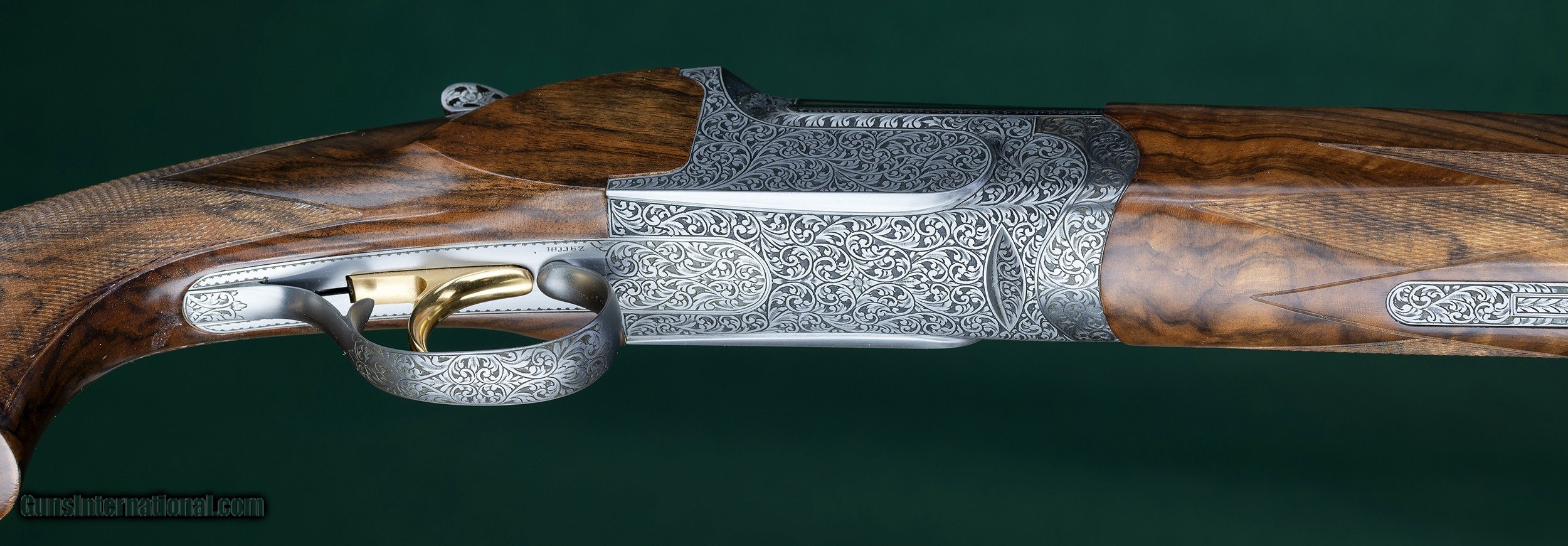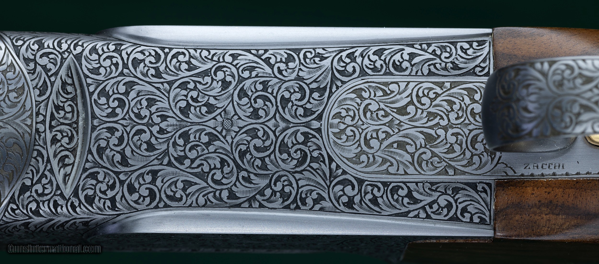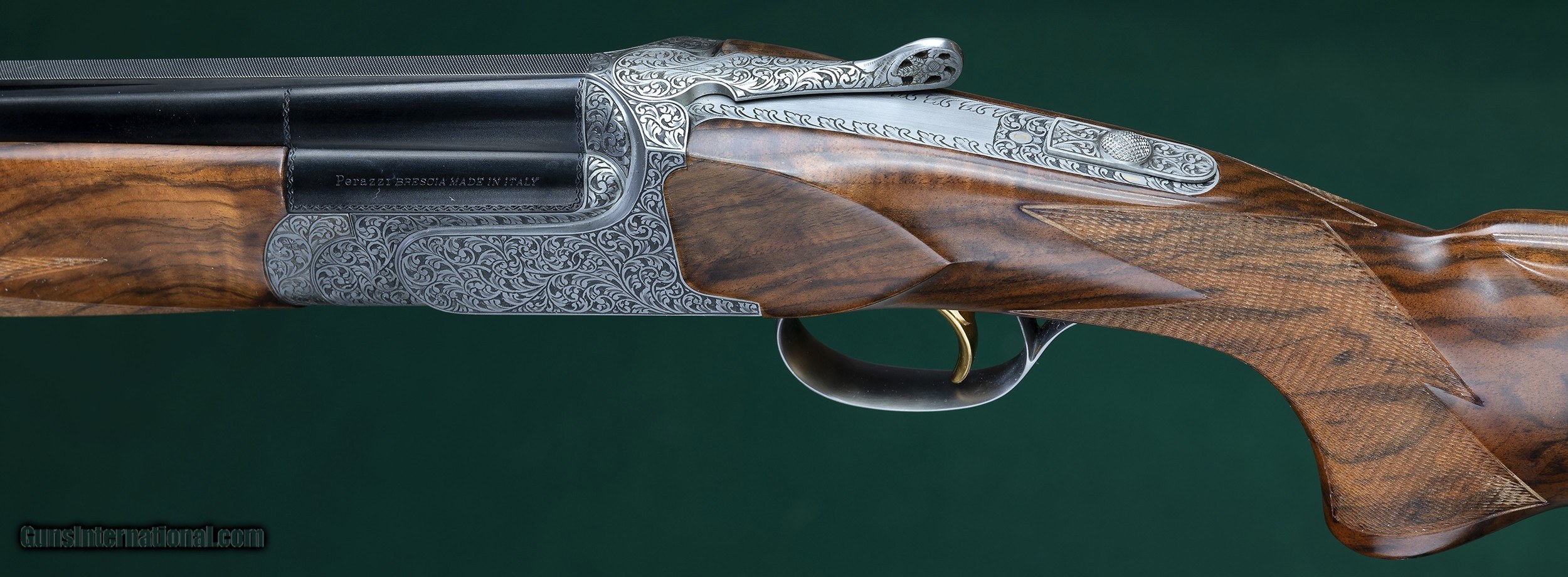 Description: 28" over & under matted-vent-rib barrels choked improved cylinder & modified. 13 5/8" pull from gold single-selective trigger to solid black Decelerator recoil pad. 1 1/2" - 2 1/2" drop. 1/4" cast off. Highly figured walnut stocks with slender Deeley-release field forend, classic point-pattern checkering, and pistol grip. Coin finished receiver with pierced hold-open toplever and automatic ejectors. Full coverage acanthus scroll engraving by Zacchi. Weight: 6lbs, 2 1/2oz. Built 2015. Little used. Shotgun Gauge: 28 Gauge Manufacturer: Perazzi Model: MX-28, SC3 Grade Serial Number: 155179 Barrel Length: 28 Chambers: 2 3/4 Ejectors: Yes Condition: Little used Barrels: Over/Under Triggers: Sincle Selective Stock: Highly figured walnut Butt Pad: Solid black Decelerator LOP: 13 5/8 Weight: 6lbs, 2 1/2oz. Manufacture Date: 2015 Chokes: improved cylinder & modified Engraving: Full coverage acanthus scroll by Zacchi Item Location: Livingston, Montana Price: $22,450.00 Contact Seller |
