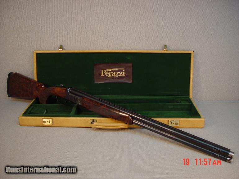 PERAZZI OVER/UNDER SHOTGUN ... 12 gauge ... 27 1/2" vent rib barrels with slotted porting ... 2 3/4" chambers ... comes with 4 extended choke tubes labeled #25, #35, #2, #5 ... weight 7 lbs 14 oz ... LOP 14 1/8" over 3/4" Decelerator recoil pad ... drop parallel comb 1 1/2" ... drop heel 1 3/4" ... white front bead & steel mid-bead ... non-automatic safety ... ejectors ... single trigger.