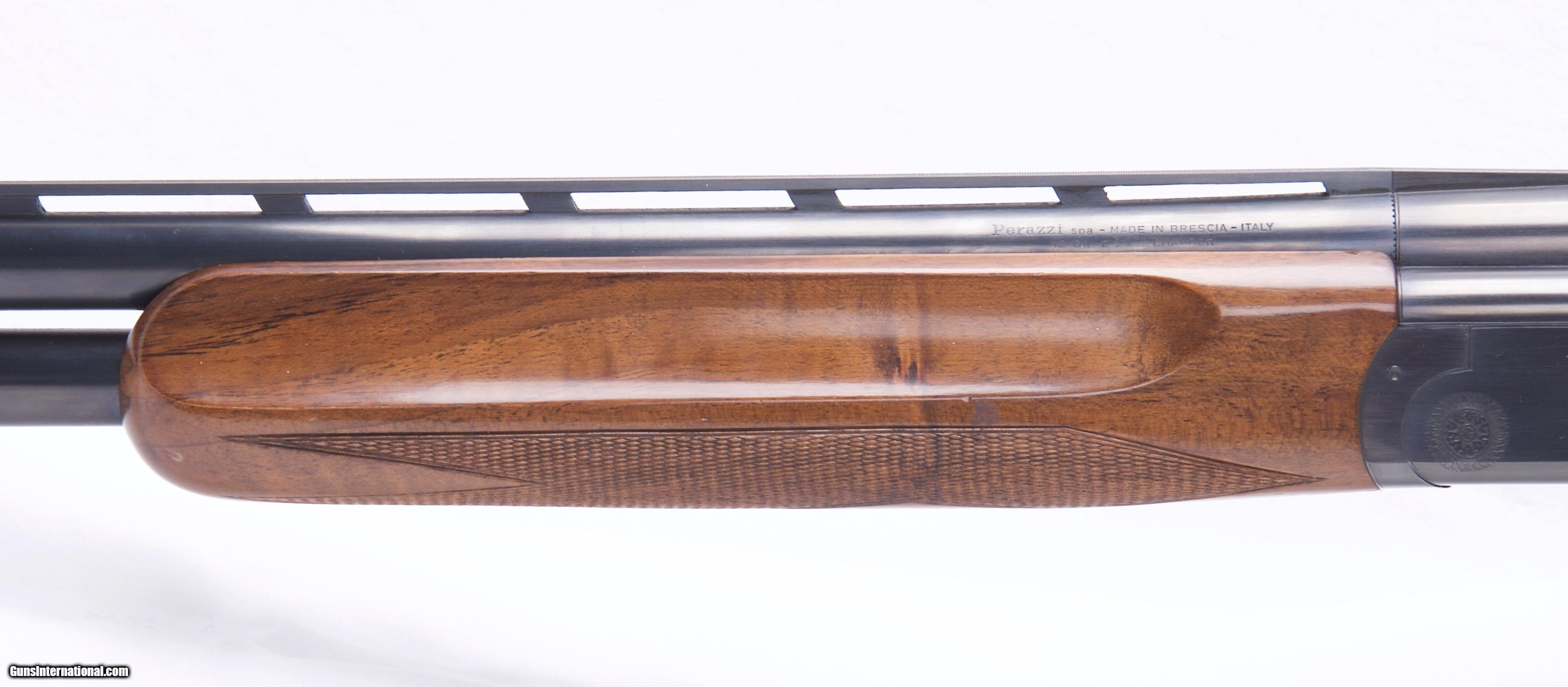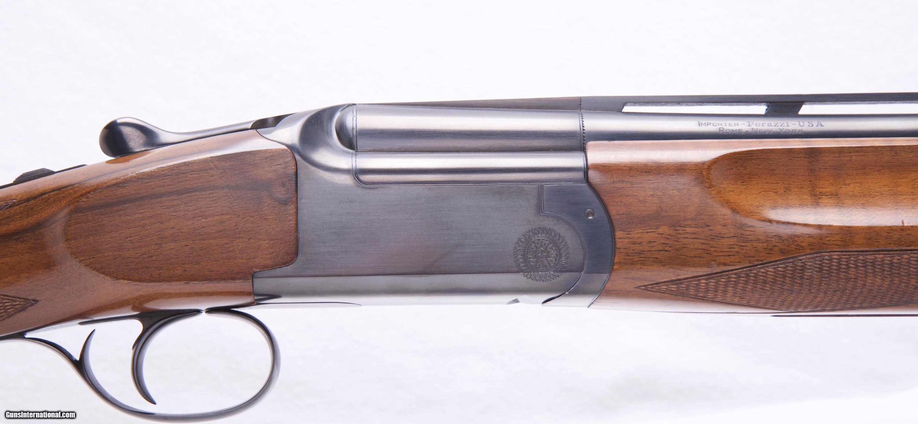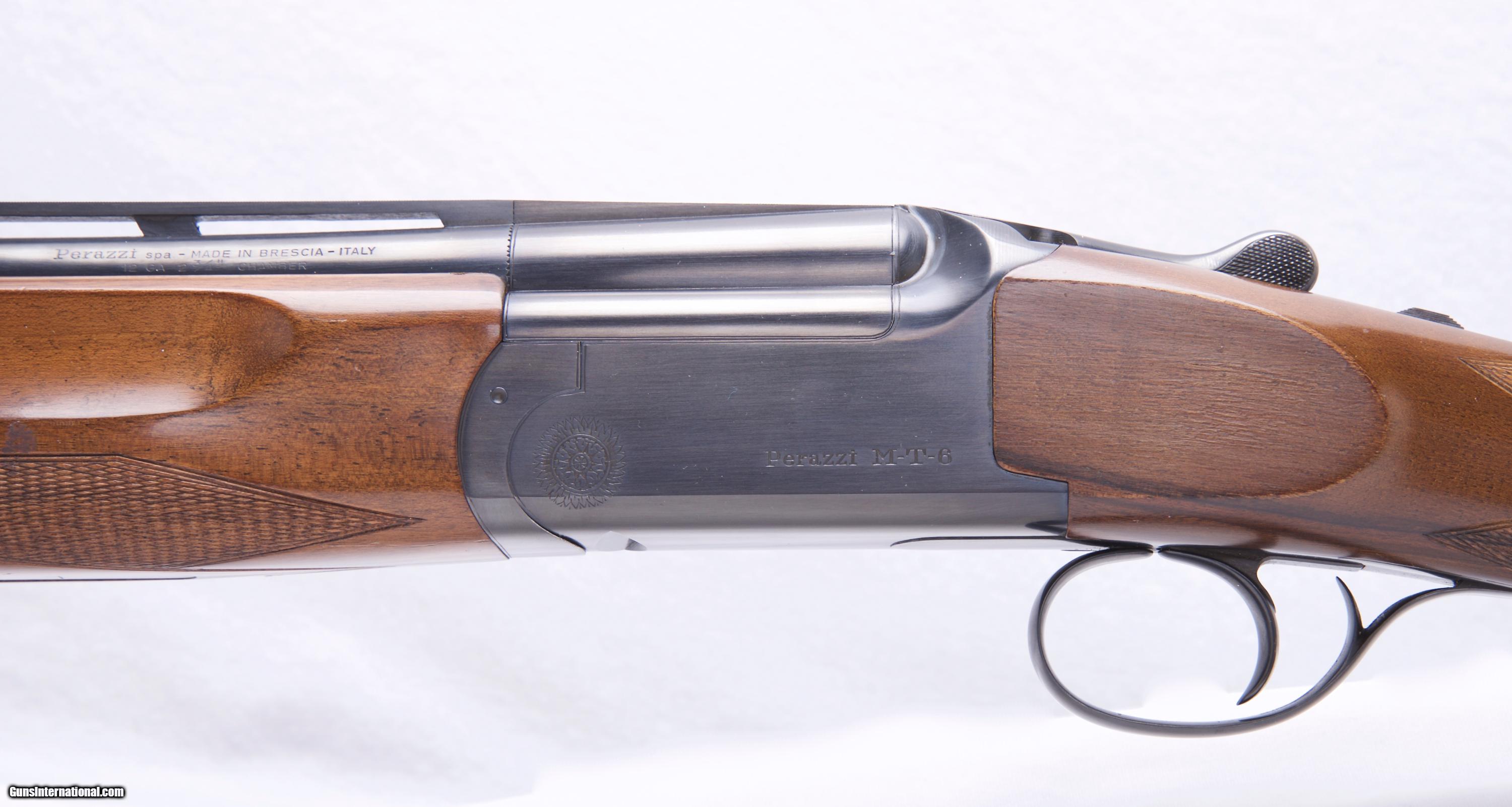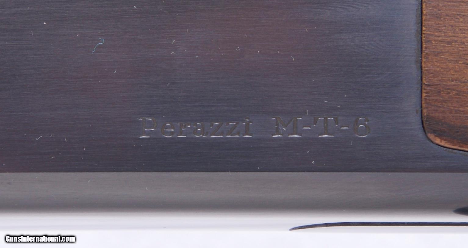 Description: SALE PENDING... Perazzi MT-6 Skeet 12 gauge O/U shotgun. Originally designed and built for the Montreal Olympics in 1976 the MT-6 was an innovative gun for Perazzi. It was the first Perazzi to have choke tubes and it went away from the traditional drop-out leaf spring trigger group in favor of a frame mounted coil spring trigger group, yet still built with the integrity and competition heritage of the rest of the Perazzi line of guns. The first guns had a distinctive milled horizontal stripe in the receiver and a push button fore arm release. This gun, made in 1982, is the last version with a more traditional solid blue receiver and the proven type 4 forearm release. 27 ½” vent rib barrels with 5 factory choke tubes: SK, 2 (IC), 4 (IC+), 6 (Mod) & 8 (IM) and the CT wrench. The stock has a 14 ¾” LOP over a 1 1/8” Kick EEZ pad; with the added adjustable comb in the lowest position the dimensions are 1 ½” DAC and 2 ½” DAH with neutral cast. This gun is 34 years old and yet it retains 98%+ of all of the original finishes, the bores are bright and perfect and the gun is very solid mechanically. Note the top lever is still way to the right of center! The gun weighs 7 lbs. 11 oz. Cased in a Perazzi luggage style case. SOLD |