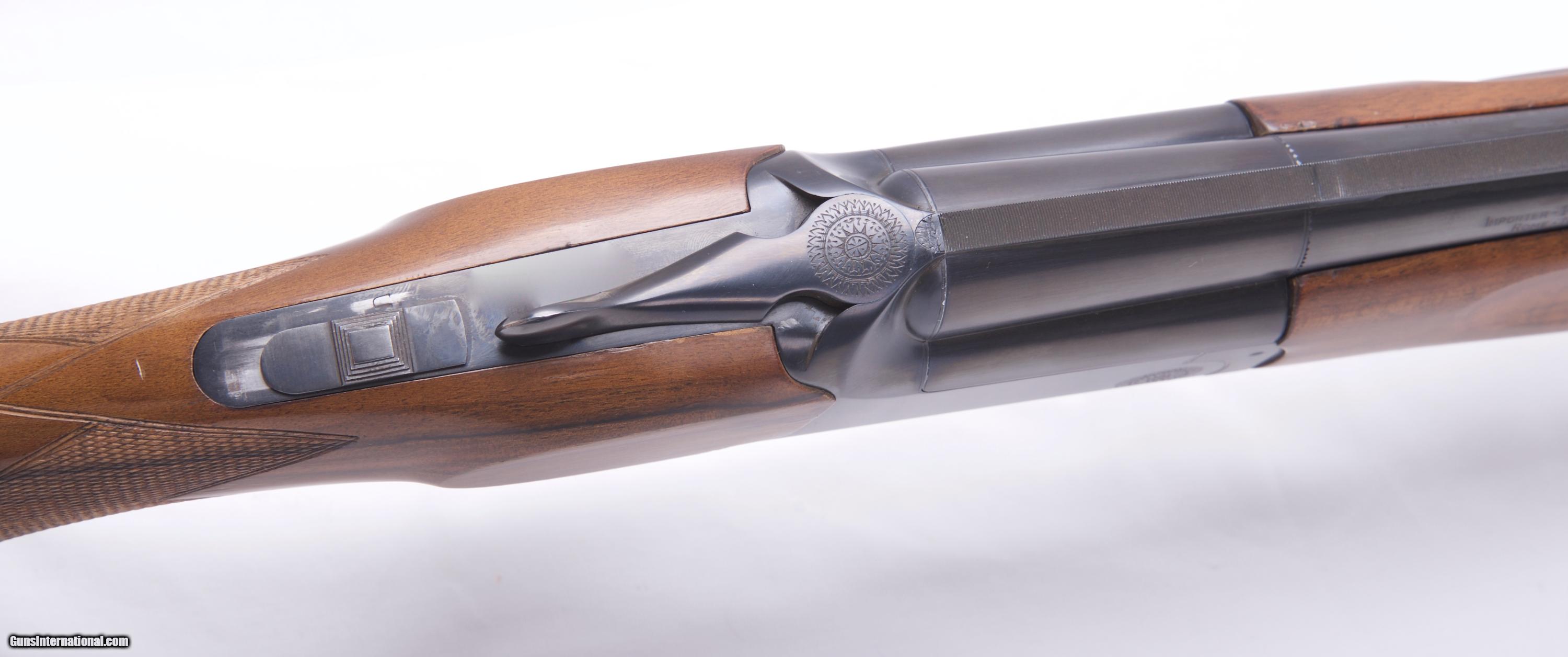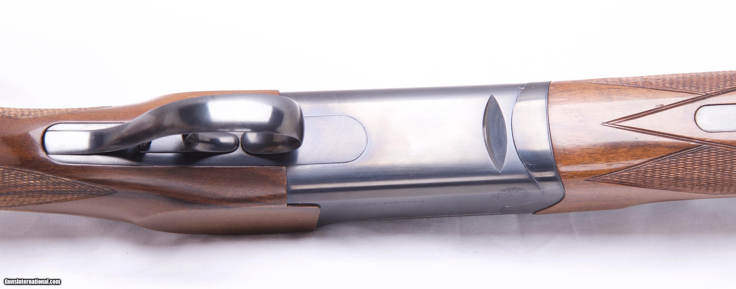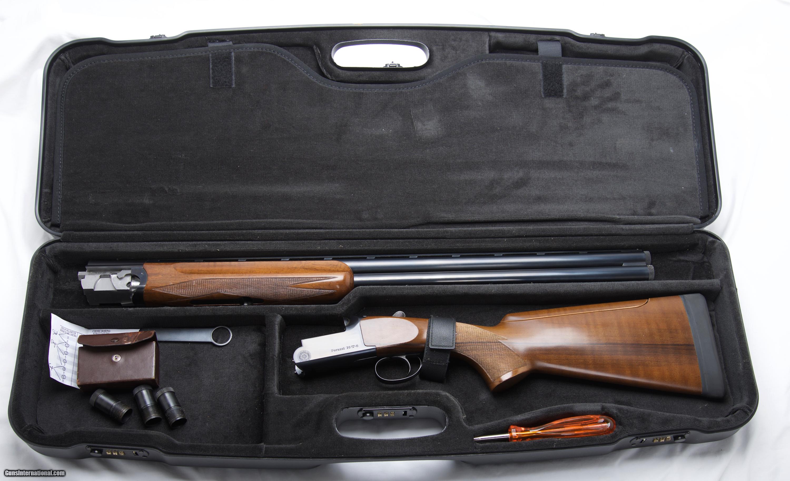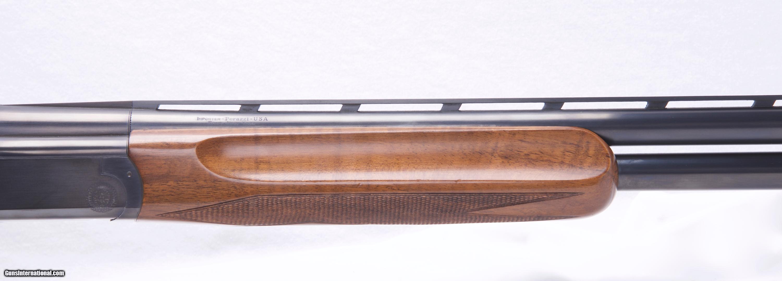 Description: SALE PENDING... Perazzi MT-6 Skeet 12 gauge O/U shotgun. Originally designed and built for the Montreal Olympics in 1976 the MT-6 was an innovative gun for Perazzi. It was the first Perazzi to have choke tubes and it went away from the traditional drop-out leaf spring trigger group in favor of a frame mounted coil spring trigger group, yet still built with the integrity and competition heritage of the rest of the Perazzi line of guns. The first guns had a distinctive milled horizontal stripe in the receiver and a push button fore arm release. This gun, made in 1982, is the last version with a more traditional solid blue receiver and the proven type 4 forearm release. 27 ½” vent rib barrels with 5 factory choke tubes: SK, 2 (IC), 4 (IC+), 6 (Mod) & 8 (IM) and the CT wrench. The stock has a 14 ¾” LOP over a 1 1/8” Kick EEZ pad; with the added adjustable comb in the lowest position the dimensions are 1 ½” DAC and 2 ½” DAH with neutral cast. This gun is 34 years old and yet it retains 98%+ of all of the original finishes, the bores are bright and perfect and the gun is very solid mechanically. Note the top lever is still way to the right of center! The gun weighs 7 lbs. 11 oz. Cased in a Perazzi luggage style case. SOLD |