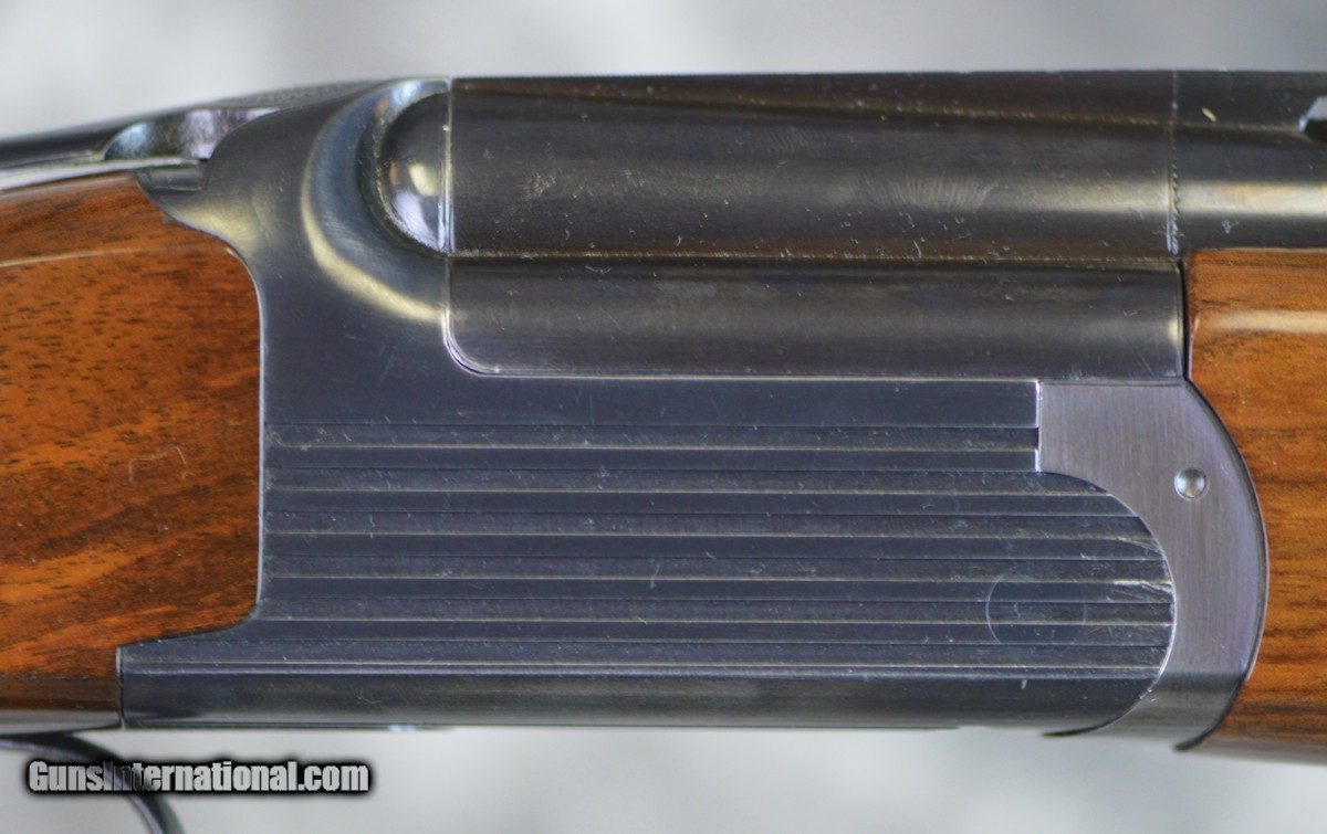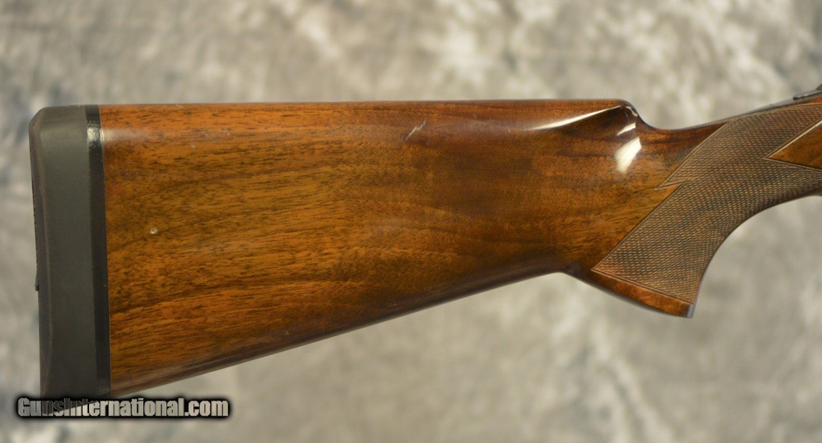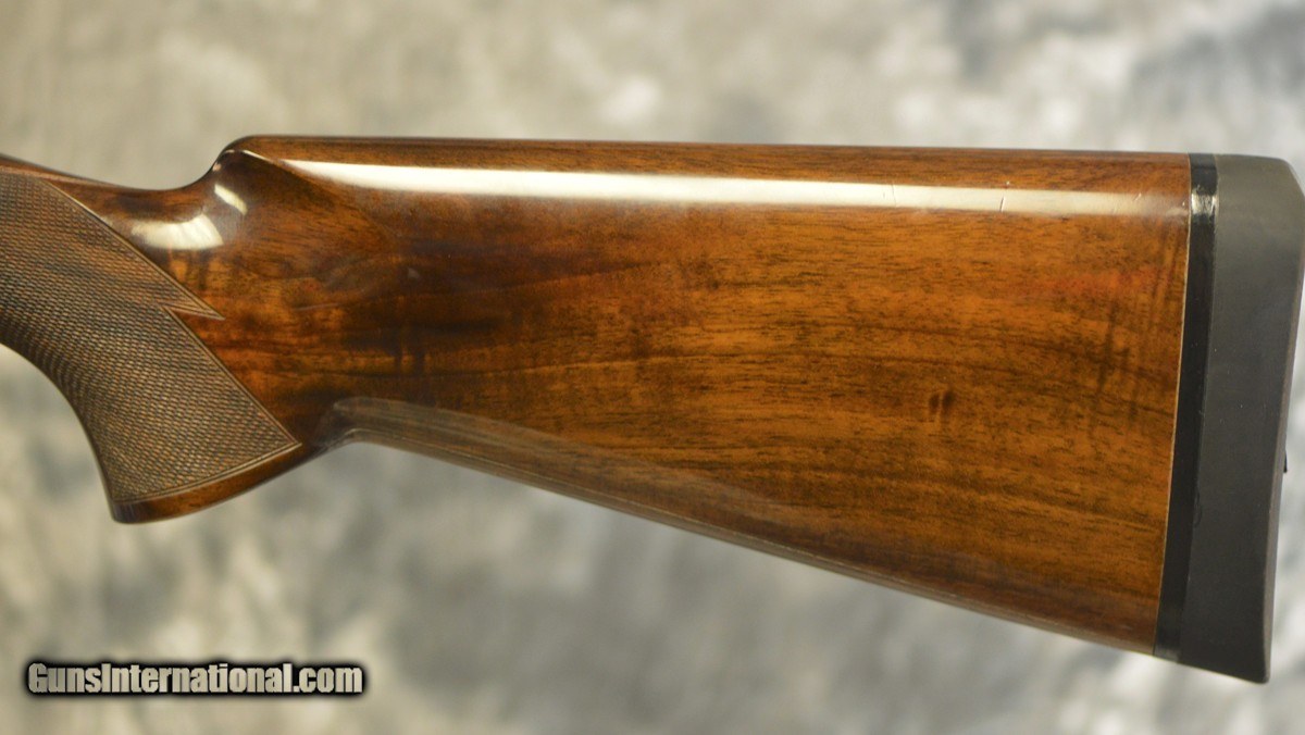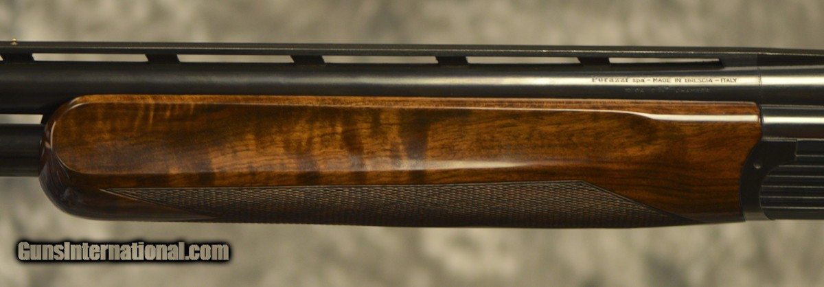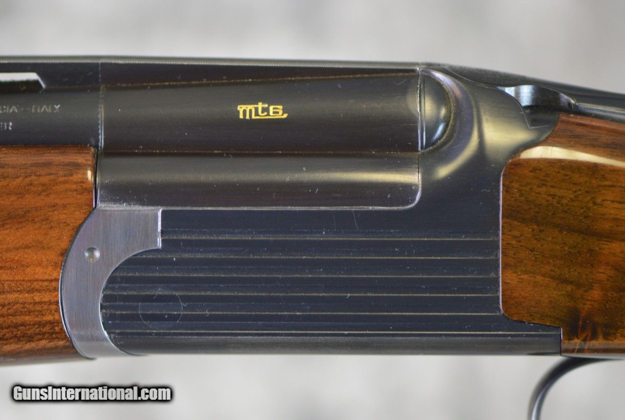 Description: Pre-Owned Perazzi MT6 Trap 12GA with 31" factory choke tubed barrels, factory ramped ventilated 11x11mm parallel rib. Blued MT6 receiver with fixed selective coil spring triggers. Bluing wear on forearm iron and edges of receiver, barrels are Type 4 barrels with Type 4 forearm iron, barrels and Iron do not match receiver-however, current production barrels can be fit to this action because of this conversion. Recently fully serviced by Perazzi USA, handling marks in stock and forearm but checkering and finish remain in mostly excellent condition. Includes MT6 factory case, original chokes and wrench. SOLD |