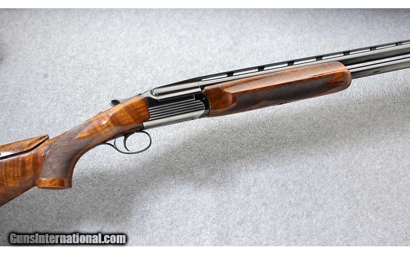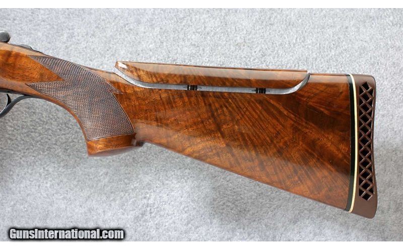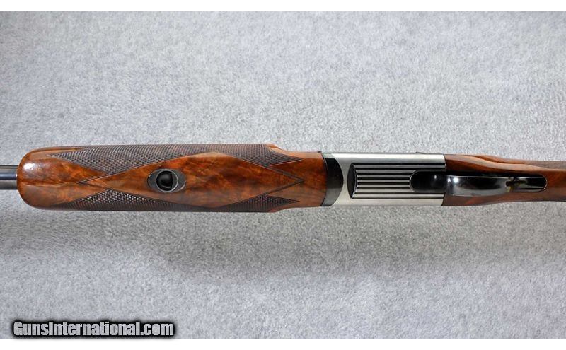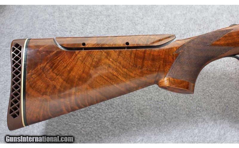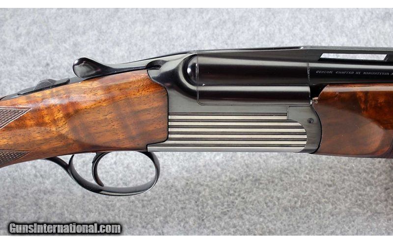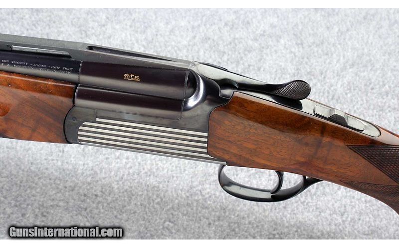 Description: This Perazzi MT6 was manufactured in 1975 and imported by Ithaca. The action is tight and the top lever is right of center. The MT6 was one of the first guns to have standard removable choke tubes. This is fine competition shotgun. 12 Gauge SOLD Chambers: 2 3/4 inch Metal Condition: Very good with some silvering on the sharp edges Wood Condition: Very good over all with some handling marks Bore Condition: Very good with signs of use Barrels: 31.5 inch Acciaio special steel barrels Triggers: Single selective trigger Stock Dimensions: "14 1/2 inch LOP, Adjustable cheek piece Fore End: "Checkered walnut, there is a chip on the right side by the frame Butt Pad: Perazzi recoil pad Weight: 8 lbs. 12 oz. Sights: Vent rib with double beads Chokes: Five interchangeable choke tubes Item Location: Lehi, UT |