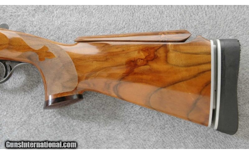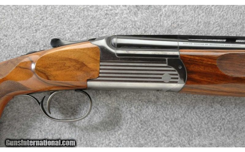 Description: The action is tight and the top lever is right of center. The single barrel and its fore end are not serial numbered to the rest of the gun SOLD Manufacturer: 1977 Caliber Info: 12 Gauge Chambers: 2 3/4 inch Metal Condition: Good with scratches, wear on the frame and trigger guard Wood Condition: Good with scratches and dents Bore Condition: Very good Barrels: 31 in. vented O/U barrels and 33 1/2 in. ported single barrel Triggers: Single selective trigger Stock: Checkered walnut Monte Carlo stock with adjustable comb Stock Dimensions: 13 inch LOP Fore End: Checkered walnut Butt Pad: Kick Eez pad Weight: 9 lbs. with O/U barrels mounted Sights: Vent rib with double beads Chokes: Interchangeable choke tubes Extras: Factory case Item Location: Lehi, UT |