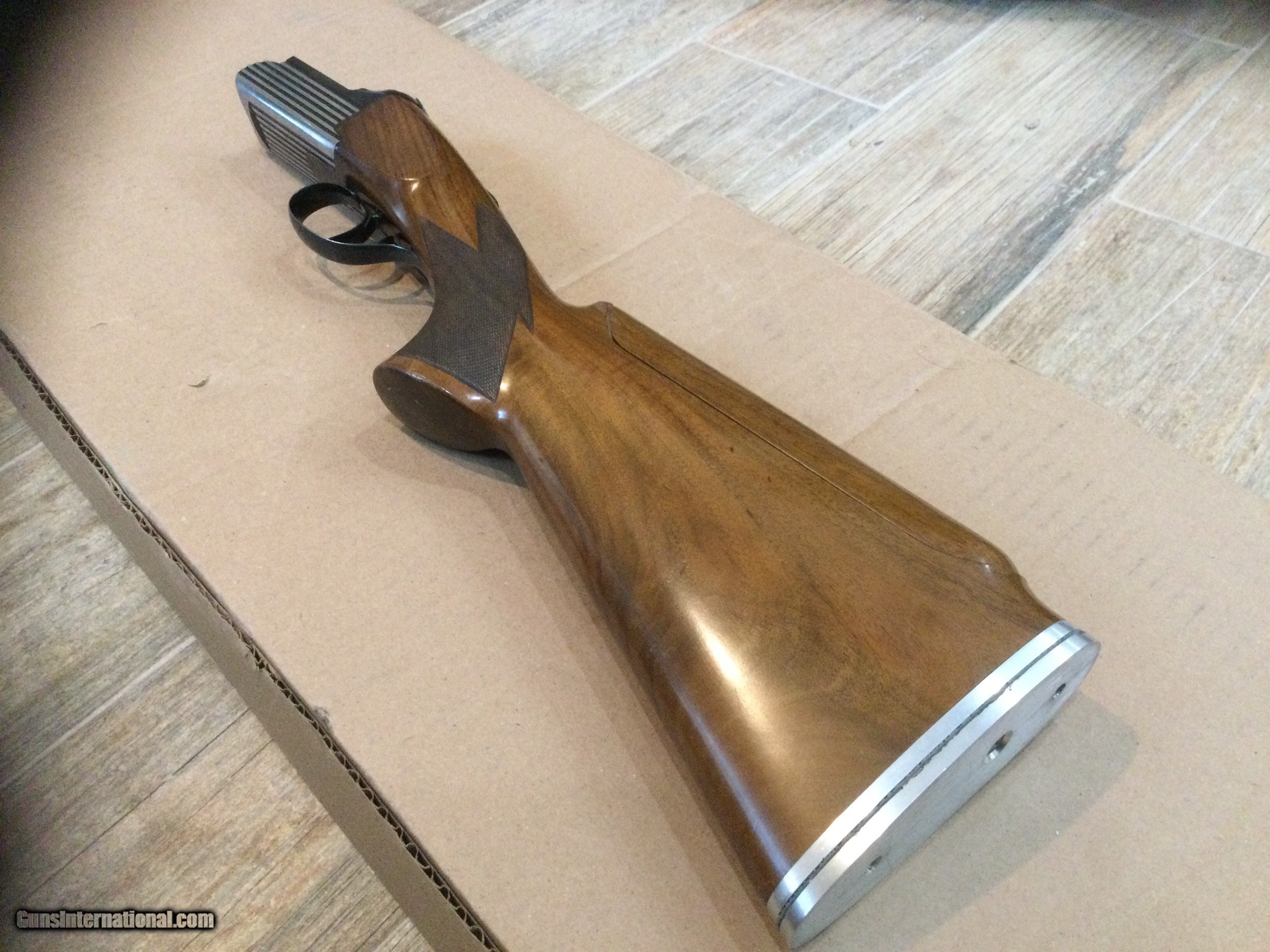 Description: Perazzi MT6 receiver in excellent condition with adjustable stock and original complete forend with matching number, this receiver will fit any regular MX8, Mirage and most other models barrels (Will not fit MX3 and similar models) , I used it with my Mirage SS barrel for a while (available separately on GI) the stripes and blueing are 98%, the receiver has seen very little action so it remains very tight as you can see the top lever is way to the right with plenty of beef left, the forend lock is very crisp. Single selective non removable trigger like the MX12 and most of the S model Perazzi. BUY THIS SET UP WITH THE TYPE 4 PICTURED 29-1/5" BARREL FOR $3500. Any question please email me. NOTE: Barrels must be fitted by professional gunsmith, forend is original TM6 type and will not fit type 4 barrels, barrel in the picture sold separately. Sold as is no refund or returns. SOLD SOLD Shotgun Gauge: 12 Gauge Manufacturer: Perazzi Model: MT6 Ejectors: Yes Condition: 95% Metal Condition: 98% Wood Condition: 75% Triggers: Single selective non removable Stock: Adjustable Butt Pad: None Item Location: Texas |