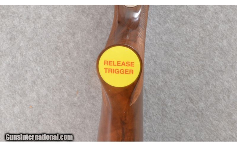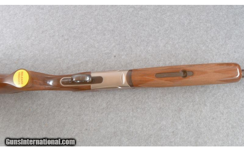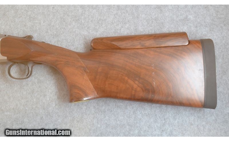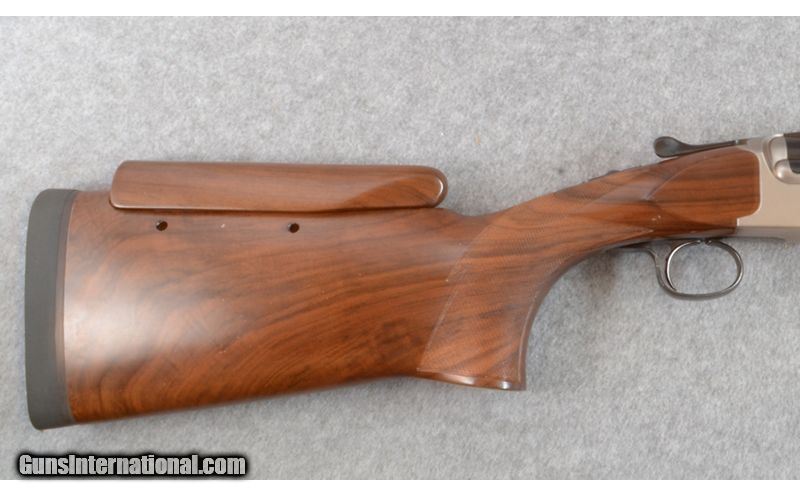 Description: An amazing gun for the shooting enthusiast. It has a unique trigger in that it is a release trigger. You pull the trigger and hold it until you are ready to fire and then you release the trigger and the gun fires. It is supposed to reduce the flinch in pulling the trigger of other guns, thereby making your shots more accurate. A number of people who have shot a firearm with a release trigger have said that the really like it once they got used to it. 12 Gauge SOLD Chambers: Nothing on steel. Metal Condition: Very good with a few small scratches. Wood Condition: Very good with a few small dings & scratches. Bore Condition: Clean and Clear. Barrels: 34 Triggers: This firearm has a release trigger. Stock Dimensions: Wood with adjustable cheek rest with checkered pistol grip. Fore End: Wood with checkered grip. Butt Pad: Soft rubber pad. Weight: 10 lb. 2 oz. Sights: Raised vented rib with BB mid way down barrel and a light gathering tube front sight. Chokes: #1 Modified Item Location: Lone Tree, CO |