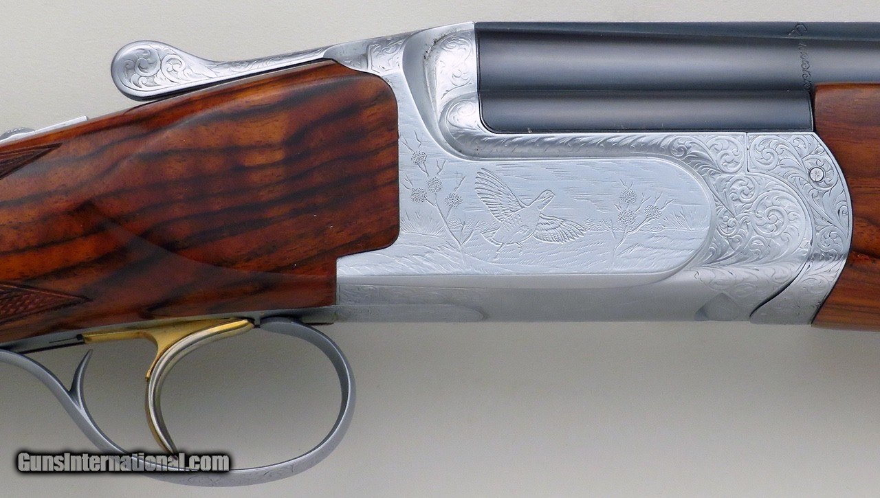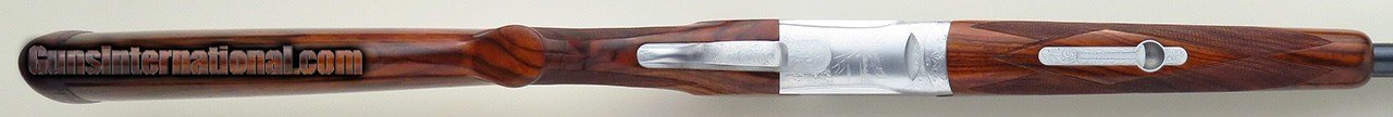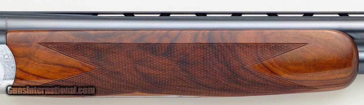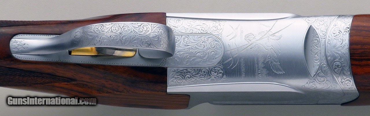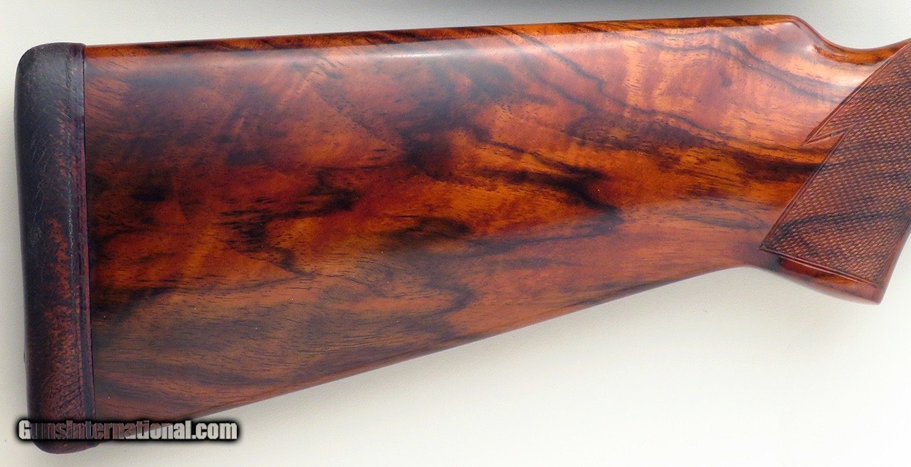 Description: Perazzi MX-12 SC3 12 gauge with original left hand stock. Serial 123145 wears 34-inch barrels with single bead plus fiber optic and features a matted rib, ejectors, inertia trigger, mechanical safety/selector, Seminole forcing cones and a leather-covered recoil pad. ENGRAVING: The action is game-scene engraved by Potelli (signed under the guard) with a flying woodcock, quail and duck, each surrounded medium vine and scroll that continues over the forend latch, top lever, tangs and guard. CHOKES: Eight Seminole extended chokes are included (C/C/SKII/SKII/LM/LM/LF/XF). DIMENSIONS: Weight is 7.8 pounds. Length-of-pull is 15.0 inches. Drops are 1.5 and 2.2 inches, and cast on is approximately .4-inch. CONDITION: The bores are bright and ejectors ping with authority. Barrels remain full on face and the top lever rests well right of center. Barrel blue is approximately 98 percent. The action, forend latch, top lever, tangs and guard have been hard chromed and stand at approximately 97 percent. Wood is at least 98 percent and the pad has minimal wear and remains supple. The original manual is included. The price is firm and layaway is available. $12,500 plus shipping. SOLD Manufacturer: Perazzi Model: MX-12 SC3 Bore: 12 Chambers: Seminole forcing cones Ejectors: Yes Barrels: 34-inch Gauge Info: 12 Stock: Left Hand Stock Cast: On approximately .40-inch |