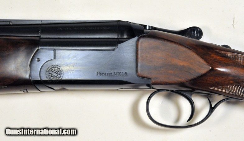 Description: Perazzi MX-16 Ser. No. 98654. 12 Ga.- 28 3/8" separated vent rib barrels choked IC/IM. Straight stock with beautiful dark burled walnut, single selective trigger with extra springs and firing pins. Cased in Perazzi hard case. Great gun for sporting clays, hunting or columbaire. SOLD |