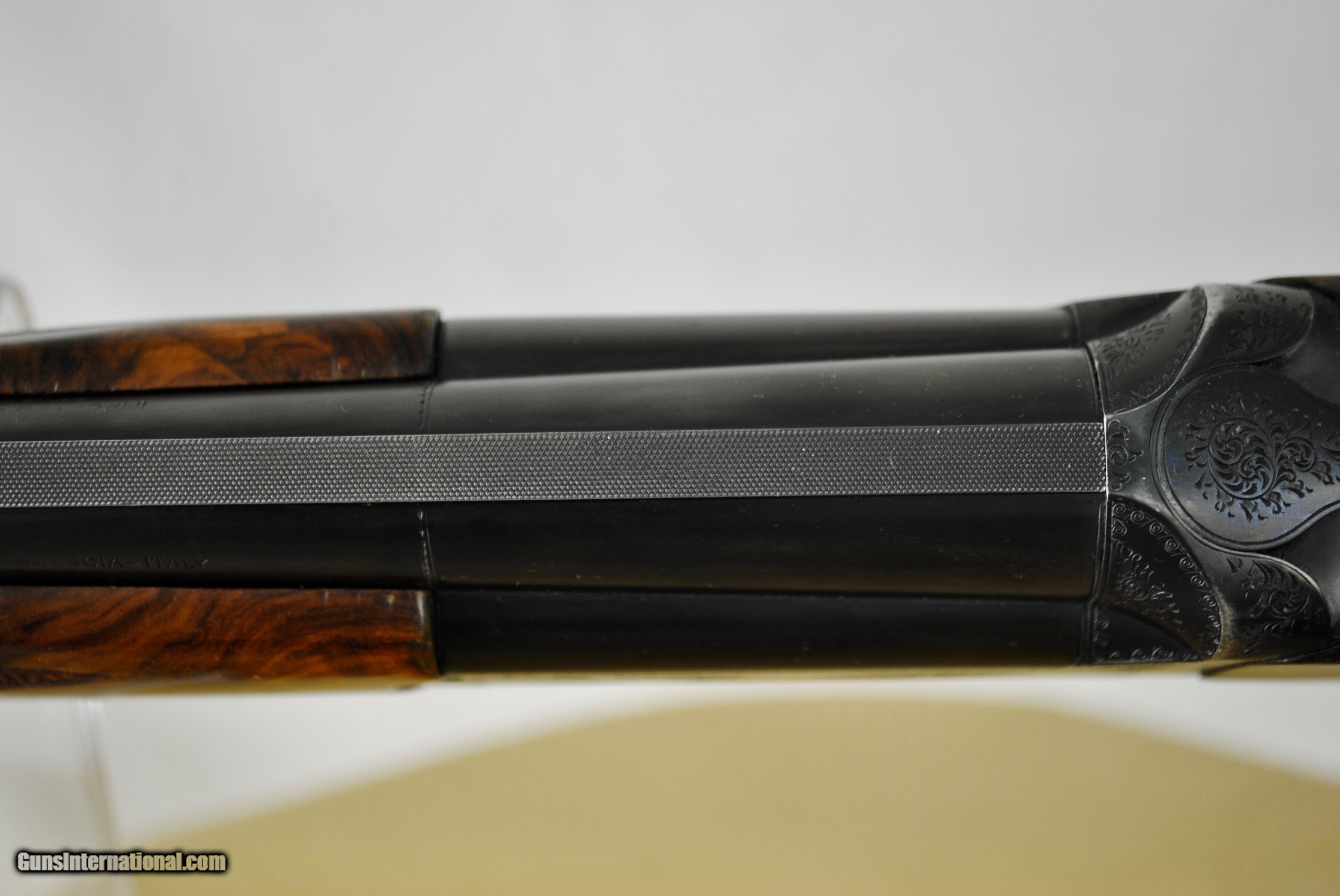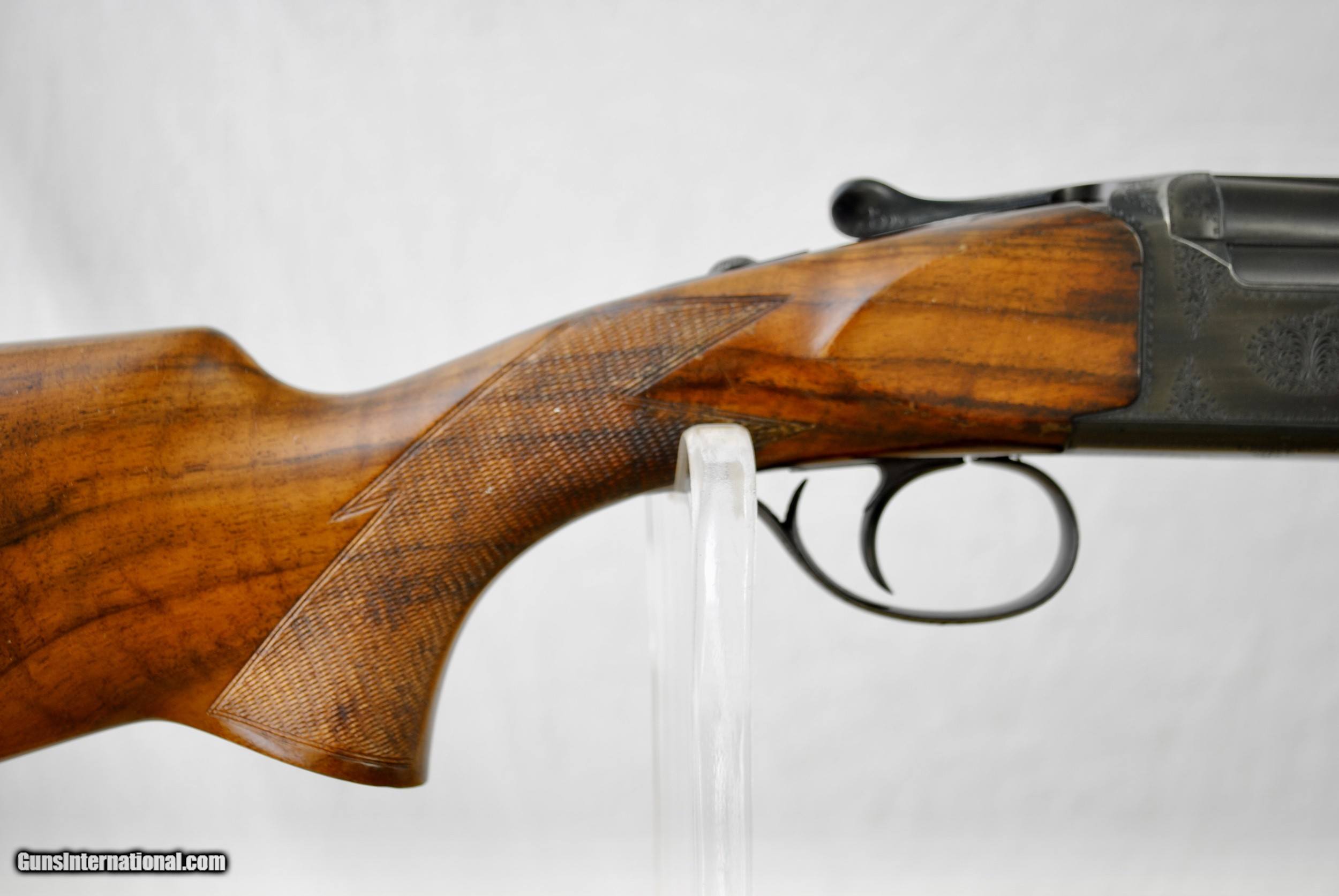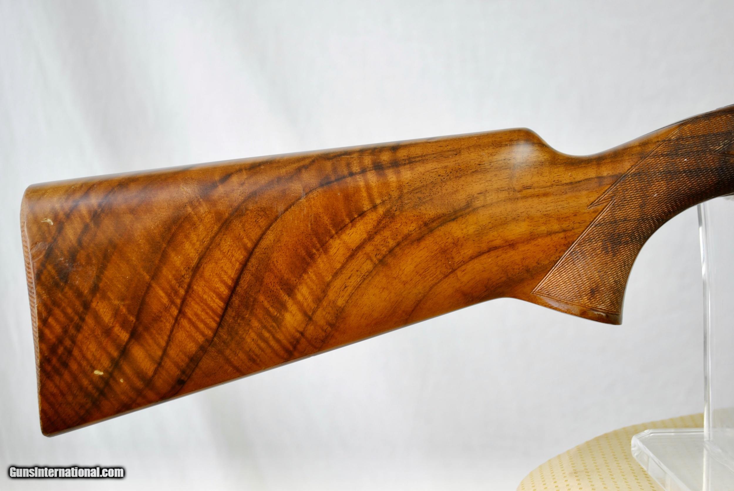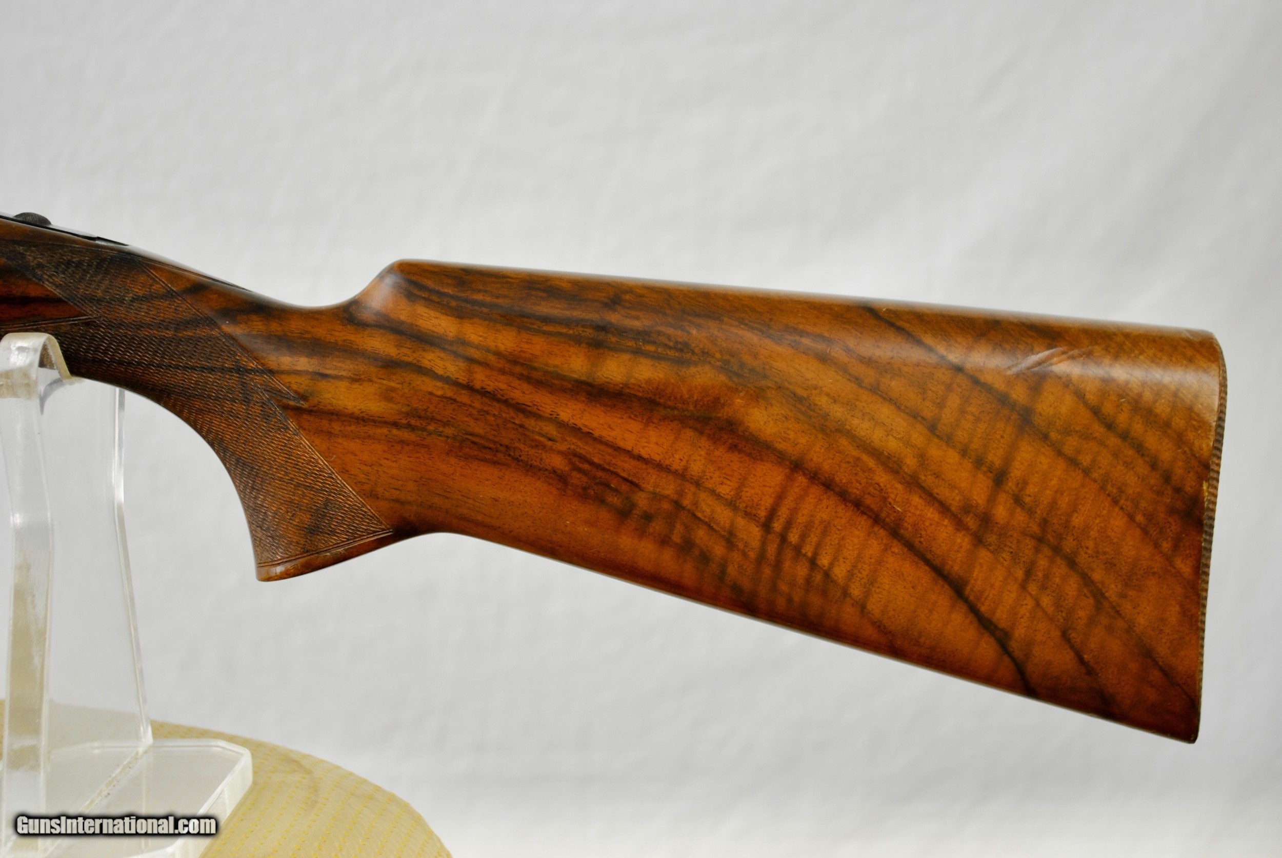 Description: Perazzi MX-20 Pachmayr with 26" Choke Tube Barrels. Imported by Pachmayr in very limited numbers, this is fixed trigger group Perazzi 20 gauge with coil main springs. Single selective trigger. Mirror bores measuring .621 with a #1 Choke Tube (4/1000) and a #2 (6/1000). These chokes woulld approximate Skeet and IC. No additional choke tubes or wrench are provided. Gun has 3" Chambers. Top rib has a small dent on right side toward the muzzle. Not visable when sighting. No looose ribs. All serial numbers are all matching. Gun is tight on face. Well figured wood. Stock has field wear with scatches and a few small dents as shown. Small start / stop crack in stock about 1/4" at bottom rear tang, not readily visable and has been epoxy repaired and reinforced (typical of Perazzi Guns of this time period). Checkered butt. Stock is reovable with normal Perazzi Stock Wrench. Weight of gun is 6 LBS 13 1/2 OZ. LOP is 14 7/16". Drop at Comb l is 1 3/8". Drop at Heel is 2 3/8". Gun is not cased. Shipping is $50. SOLD Shotgun Gauge: 20 Gauge |