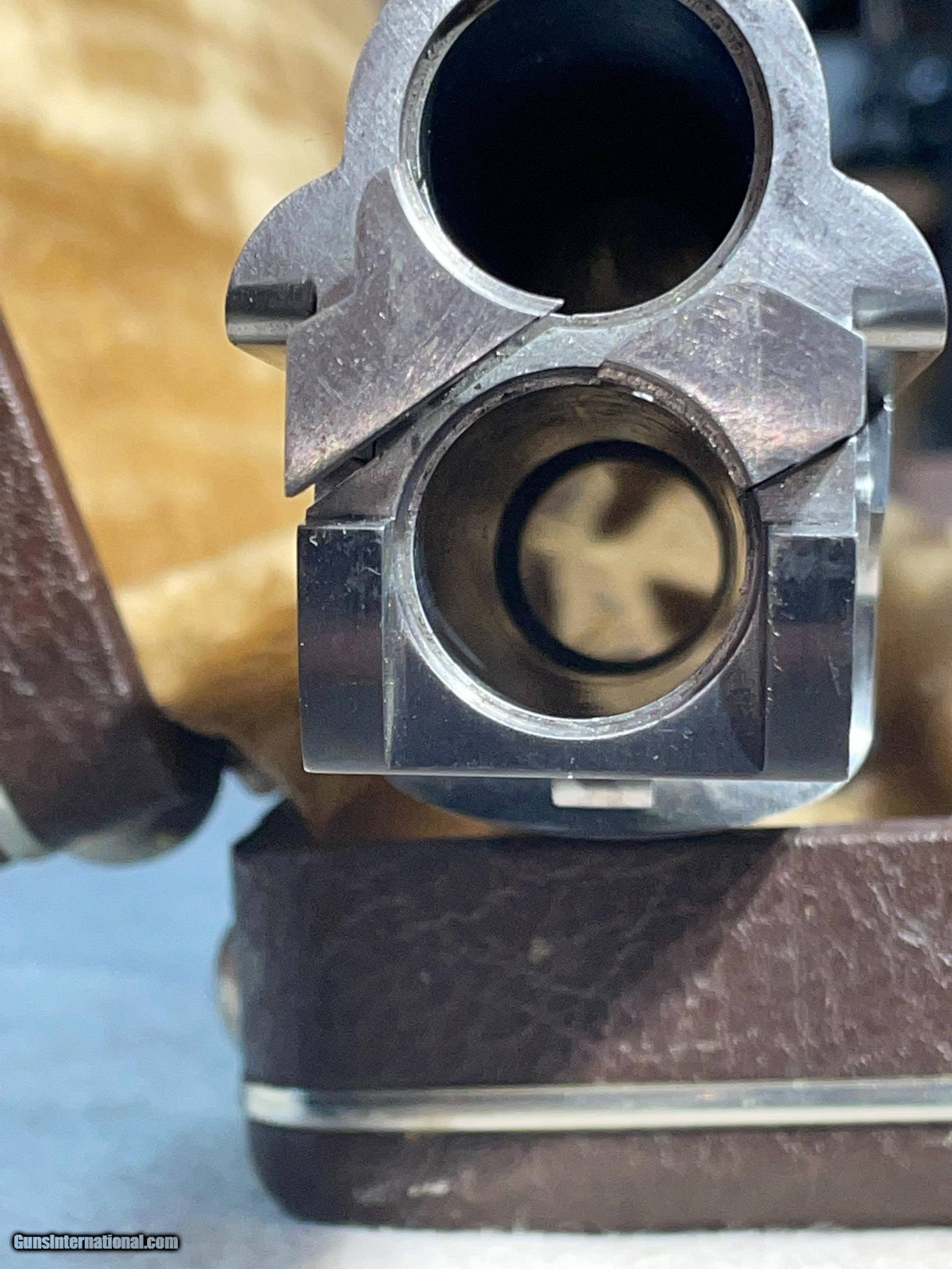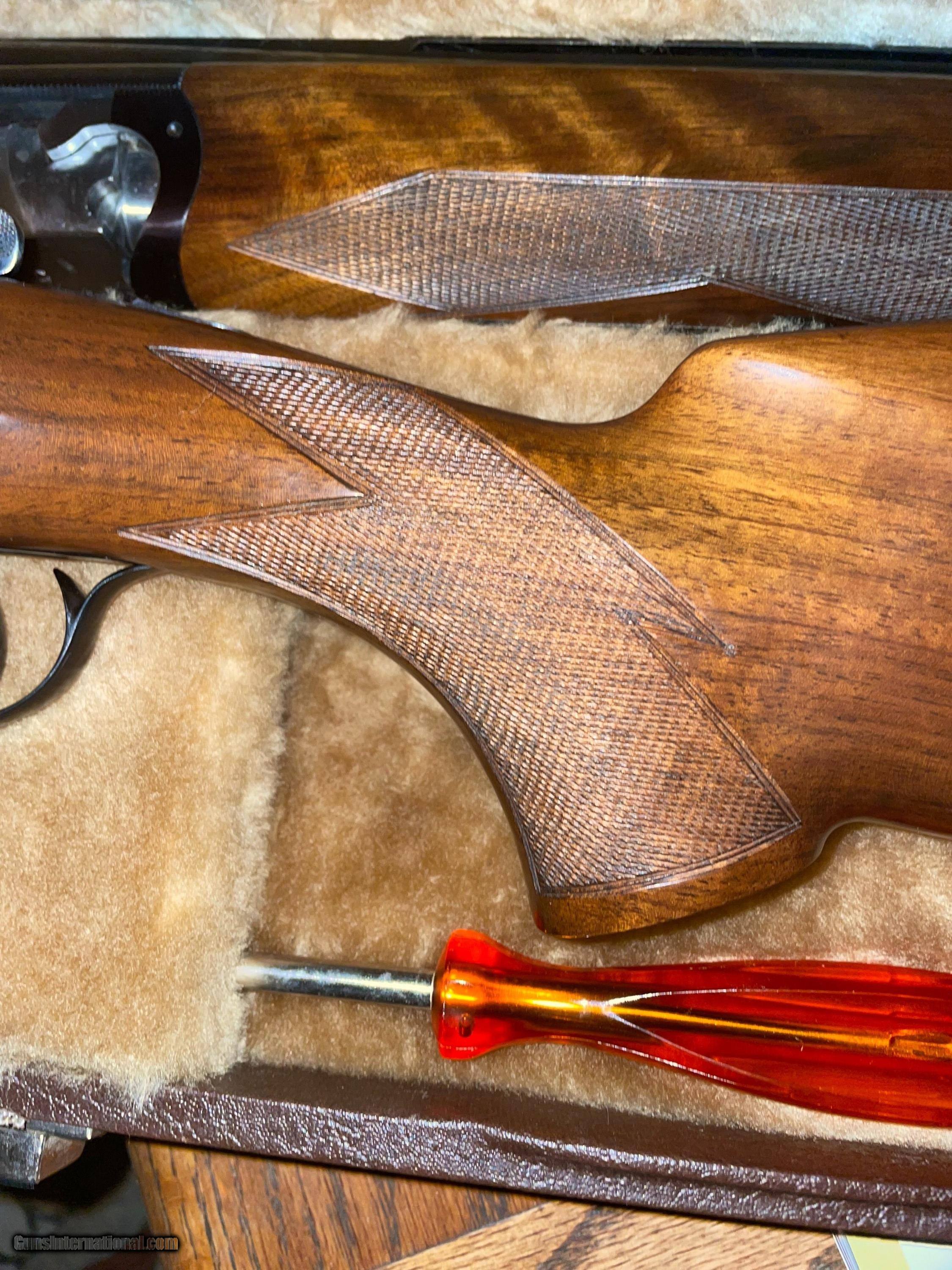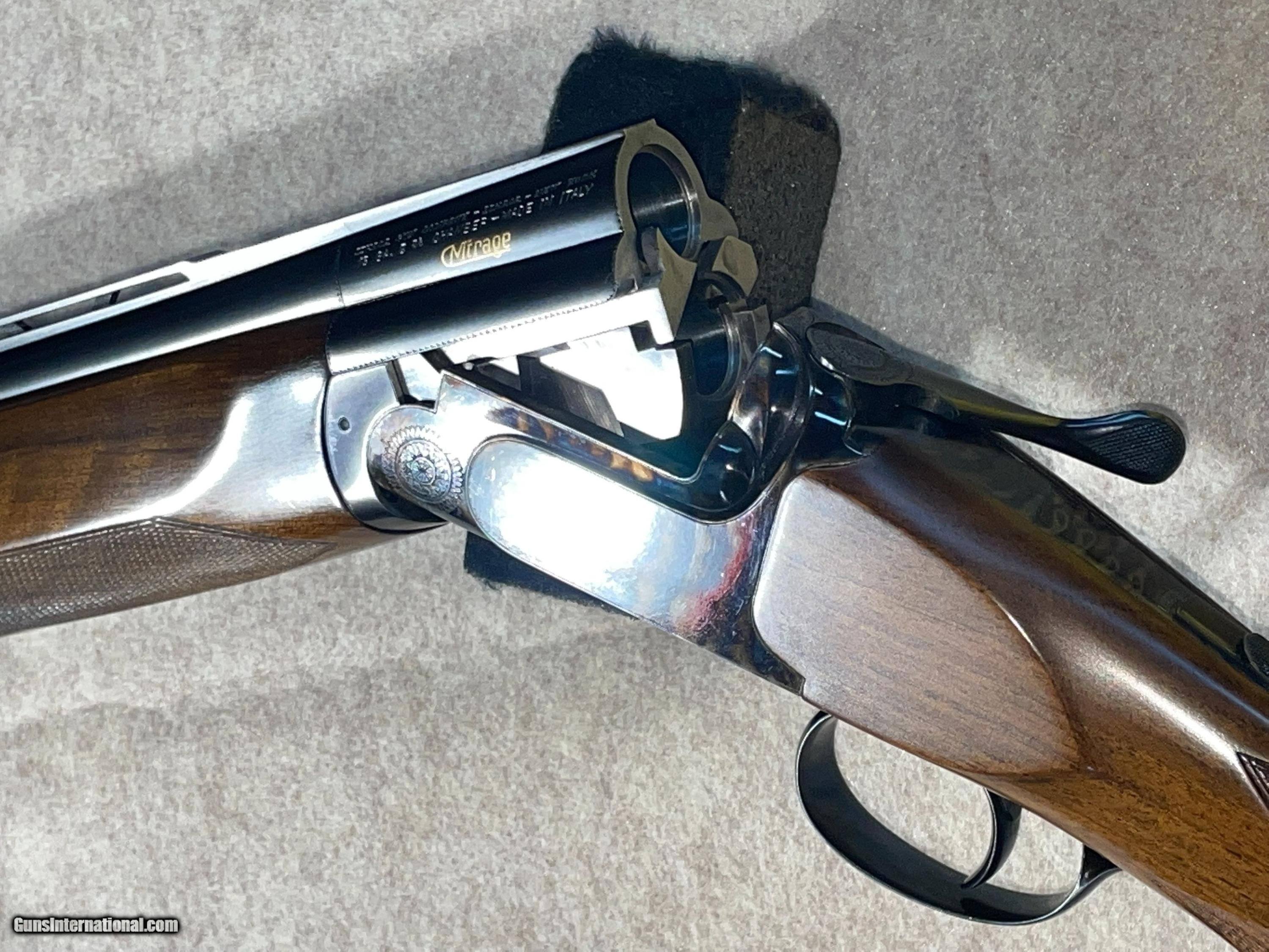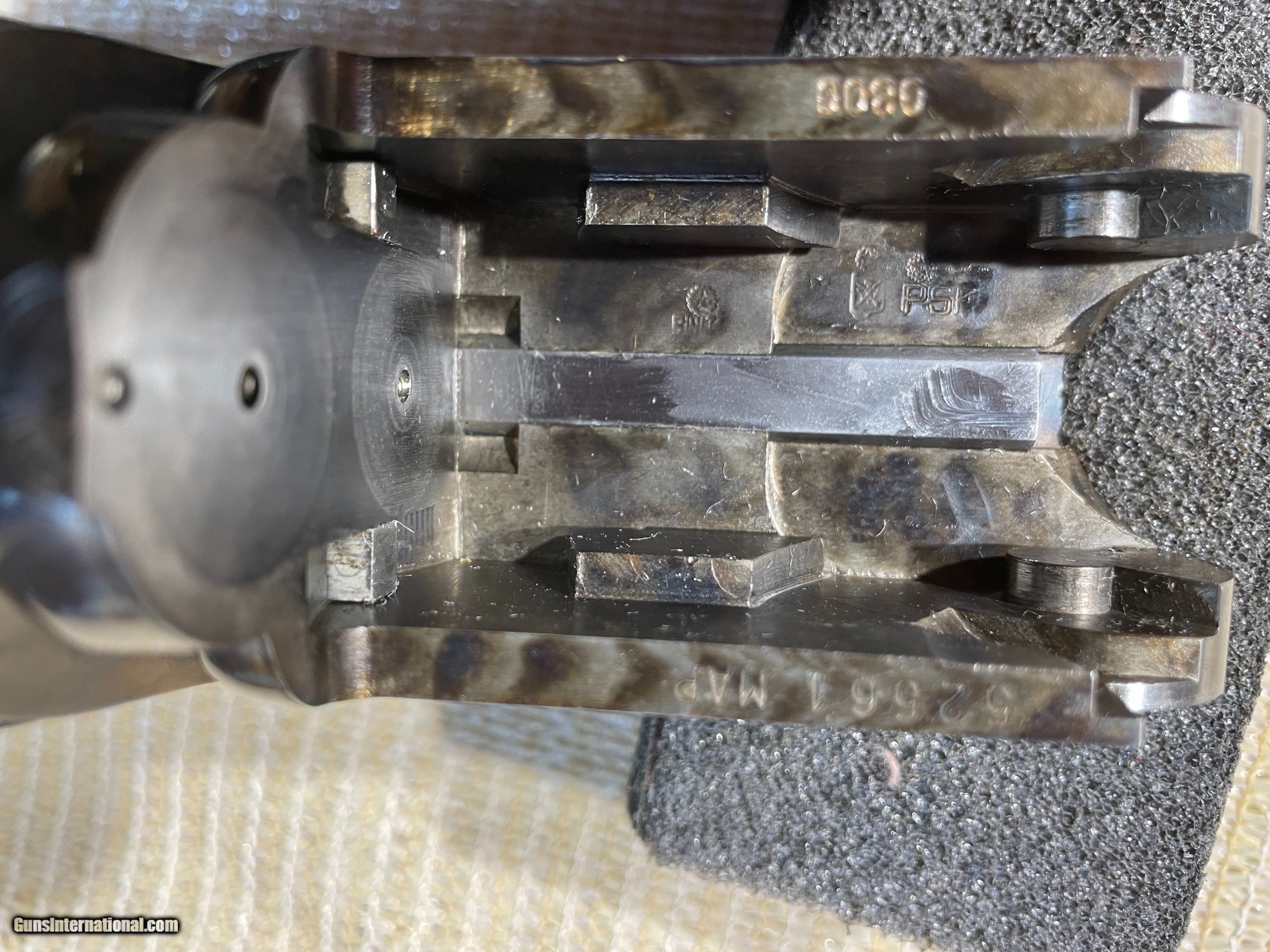 Description: Perazzi MX-8 Mirage Type 4 This gun is in like new condition. Would be great for Trap Doubles, ZZ Bird or live birds This gun is 100% original and in amazing condition. All serial numbers match, stock, receiver, barrels, trigger and forearm wood and iron. The bluing is 99% and the Tiger Stripe Color Case Hardened receiver looks new. The bores are bright and shiny, the breech face shows no ware and the gun locks up tight like a new one. The wood is in excellent shape and the checkering is crisp and clean. On the right side of stock there are two ¼ in. scratches just below the safety. Length of Pull 14 1/2 in. Drop at comb 1 ½ in Drop at heel 1 ½ in Triggers are pull / pull: bottom first bottom 3 ¼ lb. top 4 lb. Barrels are 28 1/4 in. Fixed chokes Bottom 0.30 Improved Modified Top 0.41 Full Weight 8 lb. 1 oz. Tapered Rib 11mm to 8 mm SOLD Shotgun Gauge: 12 Gauge Manufacturer: Perazzi Model: MX- 8 Mirage Serial Number: 52561 Barrel Length: 28 1/4 Condition: Excellent Metal Condition: Excellent Wood Condition: Excellent Bore Condition: Excellent Barrel Type: O/U Triggers: Pull / Pull Stock Comb: 1 1/2 in. Stock Heel: 1 1/ in Stock Cast: Cast off LOP: 14.5 in Rib: Tapered step Weight: 8 lbs. 1 oz. Manufacture Date: 1978 Chokes: Fixed Choke Left: Bottom .030 Choke Right: Top .041 |