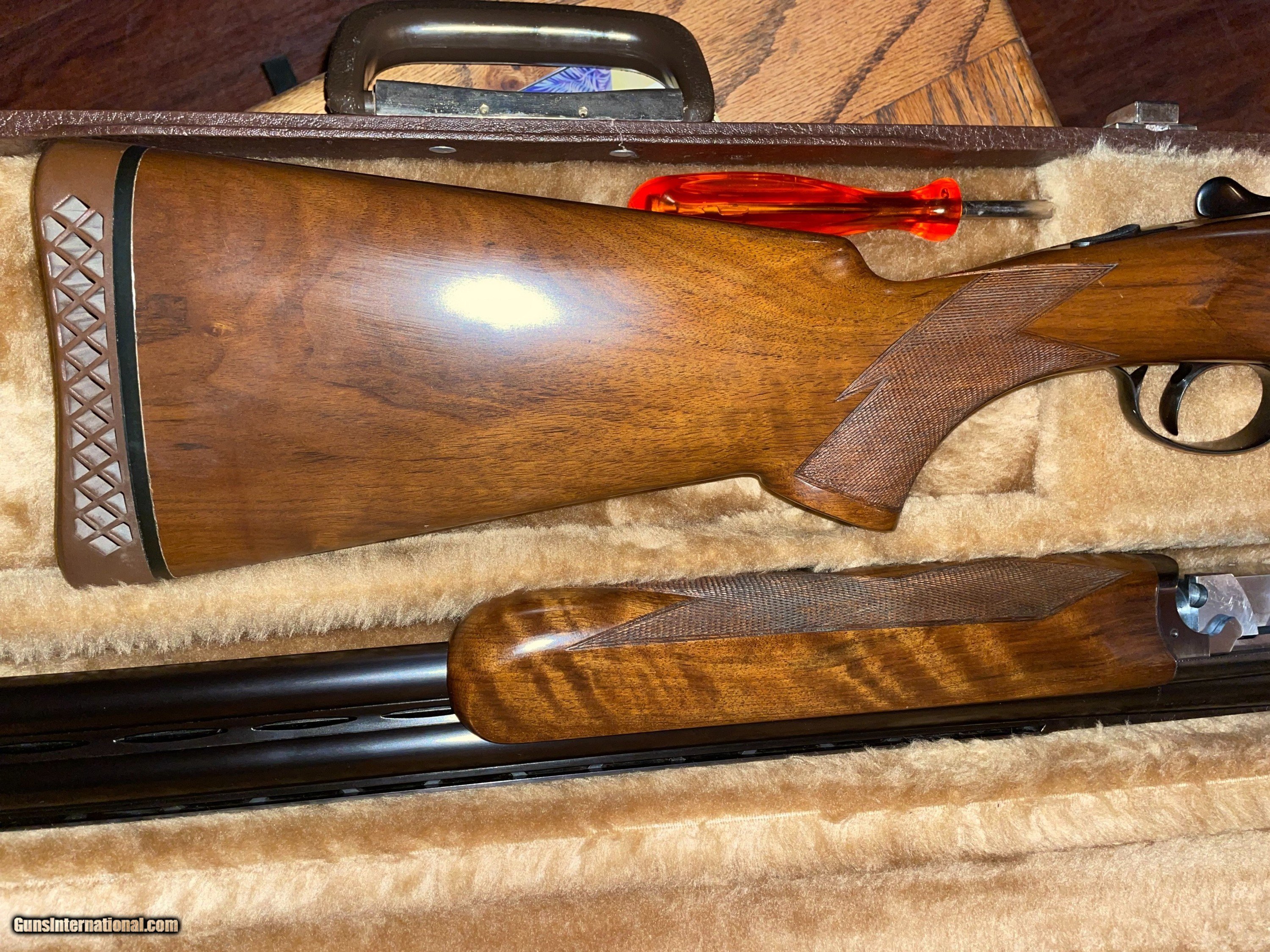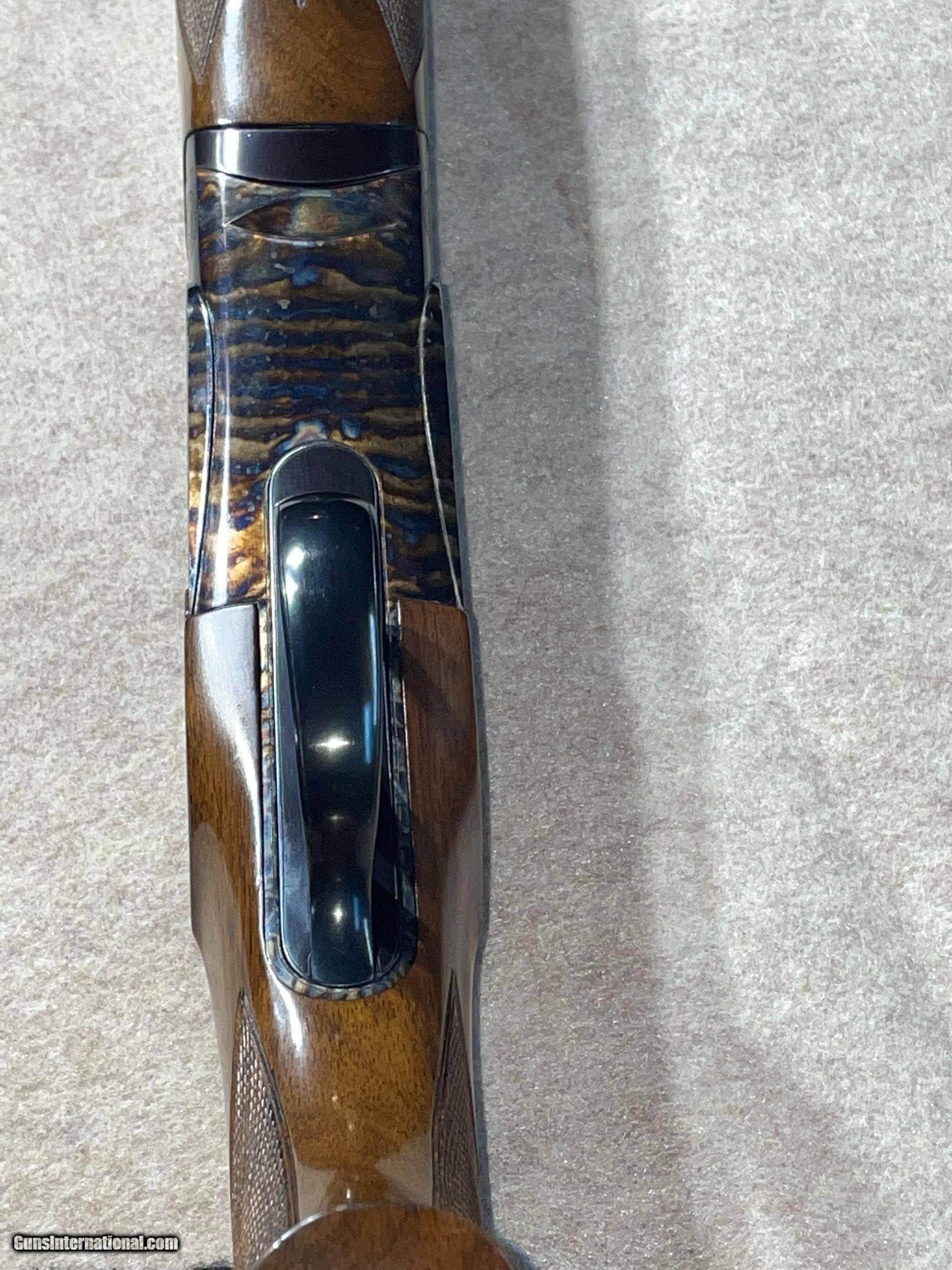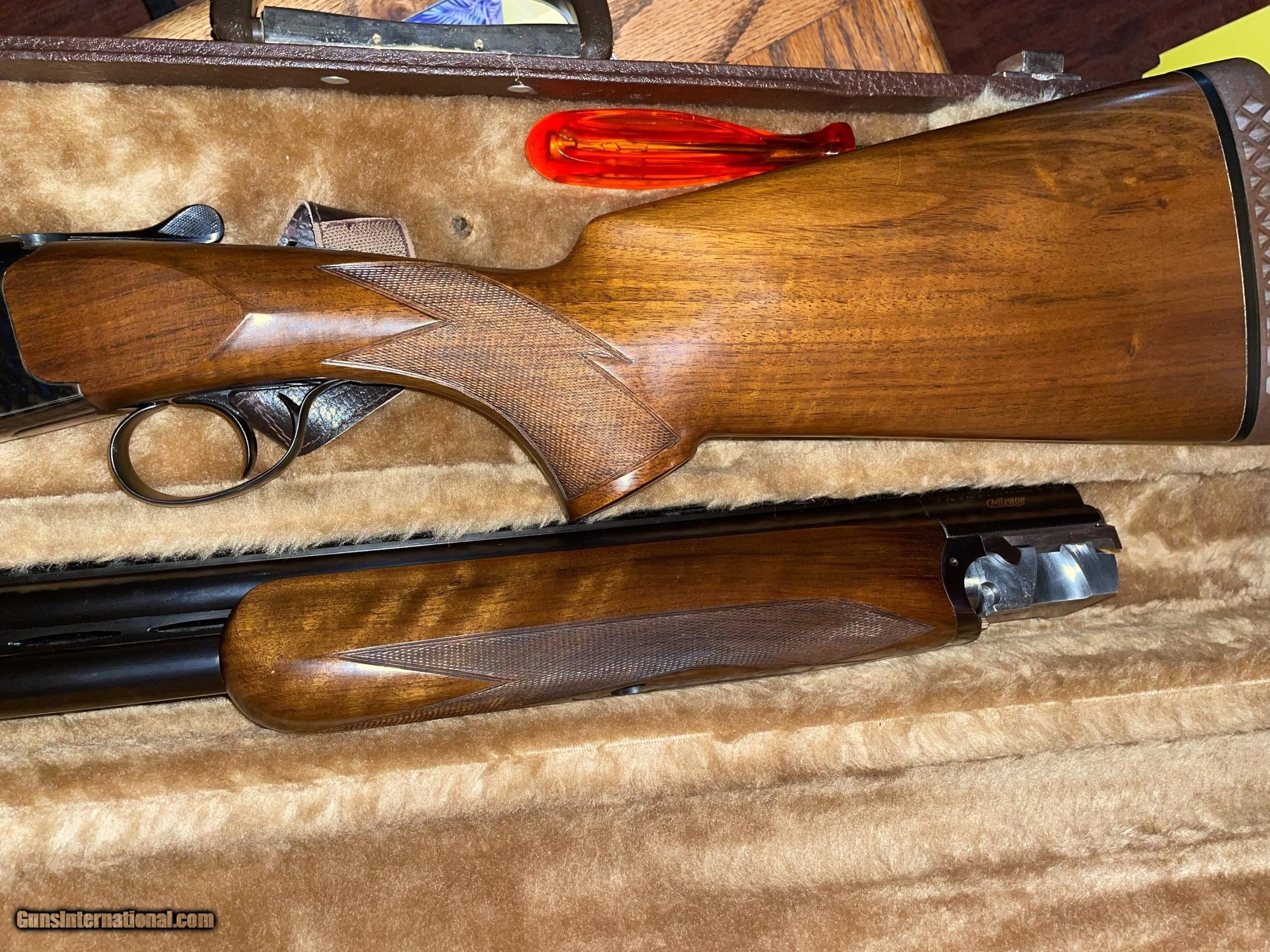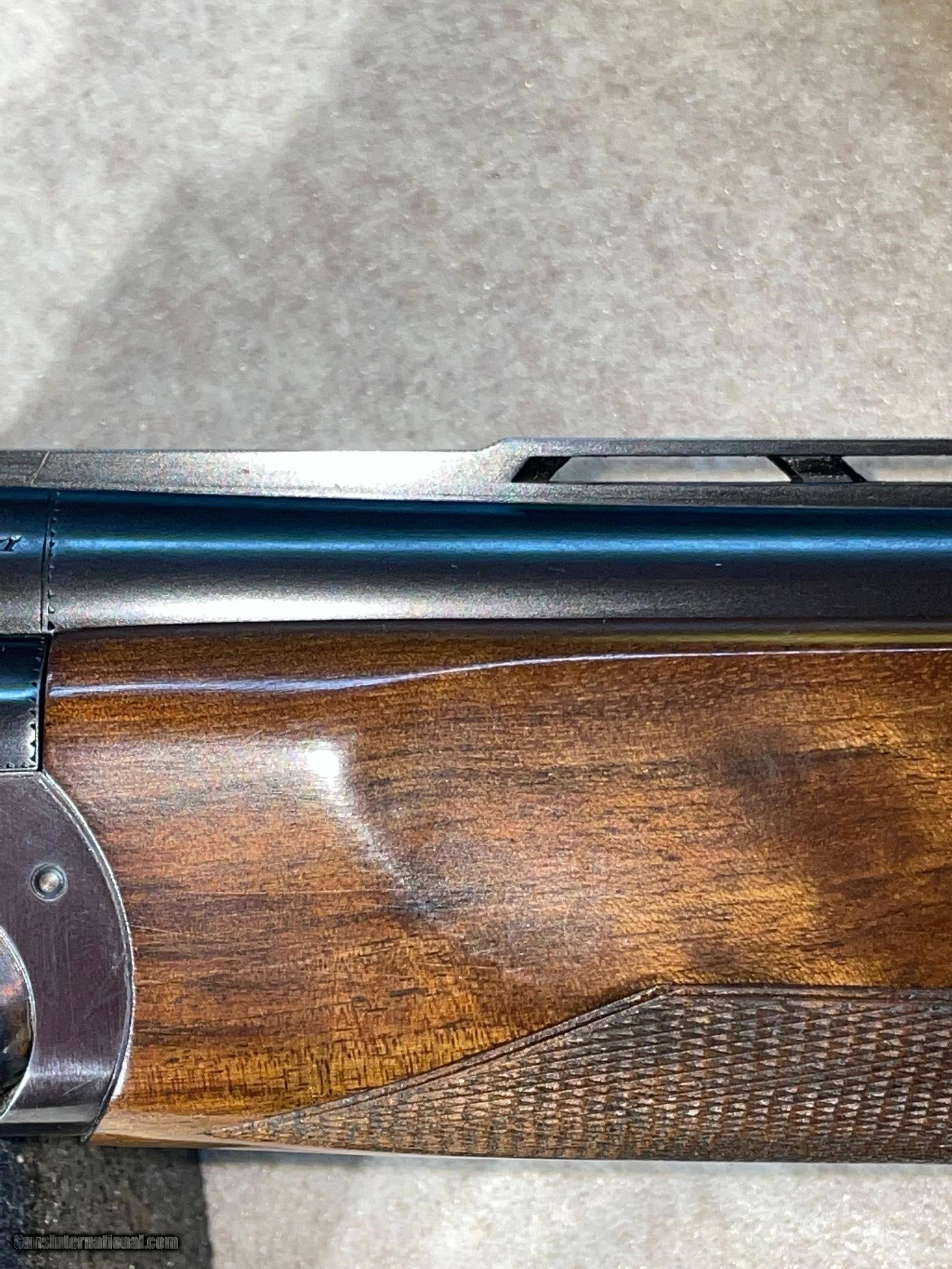 Description: Perazzi MX-8 Mirage Type 4 This gun is in like new condition. Would be great for Trap Doubles, ZZ Bird or live birds This gun is 100% original and in amazing condition. All serial numbers match, stock, receiver, barrels, trigger and forearm wood and iron. The bluing is 99% and the Tiger Stripe Color Case Hardened receiver looks new. The bores are bright and shiny, the breech face shows no ware and the gun locks up tight like a new one. The wood is in excellent shape and the checkering is crisp and clean. On the right side of stock there are two ¼ in. scratches just below the safety. Length of Pull 14 1/2 in. Drop at comb 1 ½ in Drop at heel 1 ½ in Triggers are pull / pull: bottom first bottom 3 ¼ lb. top 4 lb. Barrels are 28 1/4 in. Fixed chokes Bottom 0.30 Improved Modified Top 0.41 Full Weight 8 lb. 1 oz. Tapered Rib 11mm to 8 mm SOLD Shotgun Gauge: 12 Gauge Manufacturer: Perazzi Model: MX- 8 Mirage Serial Number: 52561 Barrel Length: 28 1/4 Condition: Excellent Metal Condition: Excellent Wood Condition: Excellent Bore Condition: Excellent Barrel Type: O/U Triggers: Pull / Pull Stock Comb: 1 1/2 in. Stock Heel: 1 1/ in Stock Cast: Cast off LOP: 14.5 in Rib: Tapered step Weight: 8 lbs. 1 oz. Manufacture Date: 1978 Chokes: Fixed Choke Left: Bottom .030 Choke Right: Top .041 |