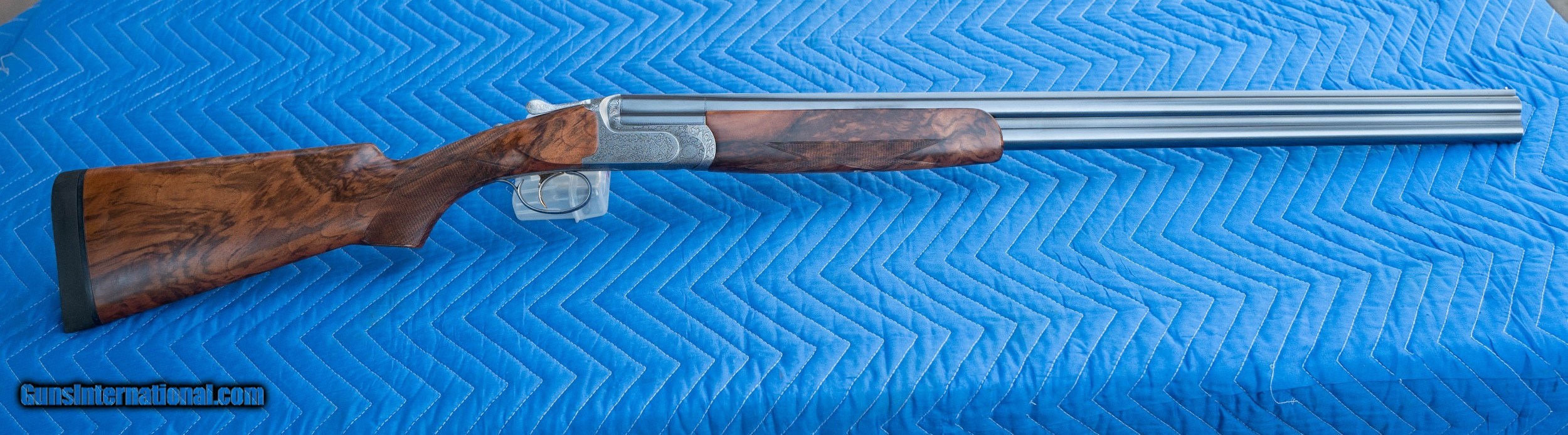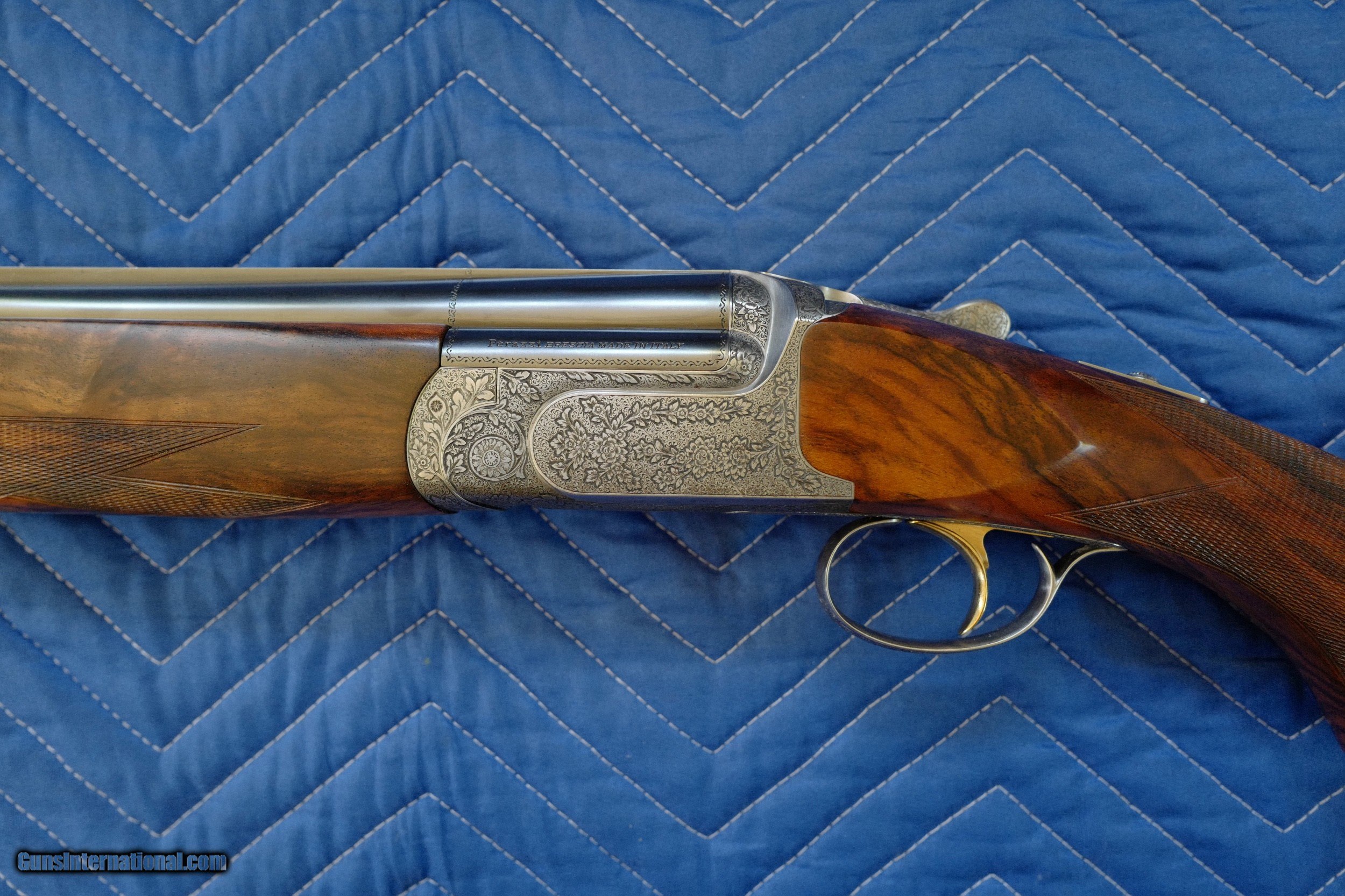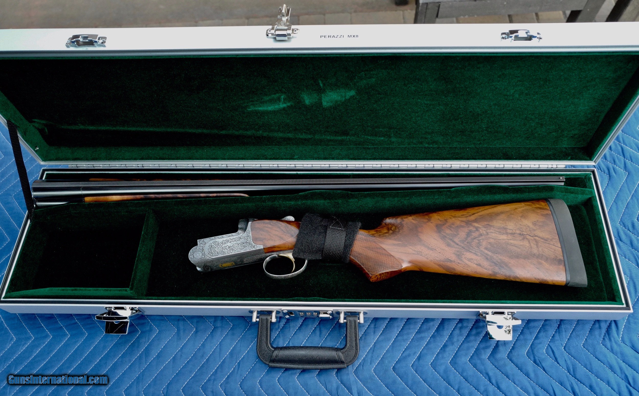 Description: This Perazzi MX-8 12 bore manufactured in 2000 is in excellent condition. I've owned this since 2010 and never fired it. It is hand-engraved and signed by Badillini. Barrels 29 1/2". Gun weight 7 lb 11 oz. Barrels stamped 1.53 kg. LOP 14 7/8 over recoil pad. DAC 1 3/8" DAH 1 7/8". 1/4" cast off for the right handed shooter. SN 117612. It does not have the standard plasticy stock finish of Perazzis but rather a high quality hand rubbed oil finish that is in perfect condition with no dings or scratches. Briley chokes and stock tool included as well as high quality Americase. Pay via bank wire, cash or I'll wait for your personal check to clear. Sales to lower 48 states only. SOLD |