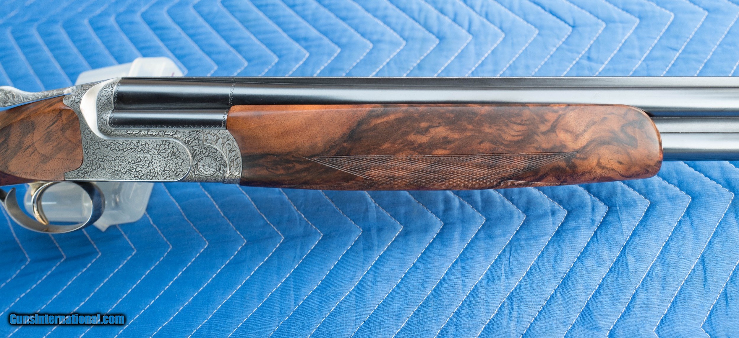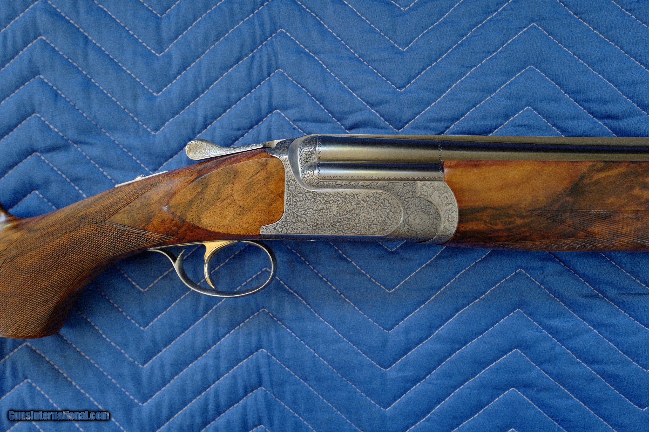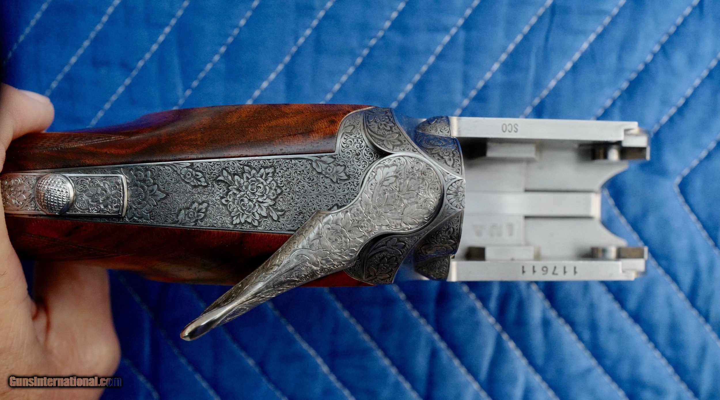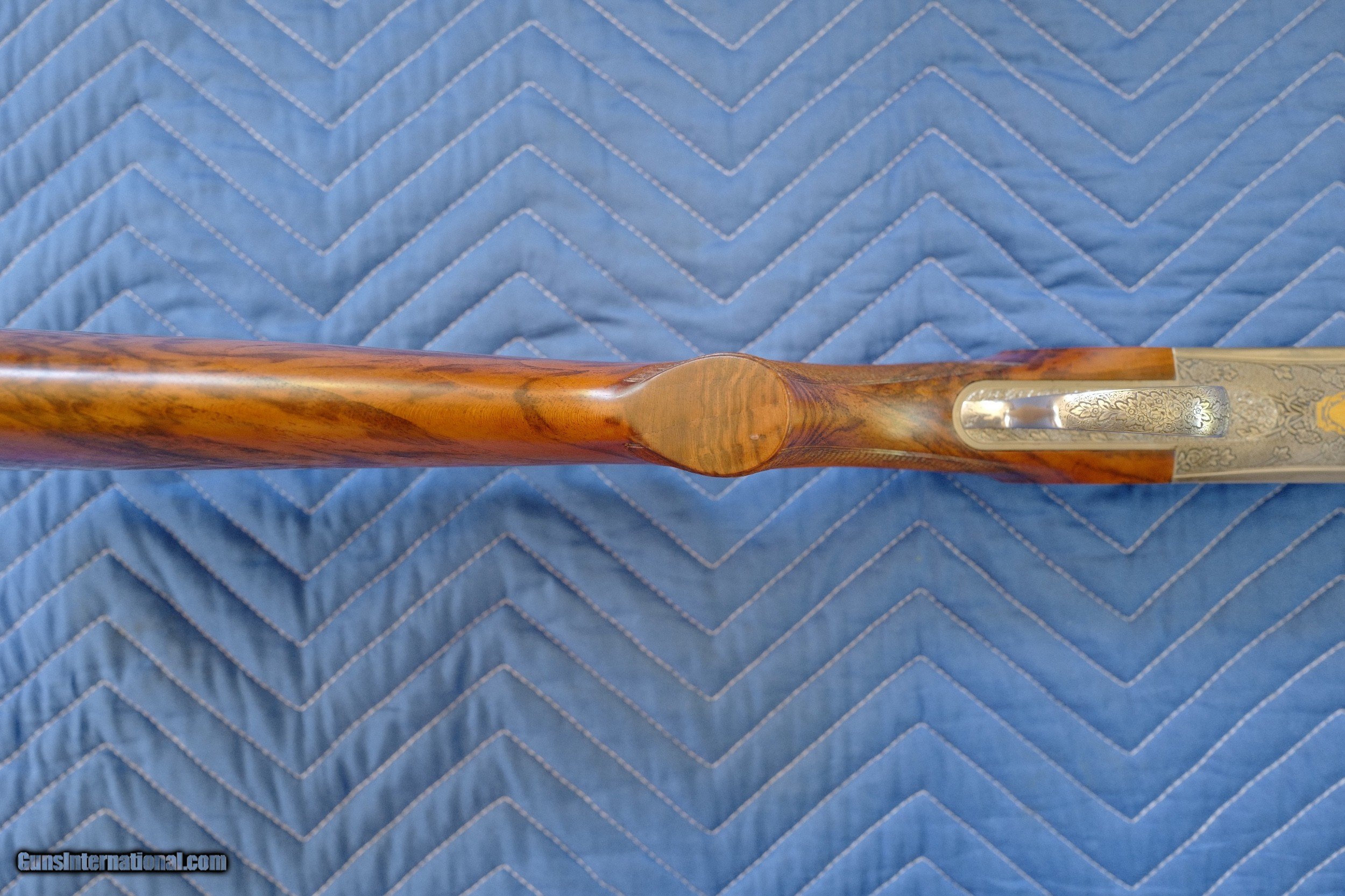 Description: This Perazzi MX-8 12 bore manufactured in 2000 is in excellent condition. I've owned this since 2010 and never fired it. It is hand-engraved and signed by Badillini. Barrels 29 1/2". Gun weight 7 lb 11 oz. Barrels stamped 1.53 kg. LOP 14 7/8 over recoil pad. DAC 1 3/8" DAH 1 7/8". 1/4" cast off for the right handed shooter. SN 117612. It does not have the standard plasticy stock finish of Perazzis but rather a high quality hand rubbed oil finish that is in perfect condition with no dings or scratches. Briley chokes and stock tool included as well as high quality Americase. Pay via bank wire, cash or I'll wait for your personal check to clear. Sales to lower 48 states only. SOLD |