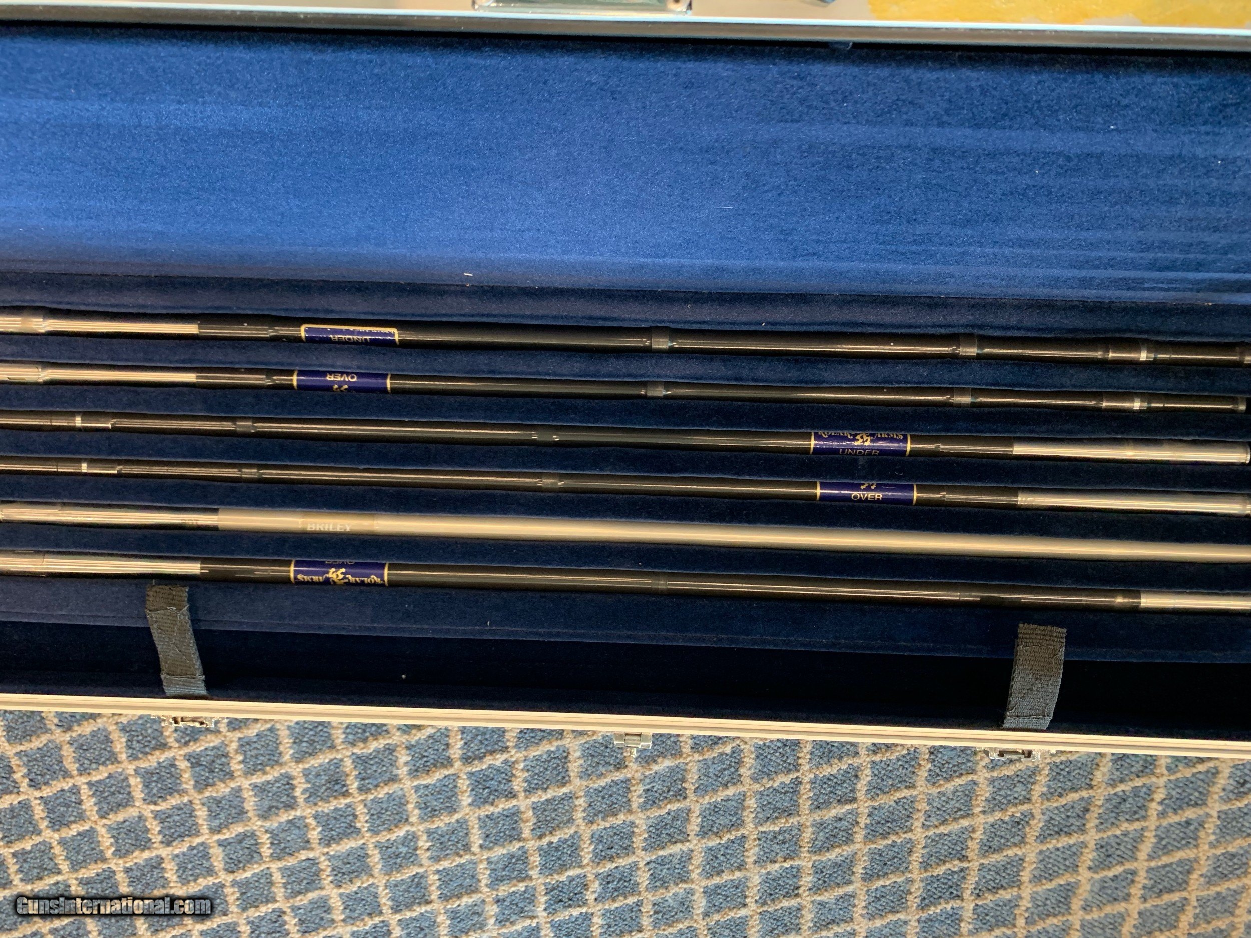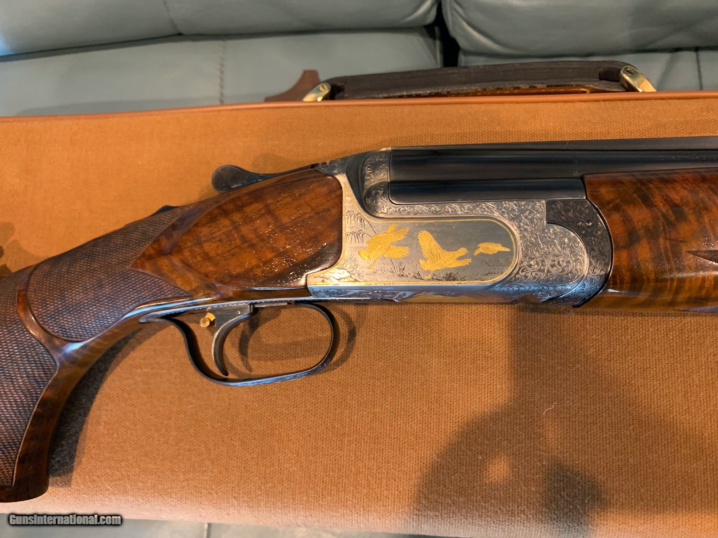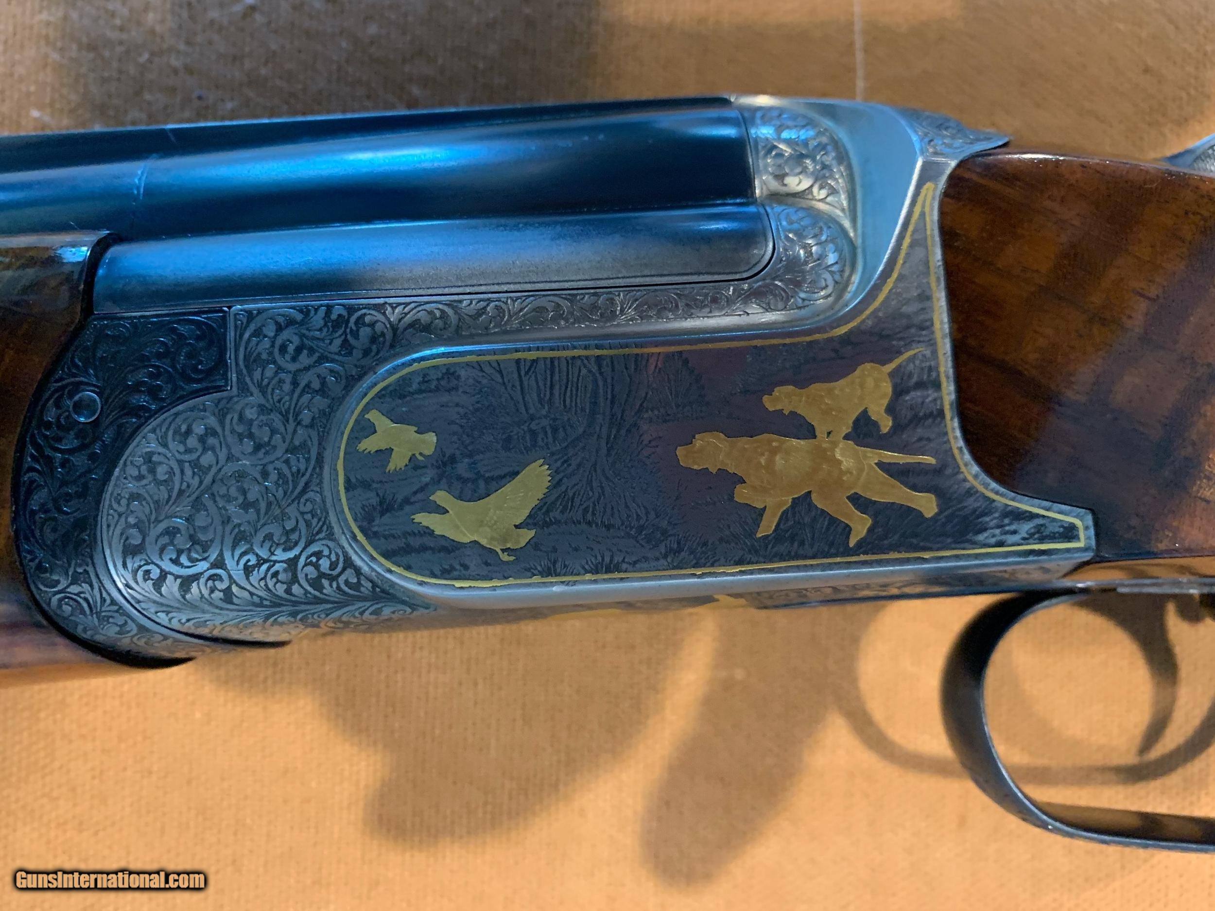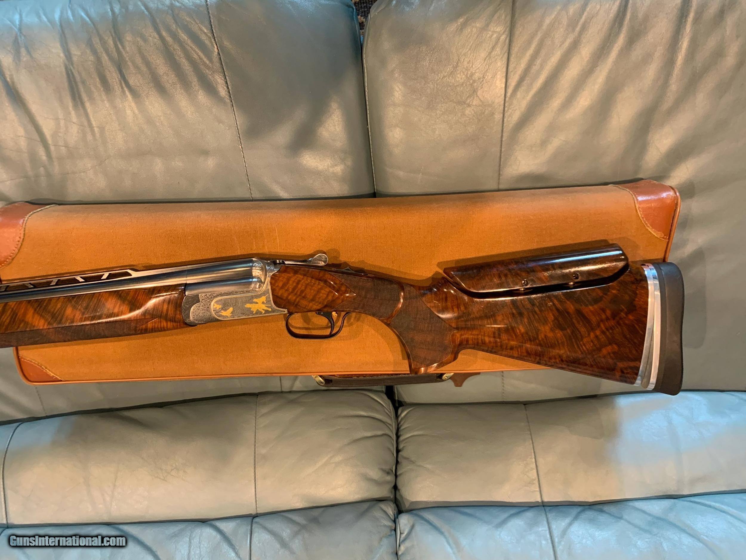 Description: Perazzi MX 8 SCO Gold, engraved by Positti; 29 1/2" barrel -ported & back bored with Kolar skeet tubes 20, 28 & .410. 1-20 ga. briley tube replaced 1-20 ga. Kolar tube. Perazzi 12 ga. screw in chokes (5): (S-1 .720, S-1 .720. S-1 .715, IMP Cyl, Mod. .705 ,& Full .690) with choke tool. Custom Turkish Exhibition Stock (Adjustable comb and butt plate) right hand palm swell. Two removable adjustable triggers and 1 extra perazzi spring/firing pin set and Kolar weight equalizer. Fitted Americase for shotgun and skeet tubes. Gun is in excellent condition with one slight forend crack (epoxied by stock refinisher) almost unnoticeable and 1 small scratch on underside of pistol grip (See Photos) SOLD Shotgun Gauge: 12 Gauge Manufacturer: Perazzi Model: MX8 SCO Gold Serial Number: Pxxxx59 Barrel Length: 29 1/2 Condition: Excellent Metal Condition: Excellent/VG Wood Condition: Excellent/ VG Bore Condition: Excellent Action: O/U Stock Drop: adjustable Stock Comb: adjustable Stock Heel: adjustable Rib: vent |