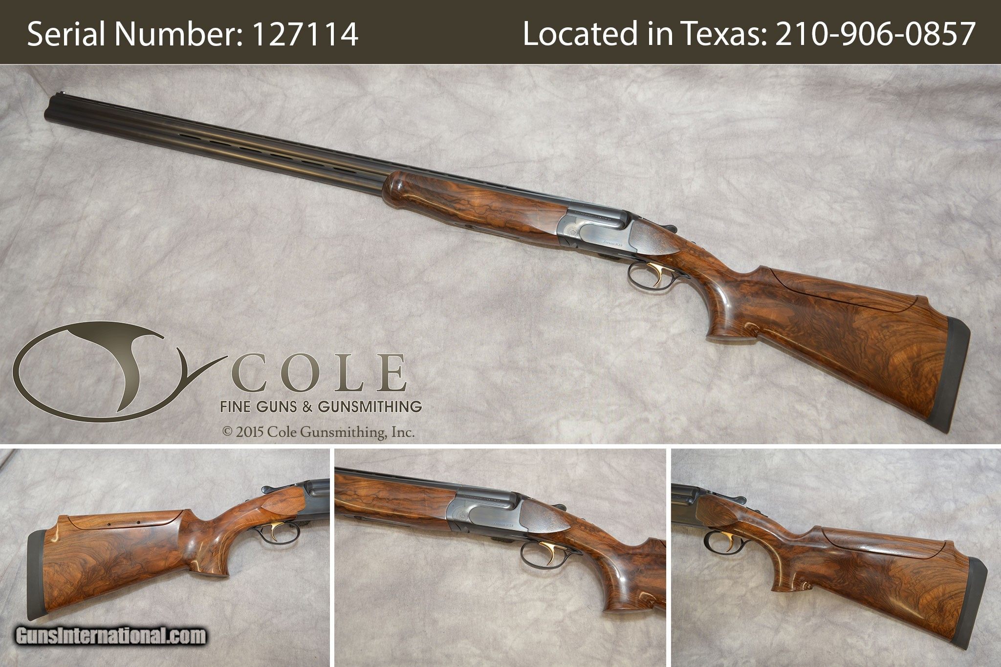 Description: Perazzi MX 8 Offering a Perazzi MX 8 12 Gauge shotgun Serial # 127114 in excellent condition. This Perazzi is equipped with 34-inch barrels factory fix choked Full and Full. The rib is tapered and finishes with white bead. The gun also has a right-handed butt stock that has an adjustable comb. The wood set is not checkered. Previous owner selected this much higher-grade wood set but enjoyed the grain too much to allow his stock maker checker it. It has a few handling marks from safe storage. This gun is in extremely good condition with very few rounds put through it. Purchased some time back before the owner became an extremely busy father and businessman. The triggers are removable and they also reflect minimal use. The same condition is evident on the shotguns breech face, there is virtually no wear. Butt stock measures 14 ¾ inches LOP. Drop at comb is as stated adjustable via the comb. The gun weighs 9 lbs. Our newest Cole Fine Gun and Gunsmithing location is now open in San Antonio Texas at the National Shooting Center (NSC), 5931 Roft Rd. We are located on Vendors row Unit 31. Our hours are Wednesday through Saturday 9:30 to 5:30. If your schedule should prohibit you from coming in during our posted hours, please allow us to make ourselves available other days and times by appointment. Do not hesitate to call Tobias at 210-906-0857 if you require an alternative time to view our inventory. Three day non firing inspection period as to condition. All firearms will be sold and transferred in compliance with all state and federal regulations via BATF Form 4473. Firearms sold via themay only be shipped to licensed FFL for transfer via BATF Form 4473. SOLD Manufacturer: Perazzi Model: MX8 Serial Number: 12714 Bore: 12 Chambers: 2 3/4 inch Ejectors: Automatic Condition: Excellent Metal Condition: 99% Wood Condition: 98% Bore Condition: Excellent Barrels: 34 Inches Barrel Type: Steel Action: Over Under Triggers: Single Mechanical Gauge Info: 12 LOP: 14 3/4 Rib: Vent Tapered Weight: 9lbs Chokes: Factory Full and Full Item Location: Texas |