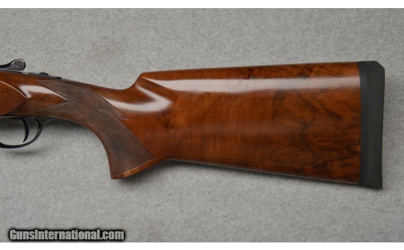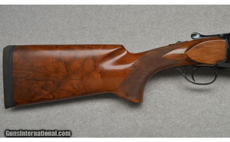Description: Perazzi MX12 chambered in 12 gauge with a metal case and several sets of Briley extended chokes. SOLD Caliber Info: 12 Ga Metal Condition: Excellent Wood Condition: Very good with light handling marks Bore Condition: Bright Barrels: 29.5 Triggers: Single select trigger Stock: Checkered walnut Stock Dimensions: 14.25" LOP 2" DAH 1.5" DAC Fore End: Checkered walnut Butt Pad: Rubber recoil pad Weight: 8lbs 1oz Sights: Two bead Chokes: Cylinder x2 Extras: Metal takedown case with several sets of Briley extended chokes. Item Location: Fort Worth, TX |