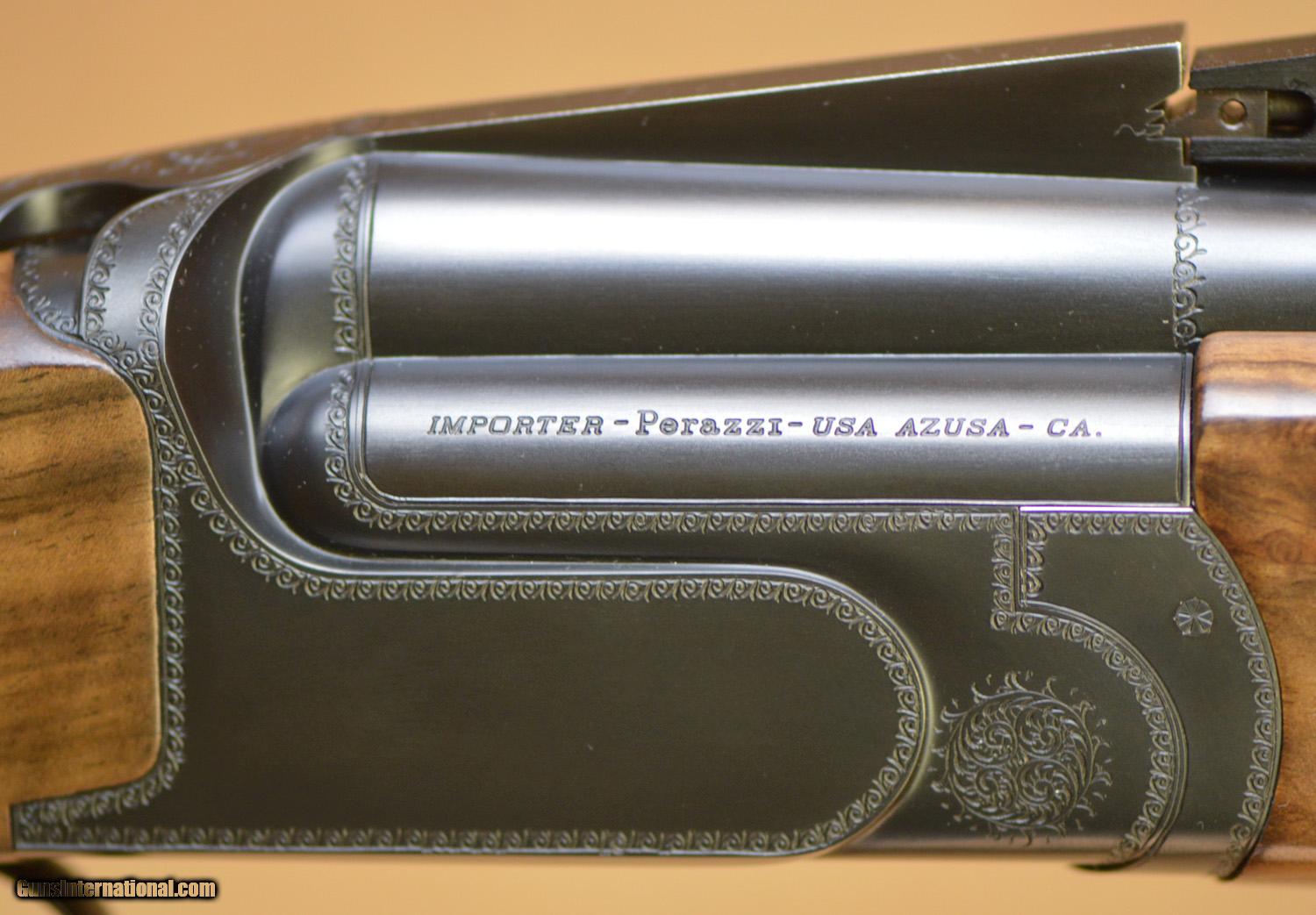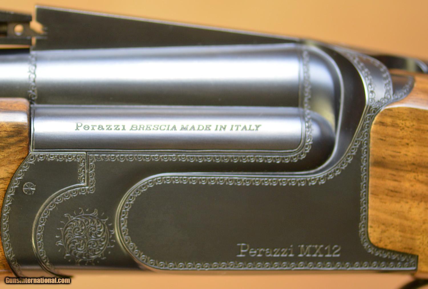 Description: New Perazzi MX12/3C with 31 1/2" factory 3-pos. adj. rib barrels, factory removable choke tubes. Features blued action with border engraving, fixed coil-spring trigger with selector. Upgraded factory SC2 wood with factory adj. comb, right-hand palmswell and English sporting forearm. Includes factory case, chokes and tools. THIS GUN IS FEATURED AT OUR NEW MICHIGAN LOCATION (Toll-Free: 1-888-472-0056) SOLD |