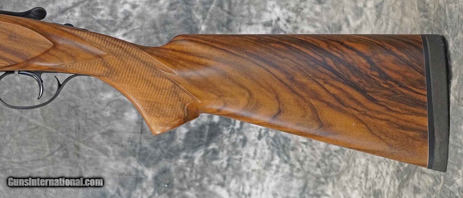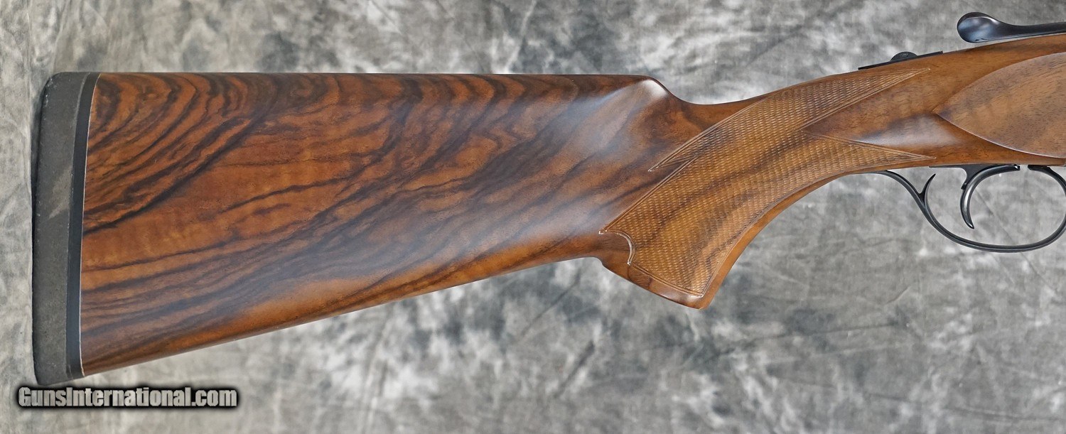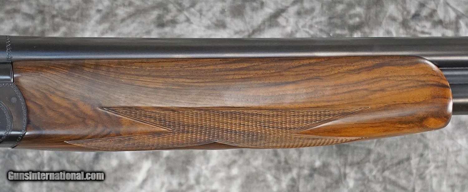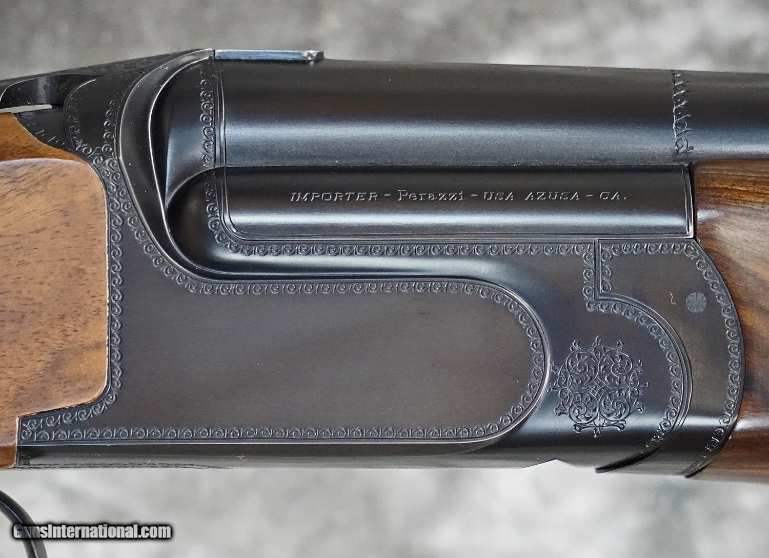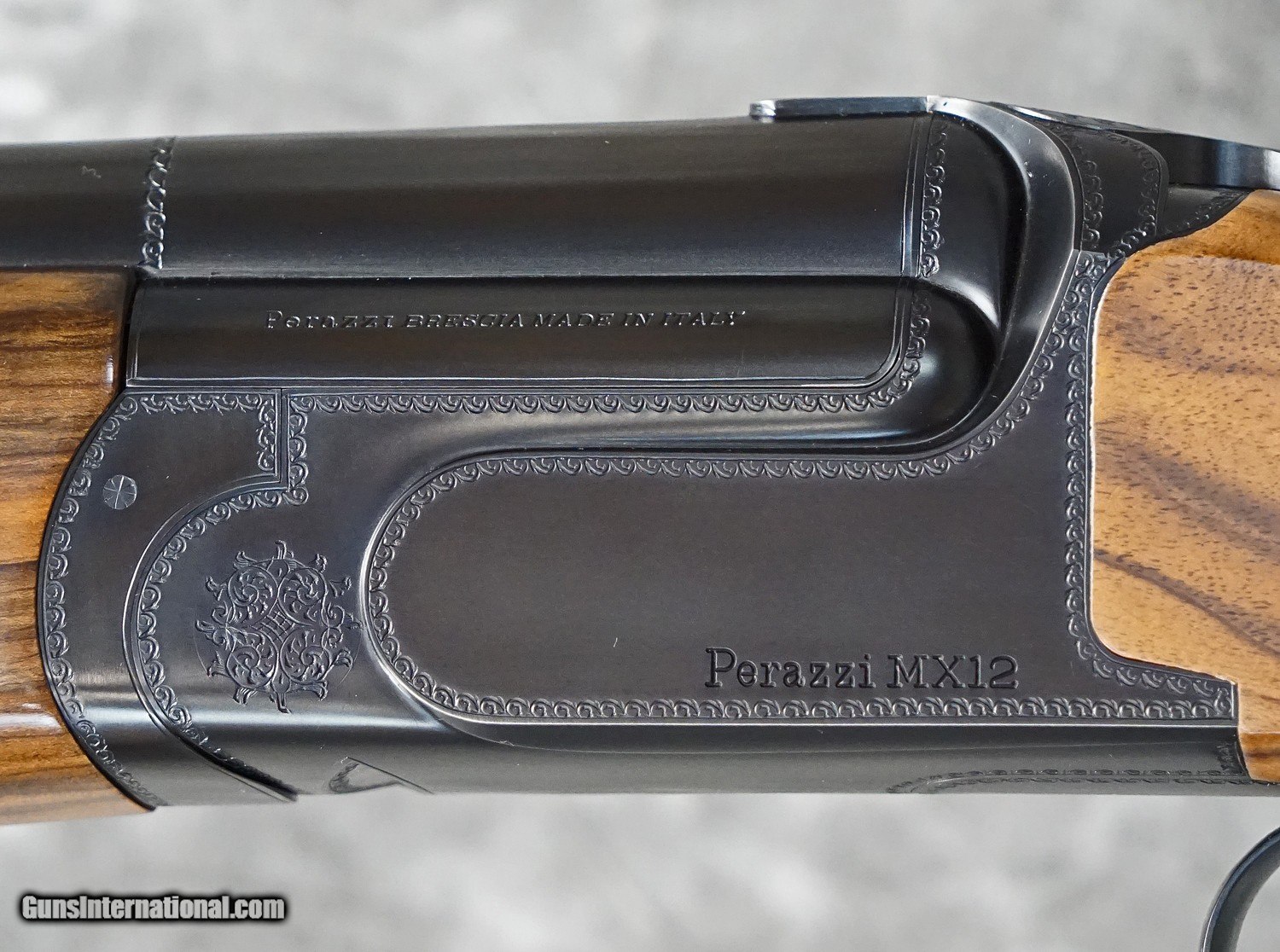 Description: Pre-Owned Perazzi MX12 Ribless Game 12GA with 30" fixed choke (.012/.020) steel proofed barrels, no top-rib for ultra-light barrels with solid-side ribs. Blued action with fixed, coil spring selective trigger and fully hand engraved borders. Very minor bluing wear, overall 98%+ of factory finish. Factory Purdey style pistol grip game stock with factory recoil pad, game forearm. Includes factory case, tools. SOLD Shotgun Gauge: 12 Gauge |