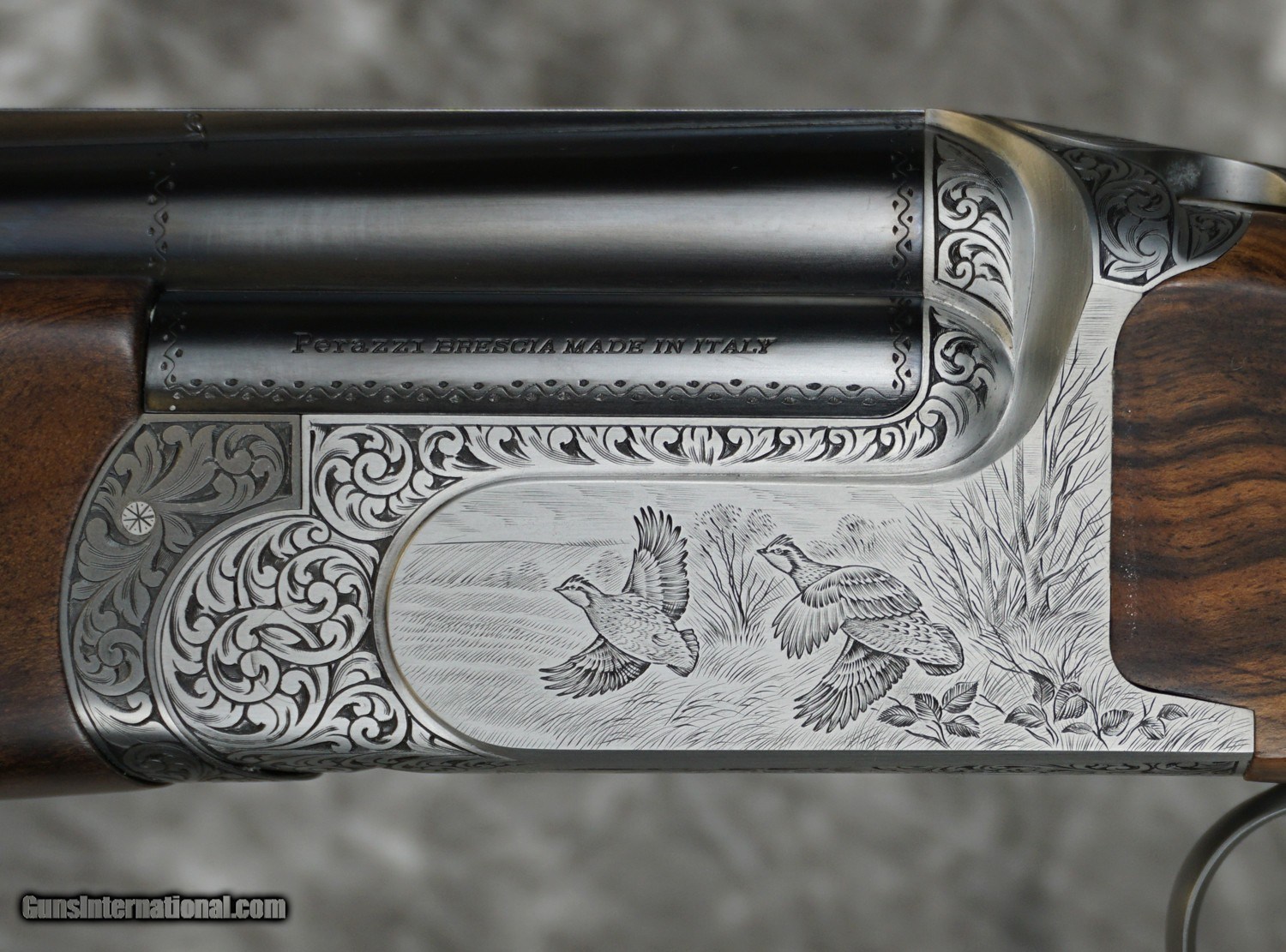 Description: New Perazzi MX12 SC3 Game 12GA SC3 Game 12GA with 29 1/2" fixed choke (.016/.024) barrels, steel proofed with 7x7 parallel game rib and solid side-ribs. Coin finished action featuring fully hand-engraved scrolls and game scenes by Giovanelli with pierced top-lever, gold inlaid quail on forearm; fixed coil spring selective trigger. Highly figured Purdey style pistol grip game stock with game forearm. Includes leather trimmed case, tools. Call 626-633-1002 for pricing. SOLD Shotgun Gauge: 12 Gauge |