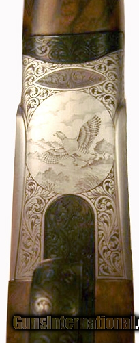 Description: PERAZZI MX12-SC3 PIGEON/SPORTING 12GA,32"(81CM),M/IM, 11 X 7 VENT RIB, VENT SIDE RIB, 18.4 CHAMBER, 1.620KG, TOP SELECTIVE BARREL, COIL SPRINGS, SPORTING FOREARM, PISTOL GRIP, FULLY ENGRAVED AND SIGNED WITH SCROLL ENGRAVING, A DUCK IN FLIGHT WITH FIELD BACKGROUND ON ONE SIDE, A GROUSE IN FLIGHT WITH FIELD BACKGROUND ON THE OTHER SIDE, A GROUSE IN FLIGHT WITH FIELD BACKGROUND ON THE BOTTOM, 1 3/8" X 21/8" X 15", GORGEOUS WOOD, SLIGHT RIGHT HAND CAST, SPECIAL CUSTOM ORDER, NEW, NEVER FIRED. RETAIL: $19000.00 SOLD |