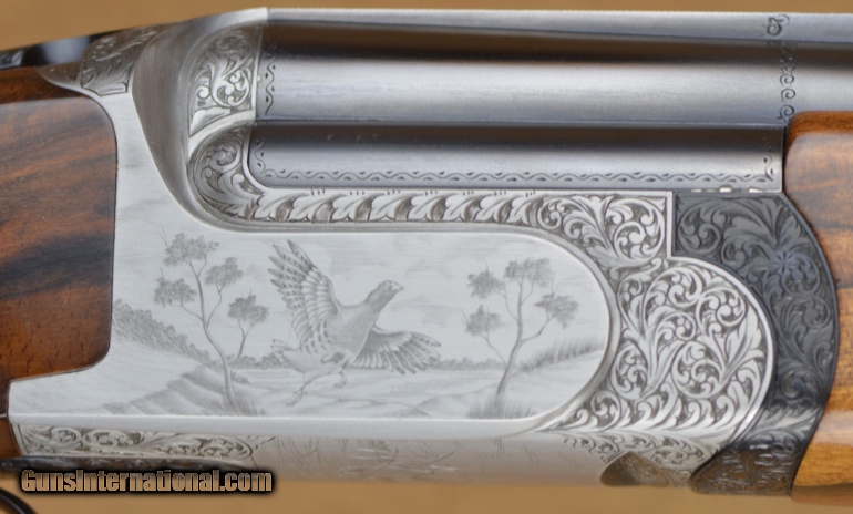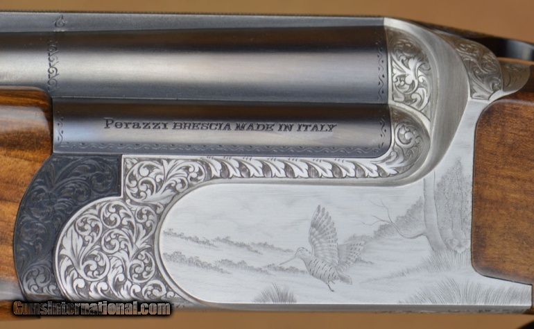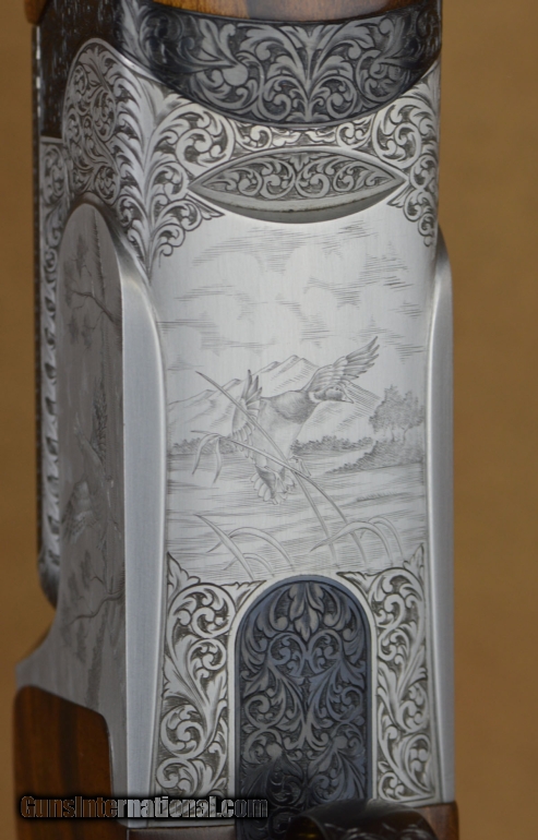 Description: Perazzi MX12 SC3 Sporting 12GA with 30" barrels, 11x7 tapered tramline rib and Briley thinwall flush choke tubes. Coin finished receiver with game scenes and scrolls by Creative Art. Outstanding pistol grip stock with English sporting forearm. Includes factory case, chokes. Please refer to 813-U1. SOLD |