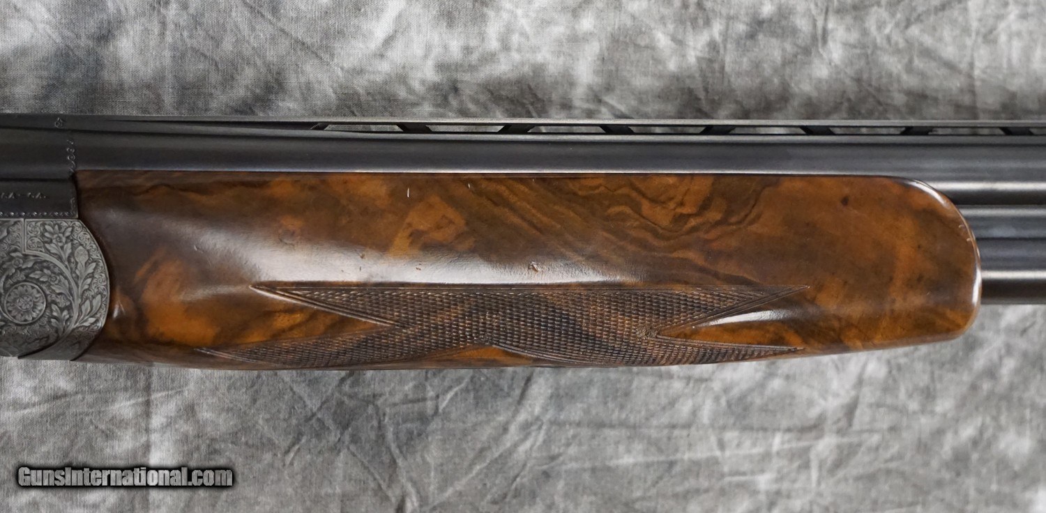 Description: Pre-Owned Perazzi MX12 SCO Sporting 12GA with 29 1/2″ fixed choke (.016/.028) barrels (Barrels are Replacement and Not Original To Action But Have Been Re-Numbered), 11×7 tapered checkered rib, ventilated side-ribs. Coin finished action featuring fine English scrolls, ribbons and florals by the Italian Master Angelo Galeazzi, fixed coil spring selective trigger. Factory pistol grip sporting stock with small left-hand palmswell and slim game style forearm. Handling marks and minor scuffs on stock/forearm. Includes factory case, tools. Consignment, ineligible for trade-ins. SOLD Shotgun Gauge: 12 Gauge |