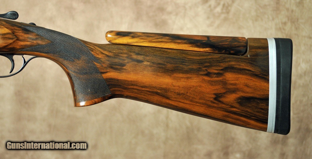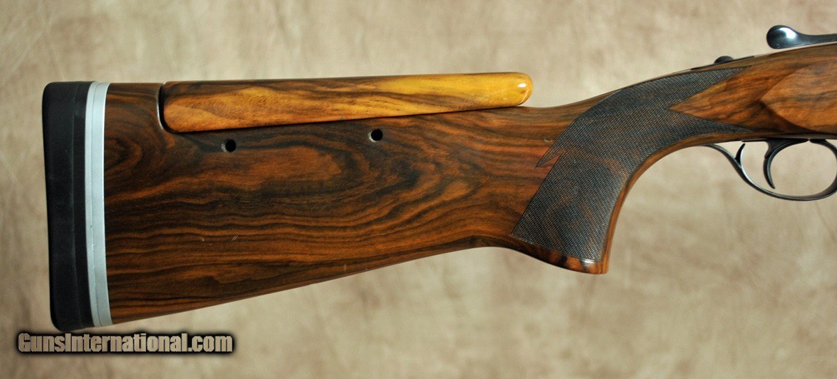 Description: Pre owned in excellent condition Perazzi MX12 sporter 12 gauge. Features nickel receiver, 32″ fixed choke barrels (1.590kc/18.7) with extended Briley thin wall chokes(8). 11 mm x 7 mm flat tapered rib. Sc2 grade sporting stock with adjustable comb and English full checkered fore arm. Factory Americase with cordura cover included. SOLD |
