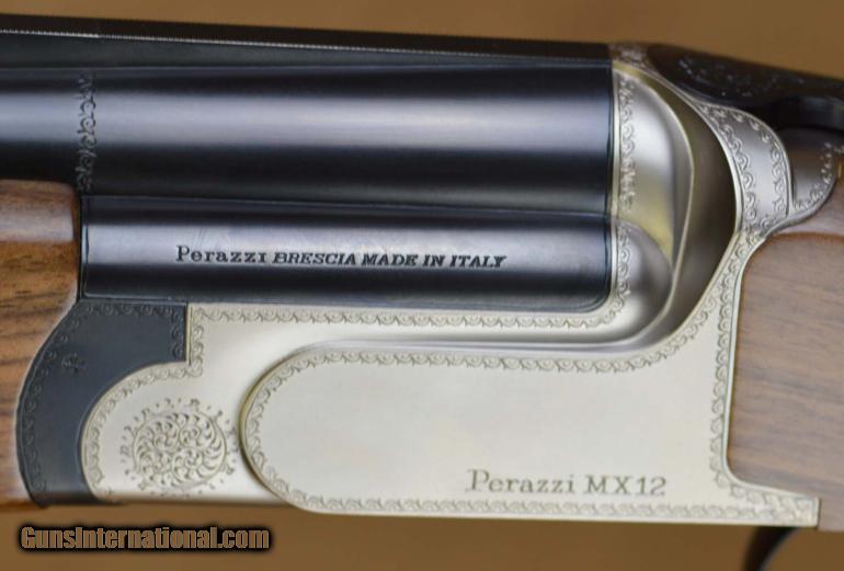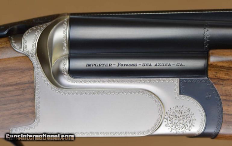 Description: New Perazzi MX12 Sporting 12GA with 32" fixed choke (.016/.024) barrels featuring our new 7x7 4mm ramped rib. This rib allows the shooter more of a heads up position with minimal rib obstruction. Nickel receiver with border engraving. Factory adj. comb stock with Left Hand palmswell and English sporting style forend. Includes factory case, tools. SOLD |