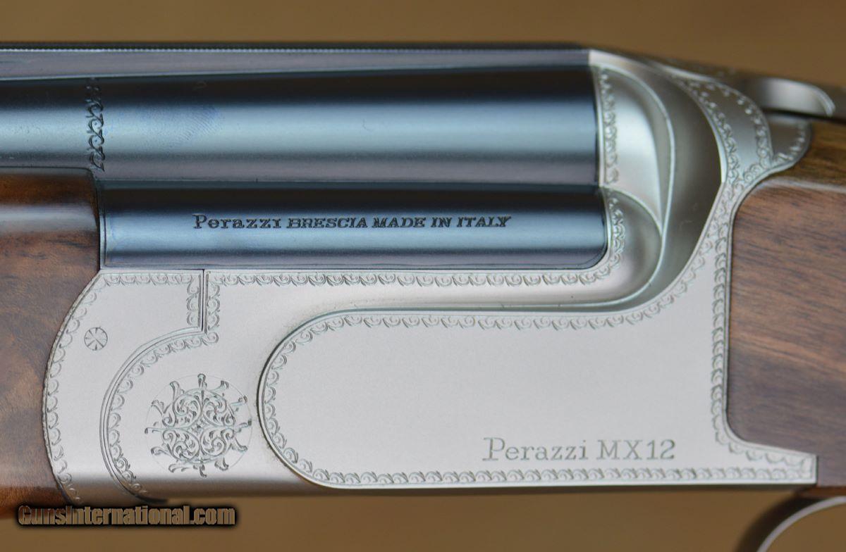 Description: New Perazzi MX12 Sporting 12GA with 34" fixed choke (.016/.024) choked barrels, flat tapered 11x7 tramline rib. Factory Nickel receiver with hand-engraved borders. Factory fixed, selective trigger. Outstanding SC2 upgraded factory pistol grip stock with right-hand palmswell and fully checkered PSA pro forearm. Includes factory case, tools. Call 626-633-1002 for best price! SOLD |