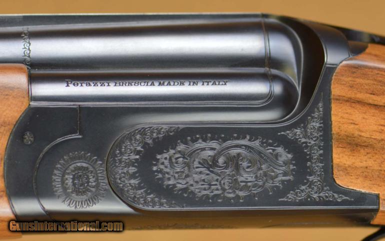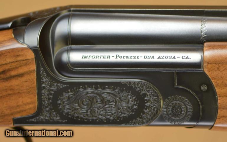 Description: New Perazzi MX12 Sporting 12GA with 33" fixed choke (.020/.028) 2mm Step Ribbed barrels. Blued "Lusso" grade receiver, SC2 factory adj. comb stock with right-hand palmswell & English sporting forend. Includes factory case, tools. SOLD |