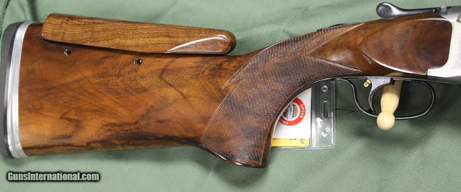 Description: Peraxxi MX14L (Luxury Grade) Right handed, nickel engraved receiver,upgraded wood adjustable stock, This is in great shape and has been shot very little. The lever still being way right just as new. If you like a gun that the barrels have not been altered, this could be the gun for you. * 31 1/2", o/u barrel, Fixed chokes Mod & Full * 34" Unsingle barrel, fixed Full, Fixed rib * 18.4 bore * adjustable comb with LONG posts * adjustable butt plate for cast * LOP 14 3/4" * original booklet * adjustable trigger * Hard Case for travel * Parts kit included This Perazzi is about 9.5 pounds with the OU on it. For an extra cost, an extra highly engraved trigger can be added. SOLD Shotgun Gauge: 12 Gauge Manufacturer: Perazzi Model: mx14L |