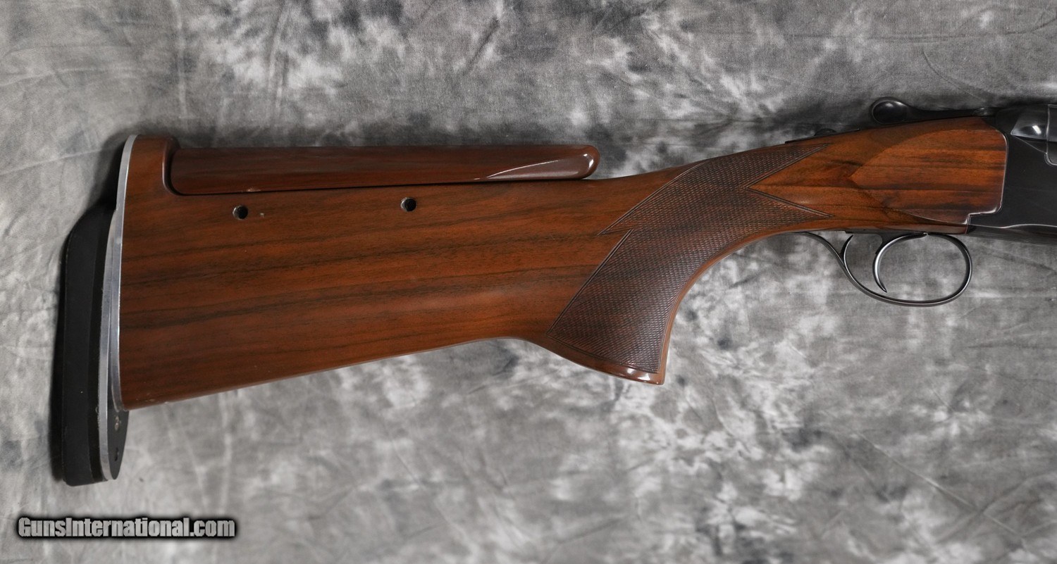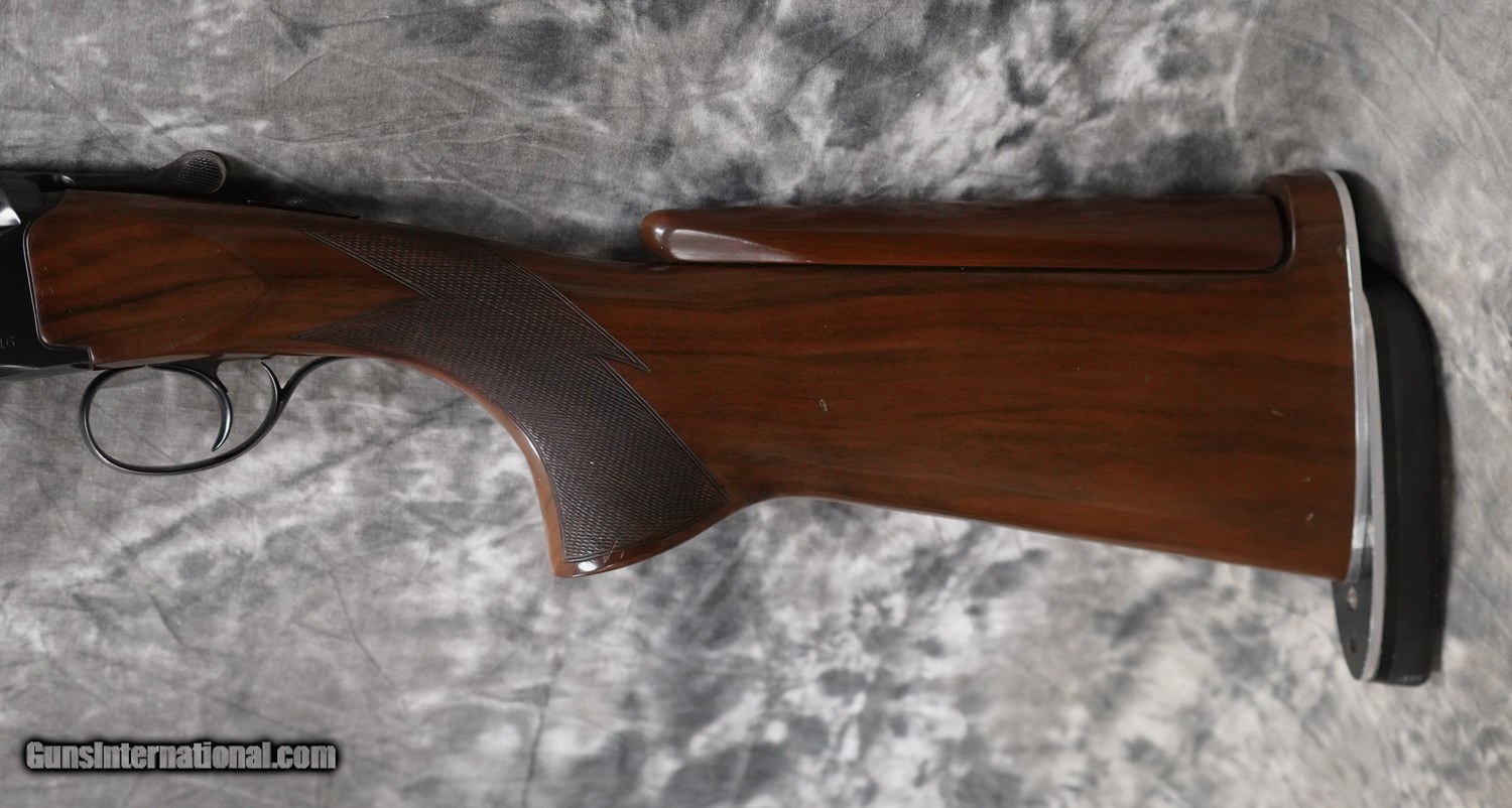 Description: Pre-Owned Perazzi MX16 Sporting 12GA with 29 1/2" factory choke tubed barrels (factory chokes have been replaced with Seminole chokes), ported by Seminole-no side ribs with 11x7 flat tapered top rib (barrels are original to action). Blued, flat-sided action with fixed coil spring selective trigger, minor bluing wear on edges of action, trigger guard and forearm iron. Factory adj. comb sporting stock with no palmswell, Jones style adjustable butt plate and beavertail forearm. Minor handling marks and scuffs on stock/forearm. Includes case, additional chokes. SOLD Shotgun Gauge: 12 Gauge |