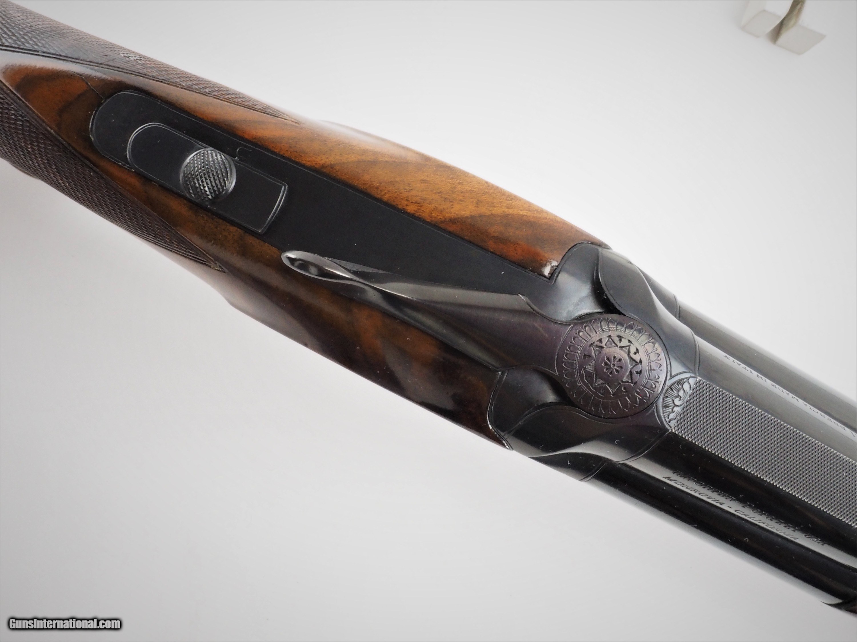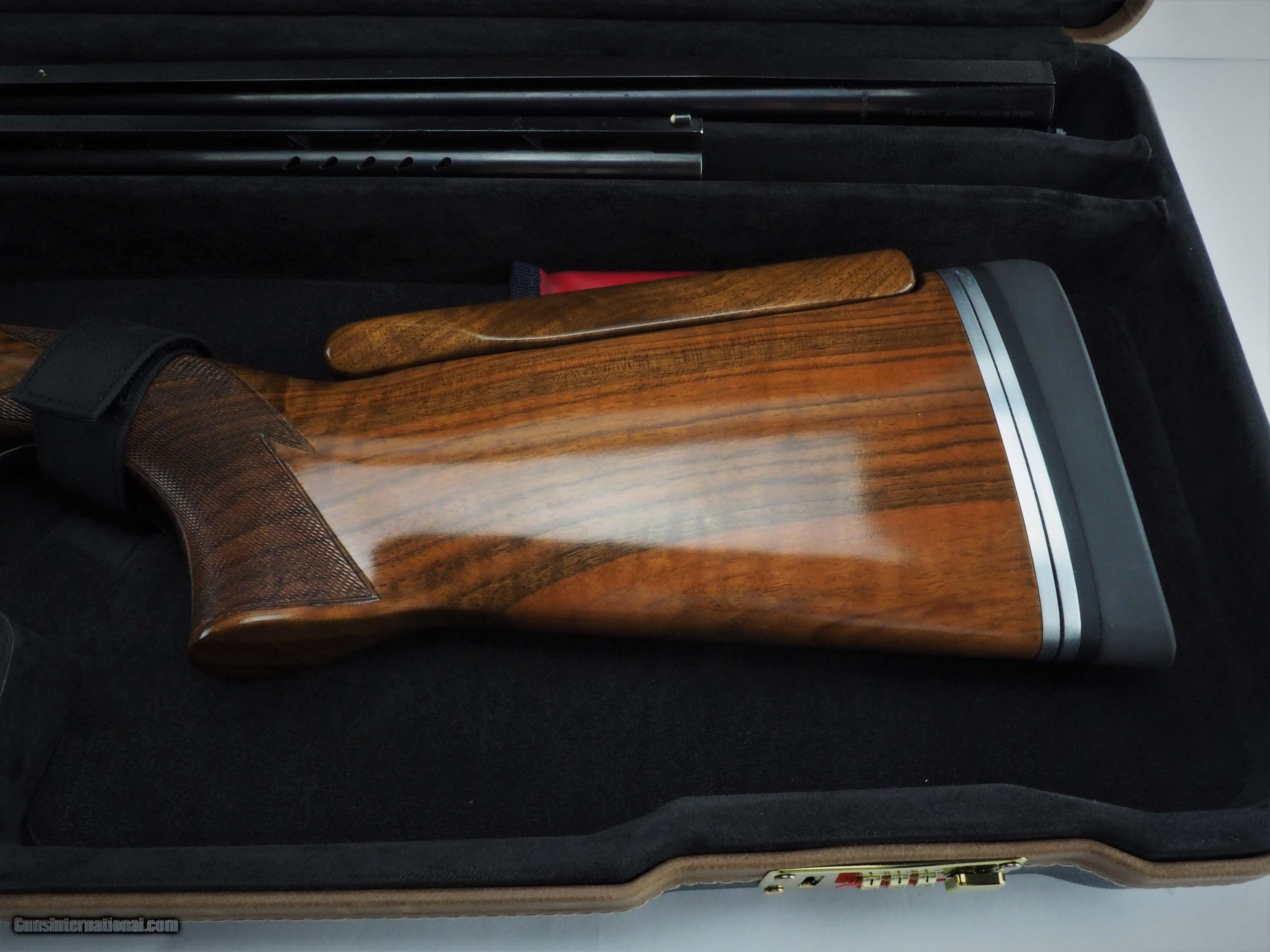 Description: Perazzi factory MX16 combo. Serial numbers match on receiver, iron, and both barrels. Trigger is non-dropout and uses factory Perazzi leaf springs to power the hammers. The gun is mechanically perfect, with a brand new locking block fitted for maximal contact with both barrels. The stock is freshly refinished with a lacquer finish while the receiver and associated componets have been freshly polished and reblued. The gun has NOT been fired since then. Comes complete in a brand new, leather-trimmed Negrini 1653LX combo case. Make: Perazzi Model: MX16 Combo Hand: RH Gauge: 12ga LOP: 14 1/8" DAC: 1.61" (41mm) DAMC: 1.65" (42mm) DAH: 2.16" (55mm) Comb: Adjustable Accessories: Factory parts kit with specialty leaf spring tool, stock wrench, comb wrench, brand new Negrini 1653LX, chokes, choke case Single barrel length: 33 7/8” (86cm) O/U barrel length: 29 1/2” Single barrel weight: 1586g O/U weight: 1536g Single choke: .036” (fixed) O/U choke: S1 Thinwalls/both (IC, LM, M, IM, F) Single bore dia: .742” O/U bore dia: .725”/top - .724”/bottom SOLD |