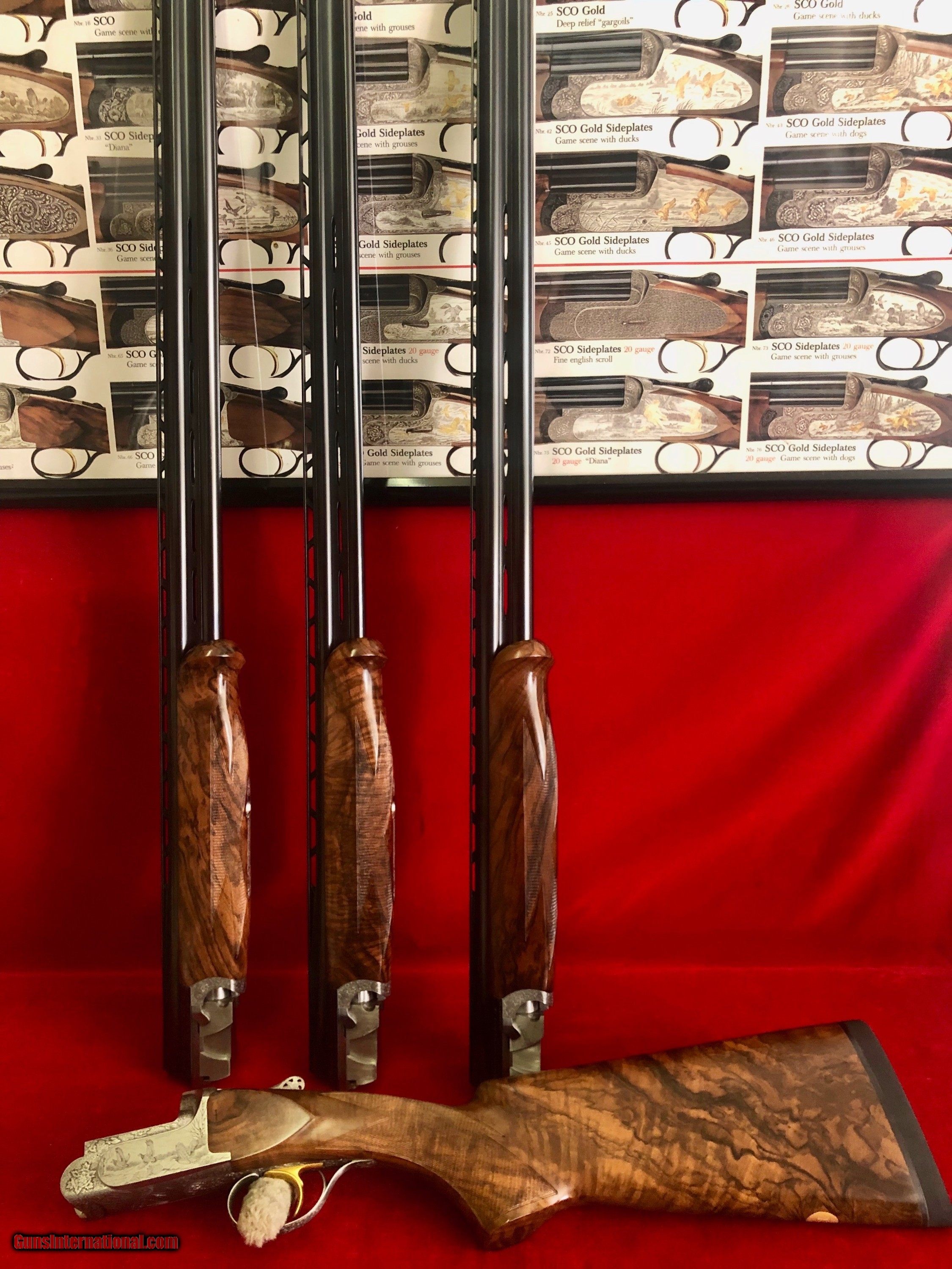 Description: Perazzi MX20 SCO Grade all serial numbers matching 146XXX. This gun is BRAND NEW and UNFIRED. Engraved and signed by Galeazzi. Barrel selector on top tang. All barrels are true 32 inch. Set includes 20 gauge, 28 gauge and .410 gauge. Each individual barrel comes with its own matching forearm and forearm iron. 20 gauge barrel specs: True 32 inch tapered tramline rib 1.440kg with 15.9 bore Bottom barrel fixed .015 Top barrel fixed .018 28 gauge barrel specs: True 32 inch tapered tramline rib 1.500kg with 13.9 bore Bottom barrel fixed .008 Top barrel fixed .013 .410 gauge barrel specs: True 32 inch tapered tramline rib 1.500kg with 10.4 bore Bottom barrel fixed .008 Top barrel fixed .011 Gorgeous SCO Turkish walnut stock dimensions: 1.34 in x 1.89 in Length of pull 15 inches Small right hand palm swell This gun would be over $50k if ordered today along with waiting a very long time. Gun comes complete with Perazzi case, tools and books. Brand new and unfired SOLD |
