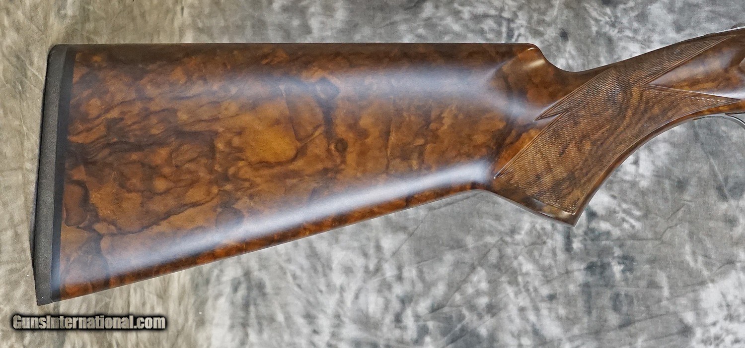 Description: New Perazzi MX20 SCO Sideplate Game Combo 20GA with 30" fixed choke (.012/.020), steel proofed barrels with 7x7 parallel game rib and solid side-ribs, additional 28GA 30" barrel with fixed (.012/.020) chokes and 7x7 game rib. Coin finished action with No. 335 Acanthus scrolls, highly figured and deeply engraved by the Italian Master Engraver Zacchi, pierced top-lever. Factory Purdey style pistol grip game stock with slim game forearm, gold inlaid quail in forearm with high figure, contrast and color. Includes full leather case, tools. Call 626-633-1002 for pricing. SOLD Shotgun Gauge: 20 Gauge, 28 Gauge |