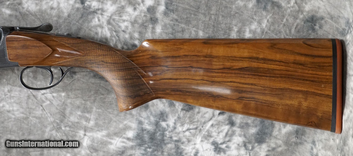 Description: Pre-Owned Perazzi MX20 Sporting/Field 20GA with 30 3/4" fixed choke (IC/M) barrels, 10x7 flat tapered checkered rib with solid side ribs, additional 28GA 30 3/4" fixed choke (IC/M) barrels with solid side ribs and 10x7 flat tapered rib. Blued action with hand-engraved borders, fixed coil spring triggers with selector. Factory left-hand pistol grip stock with left-hand palmswell and beavertail forearm. Minor handling marks, minor finish wear. Used, but well cared for and maintained. Includes factory case, tools. Consignment, ineligible for trade-ins. SOLD Shotgun Gauge: 20 Gauge, 28 Gauge |
