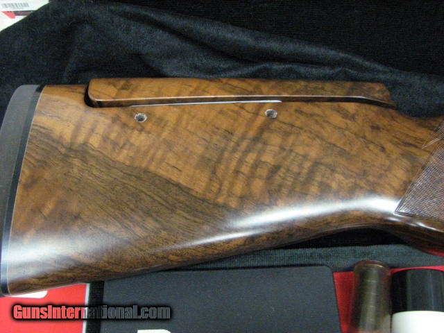 Description: SALE PENDING....SALE PENDING..... Perazzi MX2000/3 sporter with 31.5" barrels with factory extended chokes. 3 position adjustable rib. Adjustable comb stock. Approx. 14 7/8" LOP. Right hand palm swell and small amount of cast off stock in sporter configuration for right hand shooter. Factory pad. Moderately nice wood. Few small scratches on back of the stock. No scrates on metal anywhere. Trigger is removeable and selectable. Factory chokes are two 0 (CYL), one 2 (.008), one 4 (.016), one 6 (.024), one 8 (.032), and one 10 (.040). Comes in factory Perazzi case with manual, snap caps, extra leaf spring trigger parts, extra spacers for adj comb and adj comb wrench. Bore is 18.7mm (.736) and barrel is stamped 1.70kg and actual weight on a digital scale is 1.69kg. Total gun weight is 8 lbs 12 oz. Gun balances about 1/4 to 3/8" forward of the trunions. No modifications have been done to the gun. Approx. 8-10K rounds have been fired through the gun. Gun is very tight. I attempted to capture pics of the stock scratches as best as I could. Forend has no scratches. SOLD |