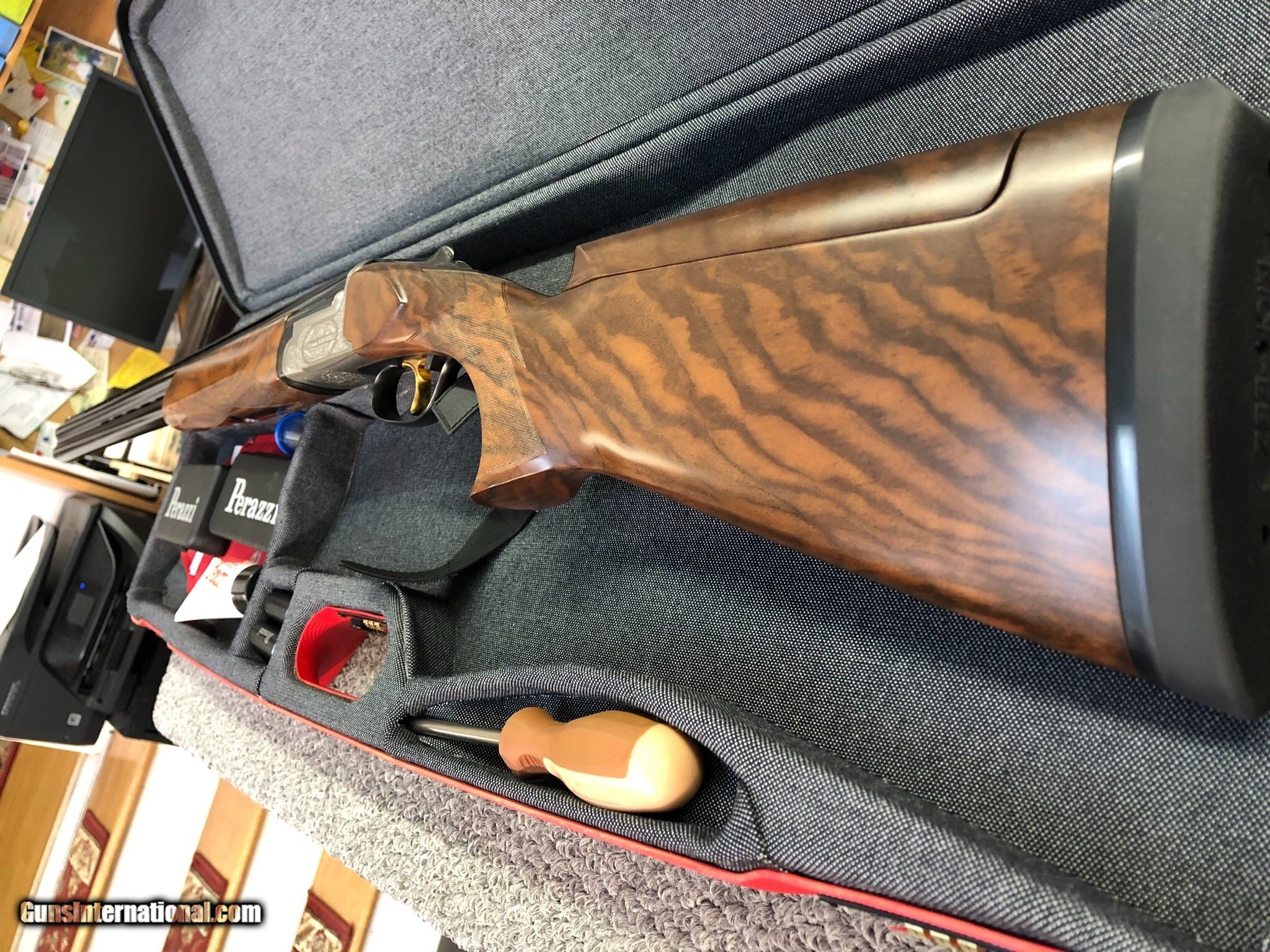 Description: If you’re in the market for a like new Perazzi Sporter—look no further. This gun is ANIC and recently made. Serial # 15732X. It’s got 31 1/2 inch barrels with 7 flush choke tubes. The receiver is upgraded nickel with a detachable selective trigger. The stock is also upgraded and has a factory adjustable comb. The pad was changed to a softer Kickeze and the LOP is 14 3/4 inches. With the adjustable comb all the way down, the dimensions are 1 1/2 front, 2 1/8 rear. DAH is 2 1/4 inches. Cast off is 1/4 heel and 3/8 toe. Right hand palm swell. The gun weighs 8lbs 10oz. Less then 1 flat of shells through it. Comes in the factory case with parts kit and all factory paperwork. Check out the MSRP and the selling prices and you can save considerable money purchasing this gun—and I’ll pay shipping and insurance to the lower 48. Sure to please. SOLD |