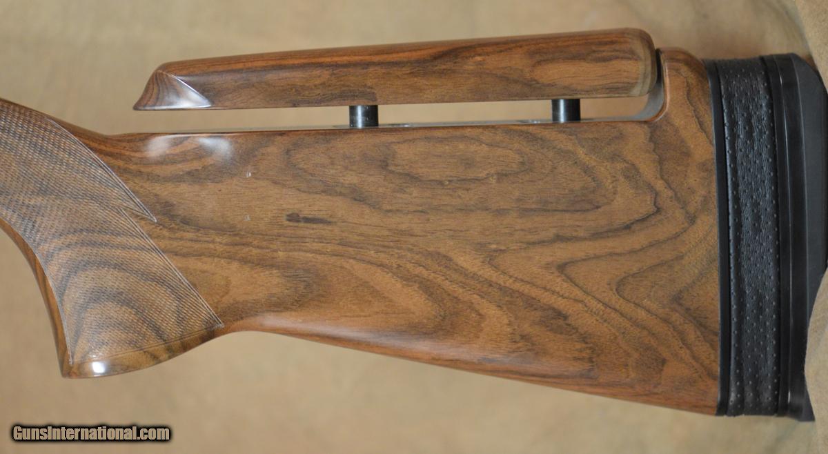 Description: Perazzi MX2000/8C Sporting 12GA with true 32" factory choke tubed barrels. 11x7 flat tapered tramline rib. Factory selective removable trigger group. Nickel "MX2000" engraved action. Factory adj. comb stock with ISIS recoil reducer installed, fully checkered English sporting forearm. Minor handling marks in wood, shows other minor signs of use. Back of adj. comb has been re-contoured. Includes factory case, chokes & tools. SOLD |