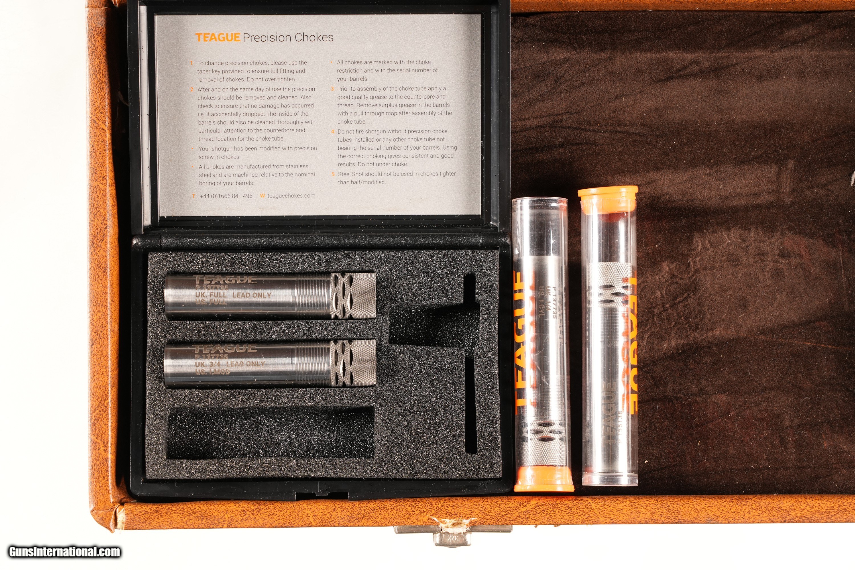 Description: 12 GA Serial # 137735 Perazzi MX 2000 12 Ga over under with 28" tapered vent rib Bbl with Teague extended interchangeable chokes (6 included ) 2 3/4" chamber with single trigger and ejectors. Quick detachable trigger group, Gold accented fine scroll engraved blue finished receiver by Master Bottega Giovanelli. Varnished checkered pistol grip walnut stocks with factory pad. Mfd 2006 14 1/2" LOP 1 5/8" DAC 2 1/4"DAH Cast off 5mm 8 lbs 3 oz. Comes in luggage case with additional chokes. Condition, Very fine with 99% blue finish. Stocks are very fine with some light handling marks. Mechancailly excellent Barrel 28 Modern • Free Shipping, No Credit Card Fees. • Lay-a-way available for this firearm. • 1/3 Down, a 1/3 in 30 Days 1/3 in 60 Days. SOLD Manufacturer: Perazzi Model: MX2000 Serial Number: 137735 Barrel Length: 28 |