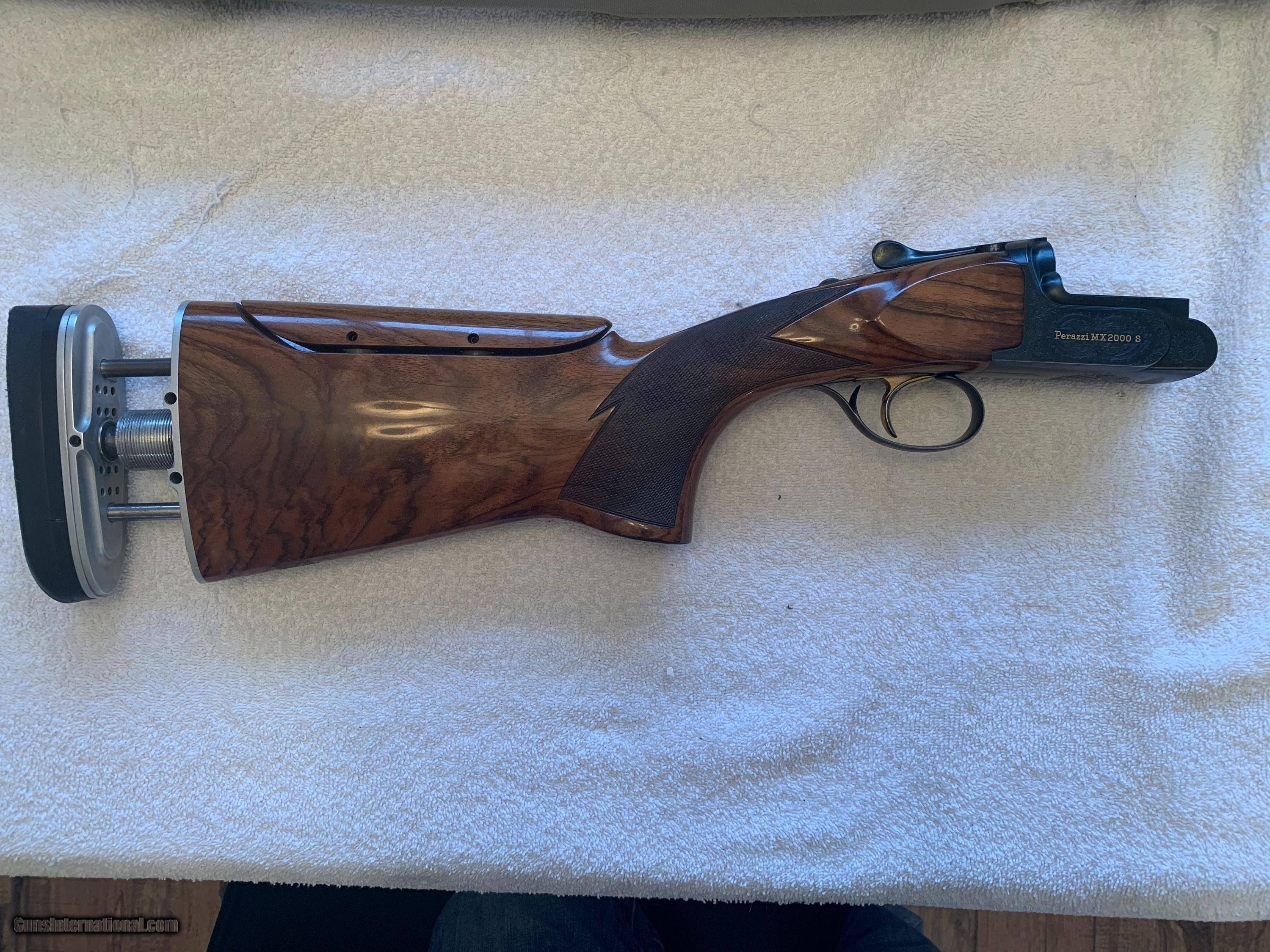 Description: Perazzi MX2000/S 12 Gauge O/U with left hand stock Gracoil recoil system w/ adjustable LOP (14.5-15") and adjustable recoil pad Graco adjustable comb Small palm swell Upgraded wood 29.5" barrels Tapered rib 18.7 bores 1.500 kg barrels 8 1" extended chokes (.002,.005, .007, .010, .012, .015, .018, .030) 2 flush chokes (IMod, Full) Fixed coil spring triggers Good mechanical condition No major cosmetic flaws More pictures on request Manufactured in 2005 Buyer pays shipping SOLD Shotgun Gauge: 12 Gauge Manufacturer: Perazzi Model: MX2000/S |