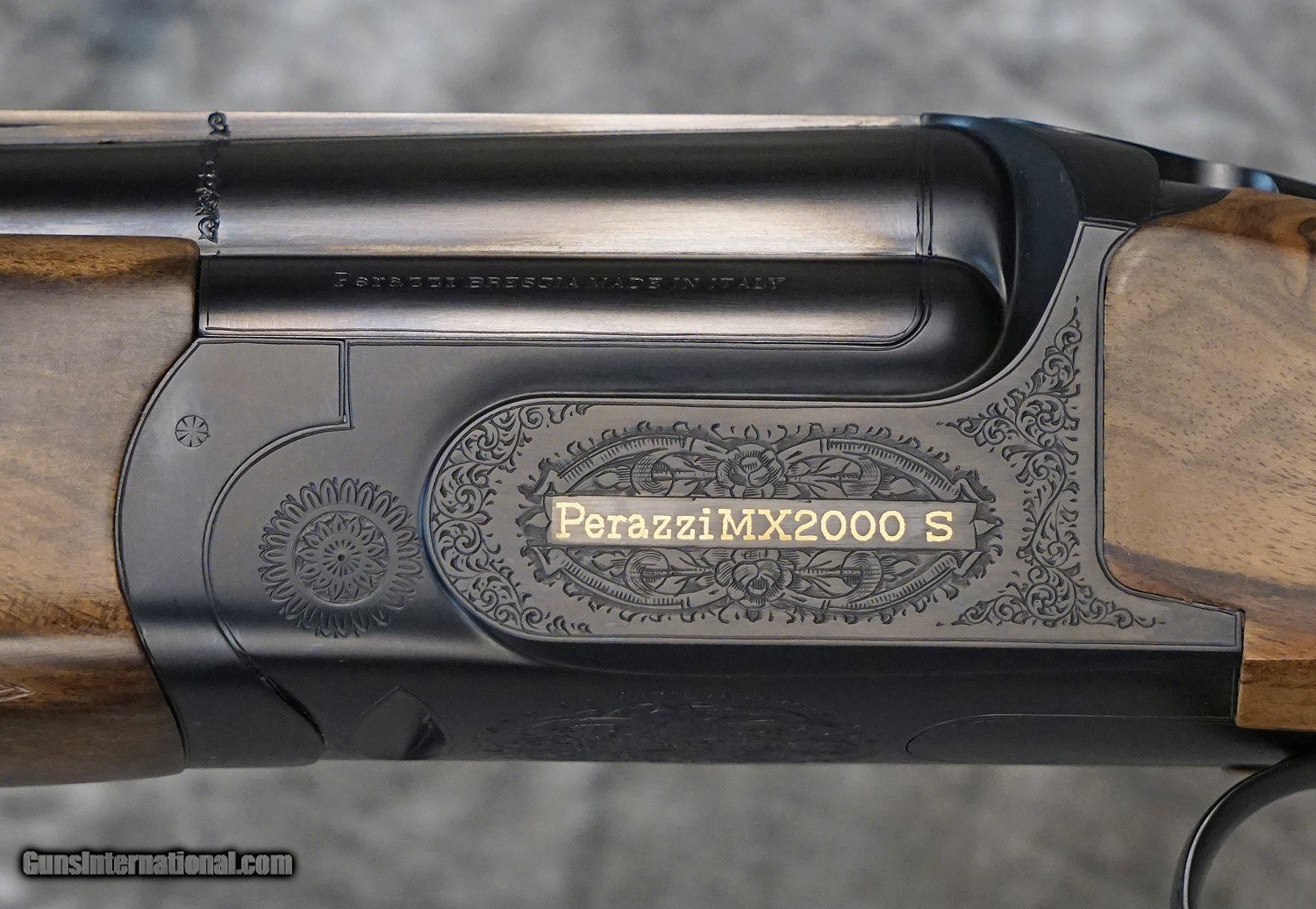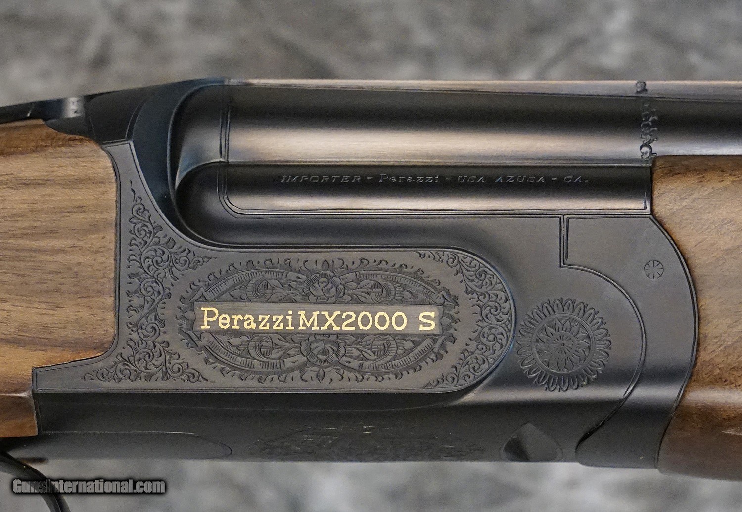 Description: New Perazzi MX2000 S Sporting 12GA with 34" fixed choke (.024/.024) barrels, 7x7 checkered parallel rib (1.600kg barrel weight). Factory blued action with hand engraved "MX2000" pattern featuring scrolls, gold inlay by Terri. Fixed, coil spring selective trigger. Factory SC2 grade adj. comb sporting stock with right-hand palmswell and English sporting forearm. Includes factory case, tools. Call 626-633-1002 for pricing. SOLD Shotgun Gauge: 12 Gauge |