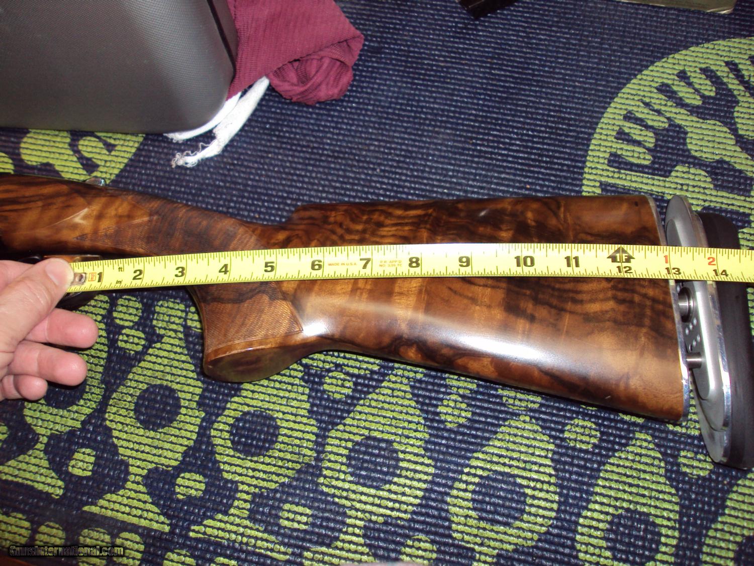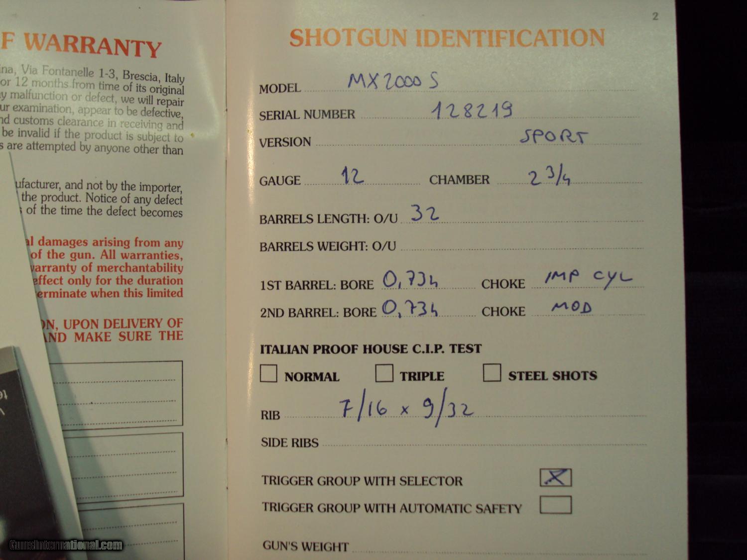 Description: Beautiful Perazzi MX2000 S with fantastic wood, 32" barrels, better coil springs, Briley light chokes (SK, SK, IC, M, LM, LF). Handles like a dream and regret having to sell this one. Never a problem, great trigger and gracoil recoil pad. It's a beauty, won't be disappointed. SOLD Manufacturer: Perazzi Model: MX 2000S Caliber Info: 12 ga Bore: 32 inches Chambers: 12 ga Ejectors: Yes Condition: Very good Metal Condition: Very good Wood Condition: Excellent wood Bore Condition: Very Good Barrels: Very Good Barrel Type: O/U 32" 2 3/4" and 3" shells Action: O/U Triggers: Non-removeable Gauge Info: 12 Stock: English or French walnut Stock Dimensions: LOP 14-3/4" from trigger to end of recoil pad (Graco Recoil paid) plus an additional brand new, unused stock. Stock Drop: DAC = 1-1/2" and DAH = 2" Stock Comb: DAC = 1-1/2 Stock Heel: DAH = 2 Stock Cast: slight cast off (righ handed gun) Fore End: Traditional Butt Pad: Gracoil Recoil system LOP: 14- 3/4" on gun and new stock 15" unused only on gun once Rib: sporting clayes narrower at end - farily thin Finish: oil Weight: 8-9 lbs. Sights: Ivory and center bead Manufacture Date: 2007 or 2008 Chokes: Briely thin walled Engraving: MX 2000S engraving on sides and underneath Extras: Extra stock (unused, brand new but not high figured), Case and all paperwork and grease/buttstock tool. Case: Perazzi original case (nice) Item Location: Cincinnati Ohio |