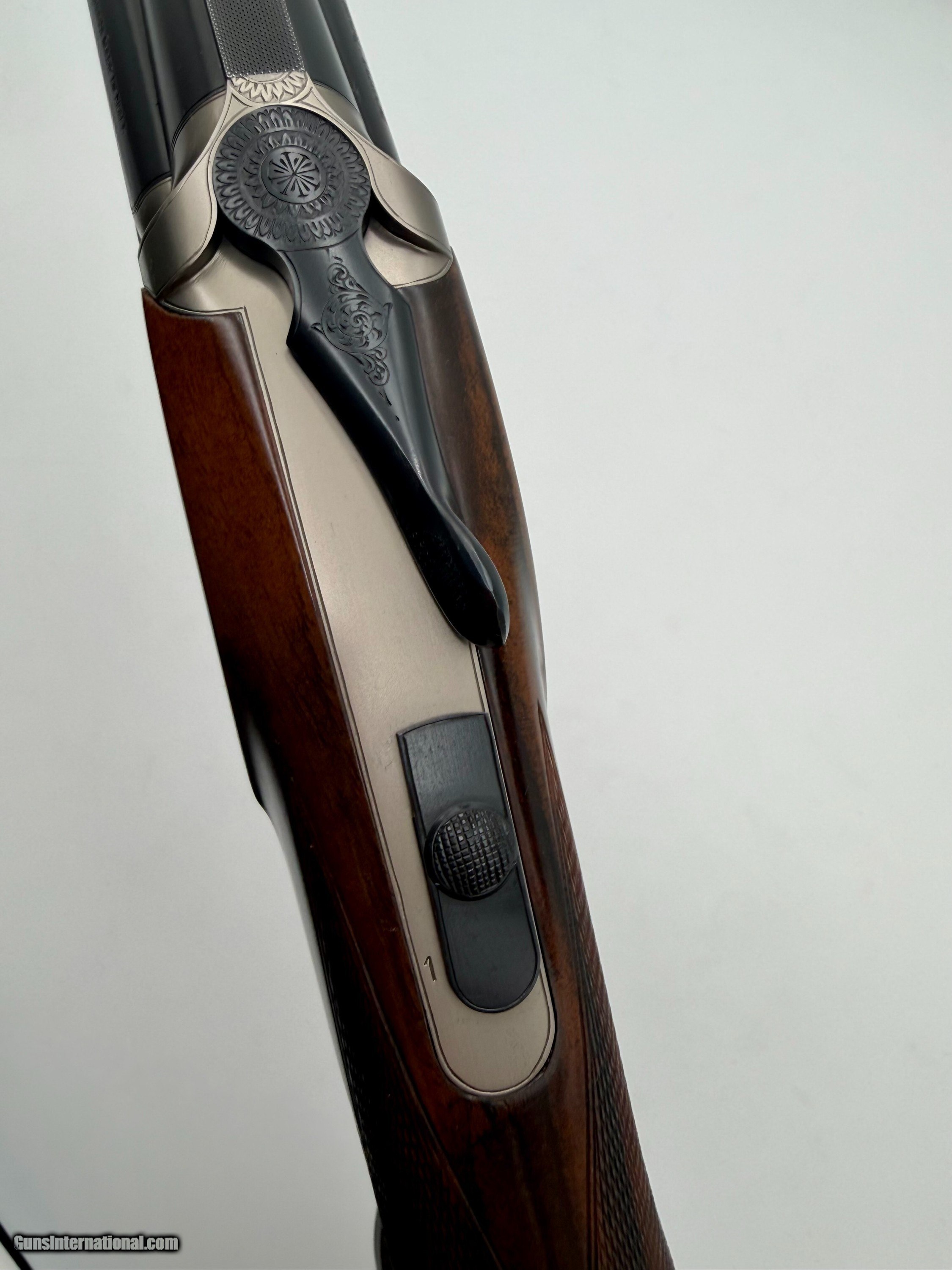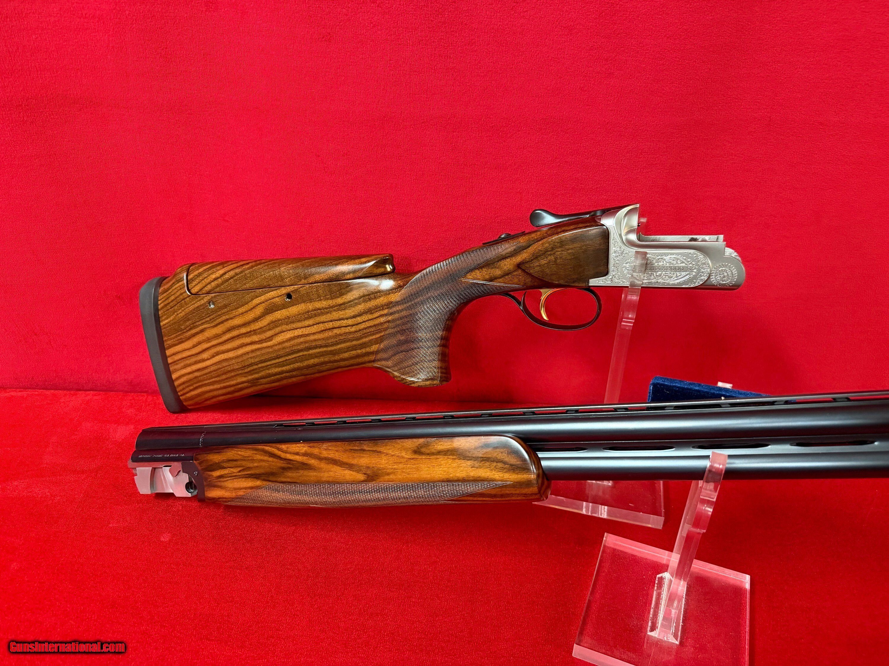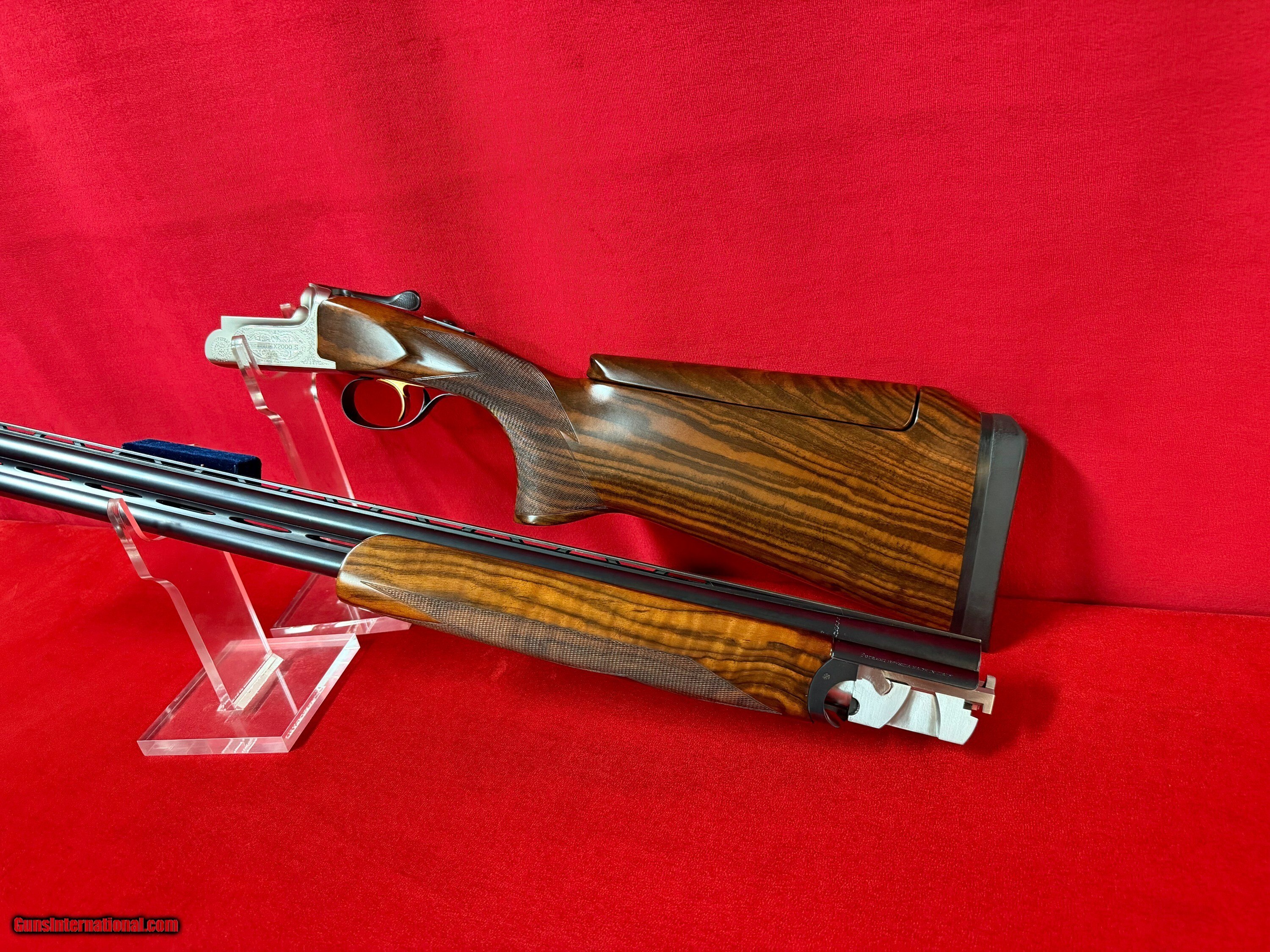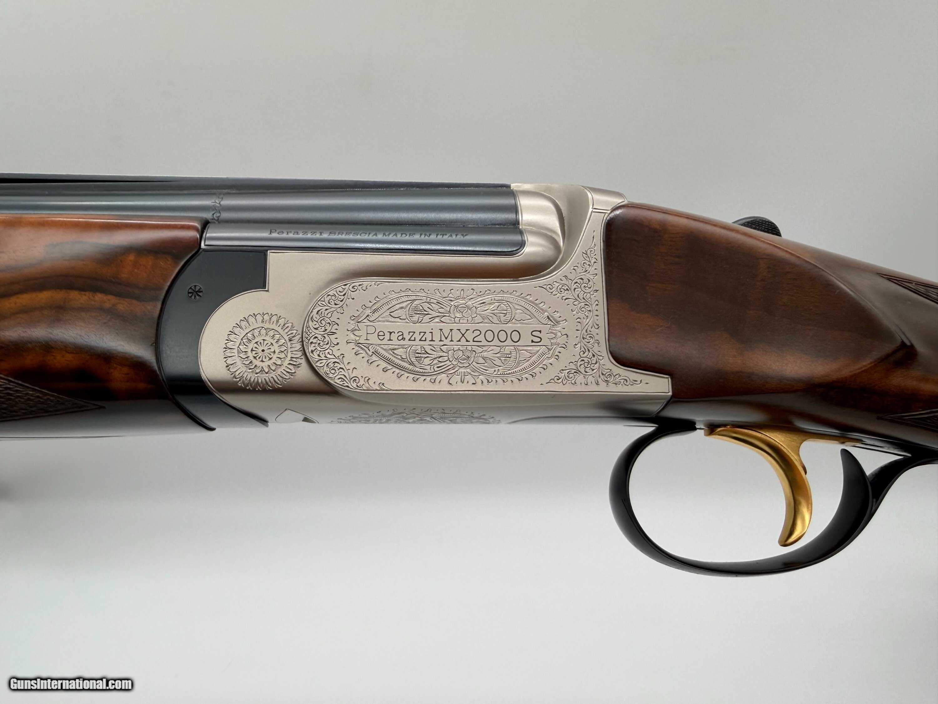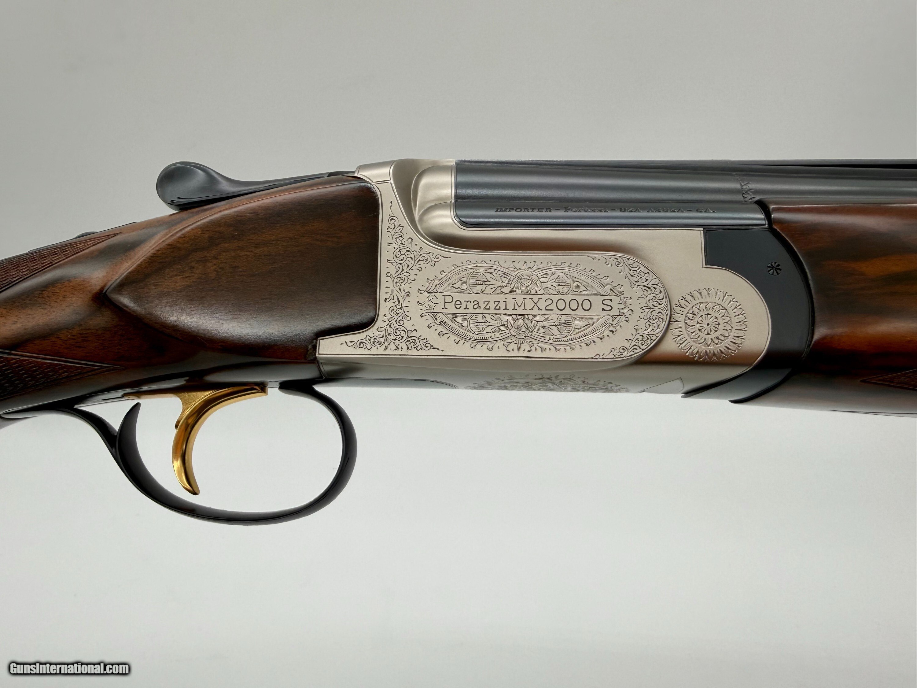 Perazzi MX2000S-20. All serial numbers matching 20 gauge #151XXX. This gun is in LIKE NEW condition and beautiful upgraded wood and factory 4 way adjustable comb. The MX2000S is a non dropout trigger coil spring gun with barrel selector on top tang. A perfect sporting gun balances beautifully at a weight of 8.5 pounds. Receiver signed by Terri