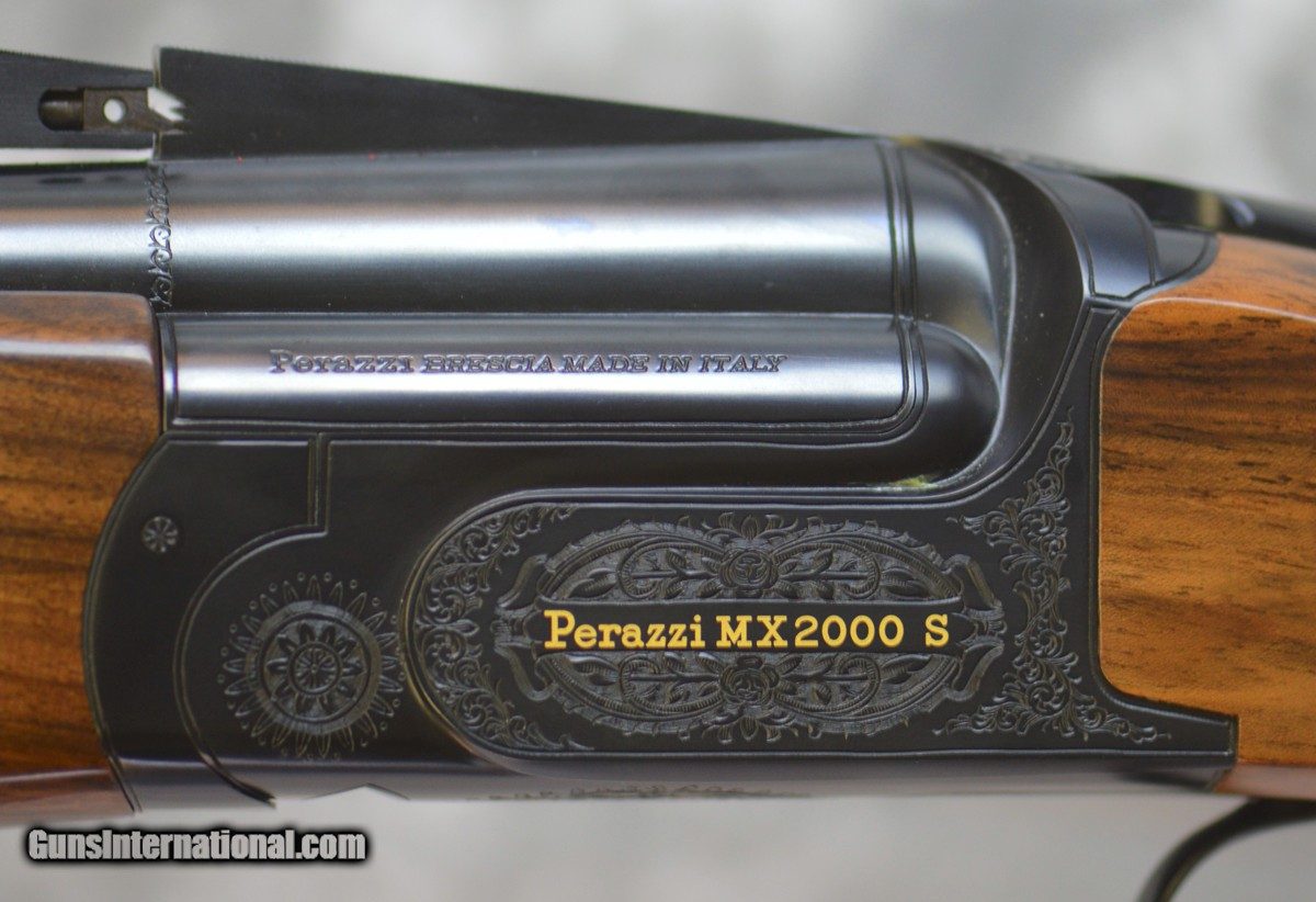Description: New Perazzi MX2000S/3 Sporting 12GA with 32" fixed choke (.016/.024) barrels, 7x7 parallel 3-position adj. rib. Factory blued receiver with fully hand engraved "MX2000" pattern, fixed coil spring selective trigger. Factory adj. comb stock with right-hand palmswell and ISIS recoil reducer to 14 3/4" LOP. English sporting forearm. Outstanding condition overall, only very minor handling marks-shows very minor signs of use. Includes factory case, tools. SOLD |