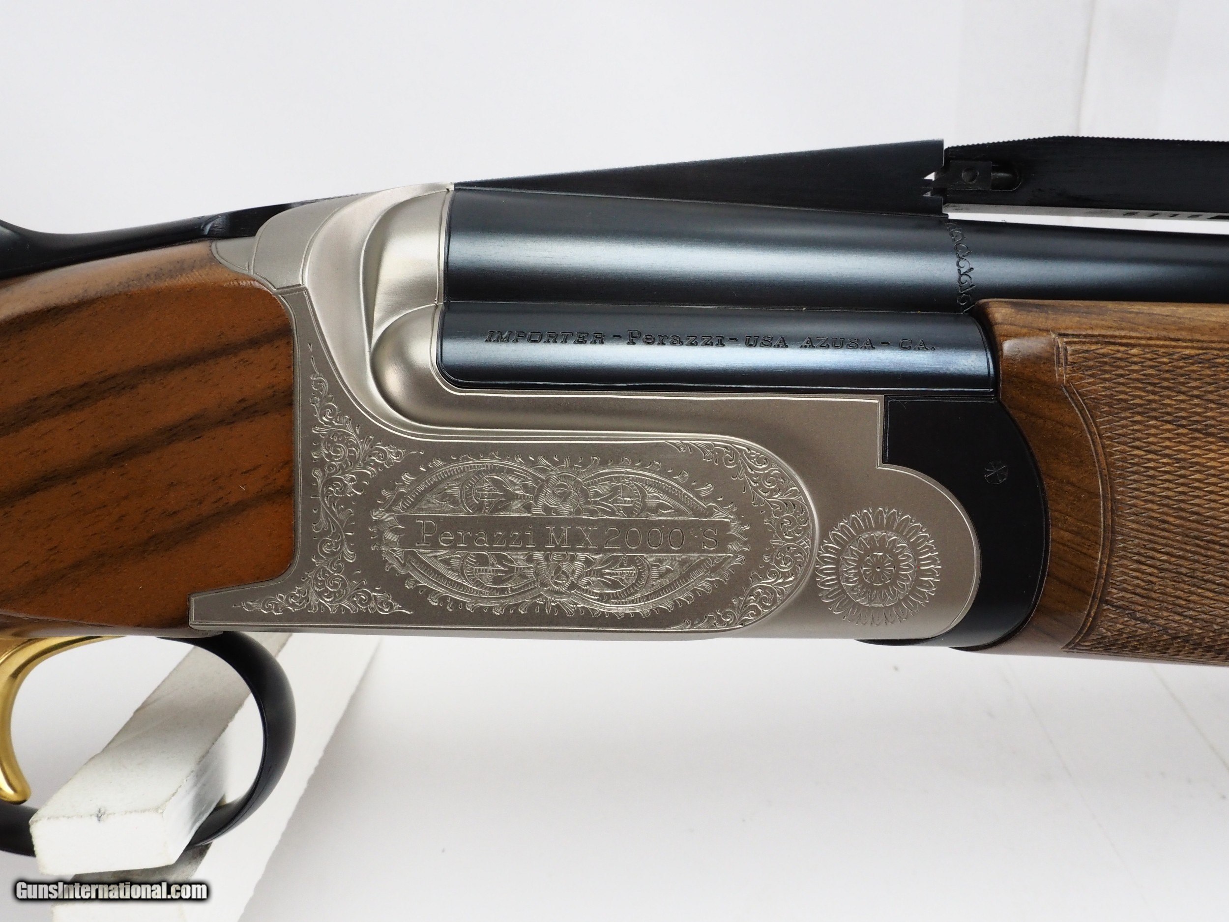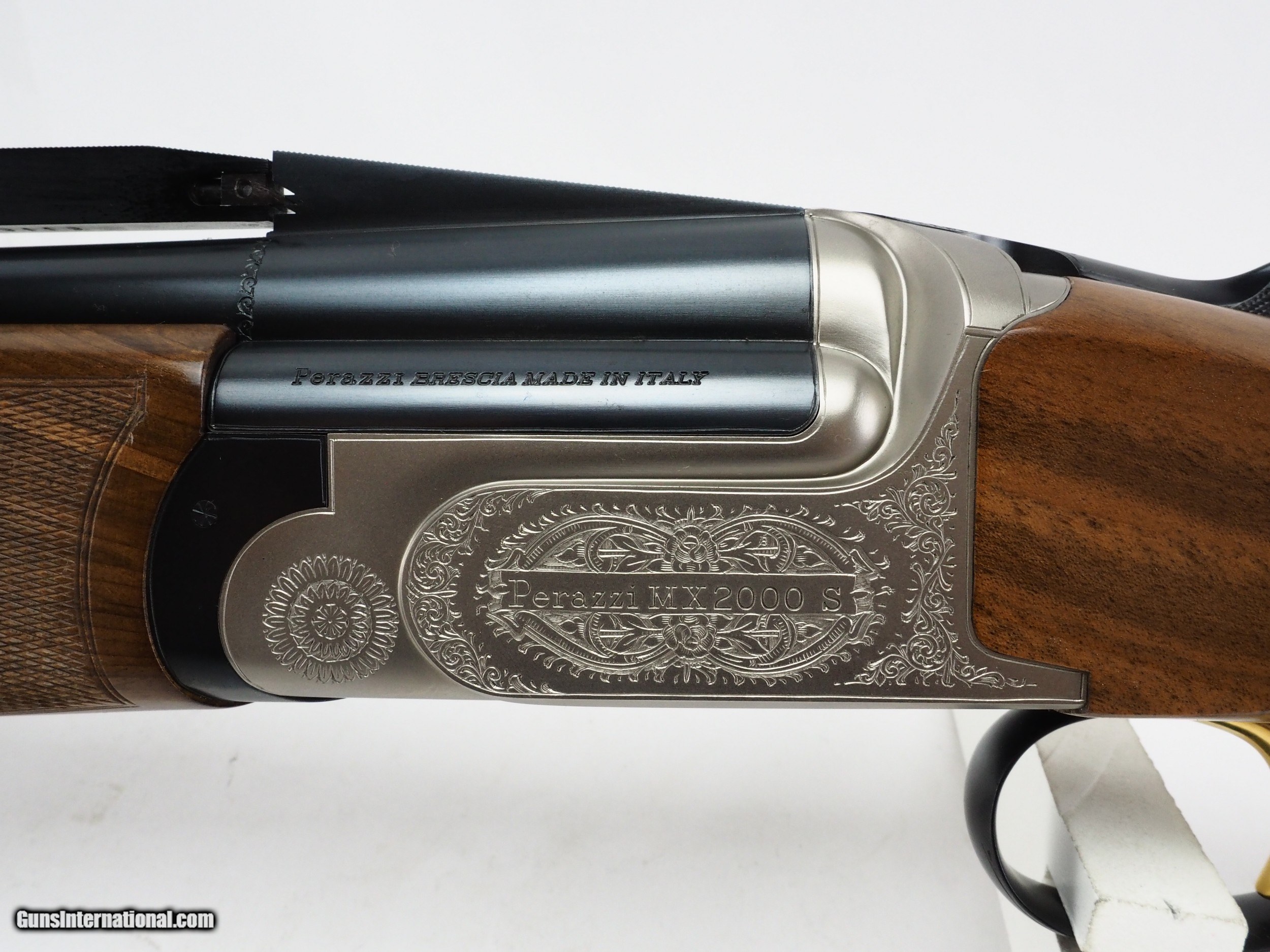 Description: Book #193. Price: $11,295.00 Truly like-new Perazzi MX2000S with 3-notch adjustable rib. Gun is completely unmodified, and in as-shipped factory configuration with factory recoil pad. Total round cound is less than a flat of shells before the original owner decided to sell. Barrels are true 32" with factory Perazzi screw-in chokes. Serial number is 149xxx. Stock finish and metal finish are 99% perfect. Action is tight, as it came from the factory. Comes in original factory case with factory chokes and stock wrench. Make: Perazzi Model: MX2000S Gauge: 12ga Hand: right hand Barrel length: 32" (true 32") Rib: 3-notch adjustable Comb: factory adjustable LOP: 14 13/16" Chokes: factory 10, 8, 6, 4, 2 w/ choke case Case: factory Perazzi hard case with full soft lining SOLD |