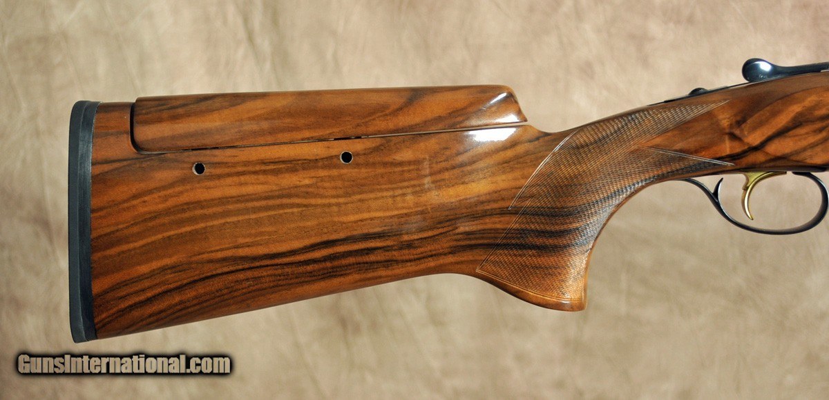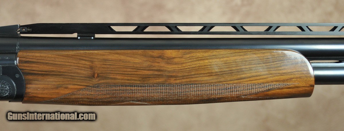 Description: Pre owned in excellent condition Perazzi MX2000S/3 12 gauge. Features 32″ fixed choke barrel with (8) Briley thin wall chokes. 7×7 three notch adjustable rib (1.560kg/18.7). Sporting stock with English fore arm and adjustable comb. Factory hard case included. 2 pads included 14 1/4″ and 14 3/4″ LOP SOLD |