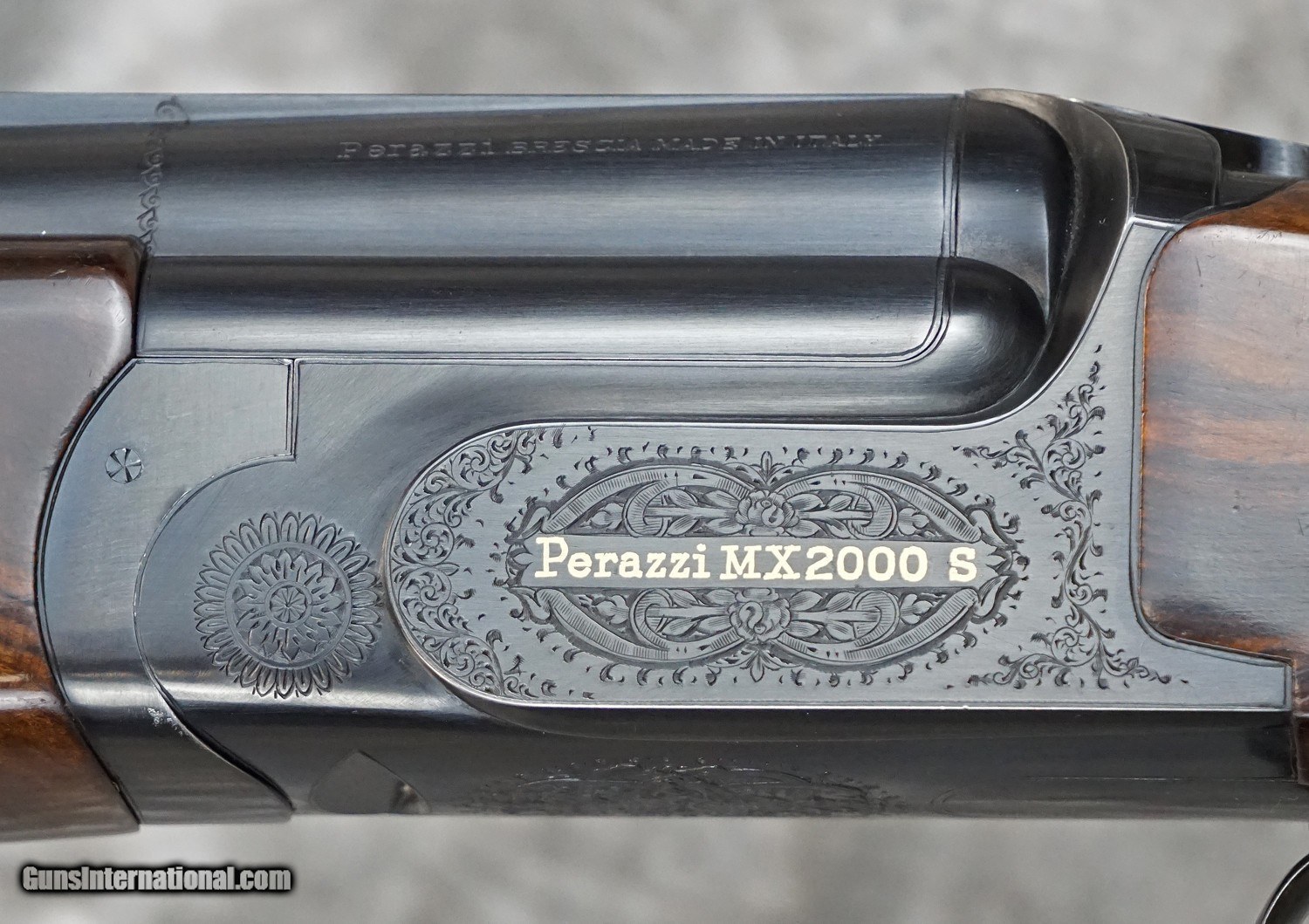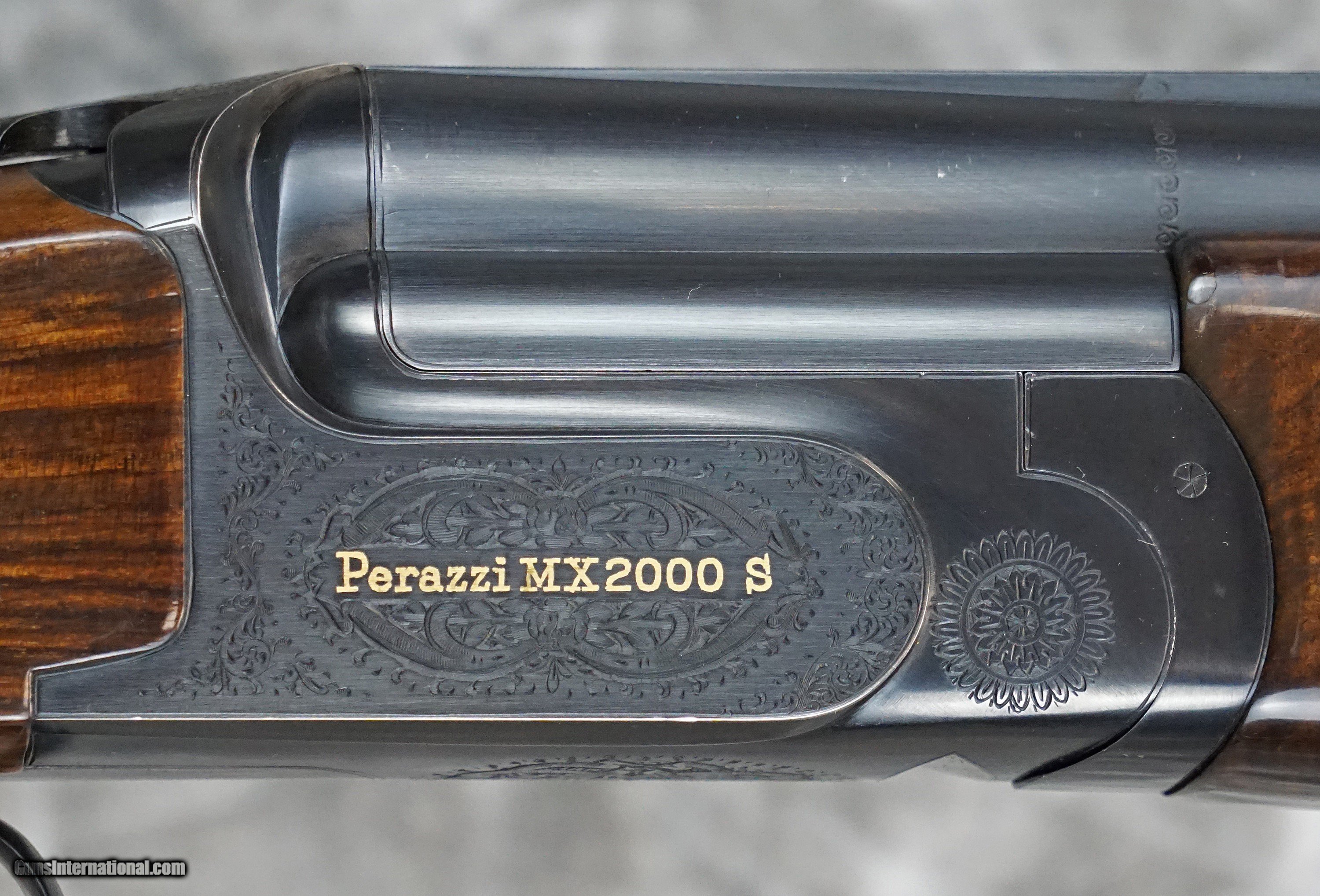 Description: Pre-Owned Perazzi MX2000S Game 12GA with 29 1/2" thinwall choked barrels, 7x7 parallel game rib with solid-side ribs. Blued action with "MX2000" engraving, fixed coil spring selective trigger. Factory pistol grip game stock with game forearm. Minor bluing wear on action, handling marks, minor scuffs and scratches on stock/forearm. Barrels are not original to action and have been professionally fit and re-numbered. Includes factory case, chokes. SOLD Shotgun Gauge: 12 Gauge |