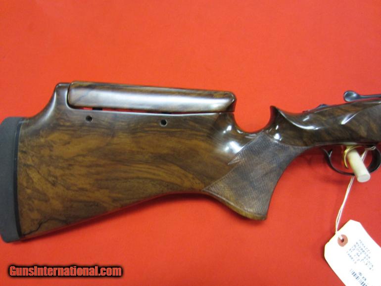 Description: This gun remains in excellent condition: blued receiver, Glove stock, 5 notch Short Rib, fixed full choke in the top barrel, interchangeable chokes in the bottom barrel (5 included), factory case and spare parts kit. SOLD |