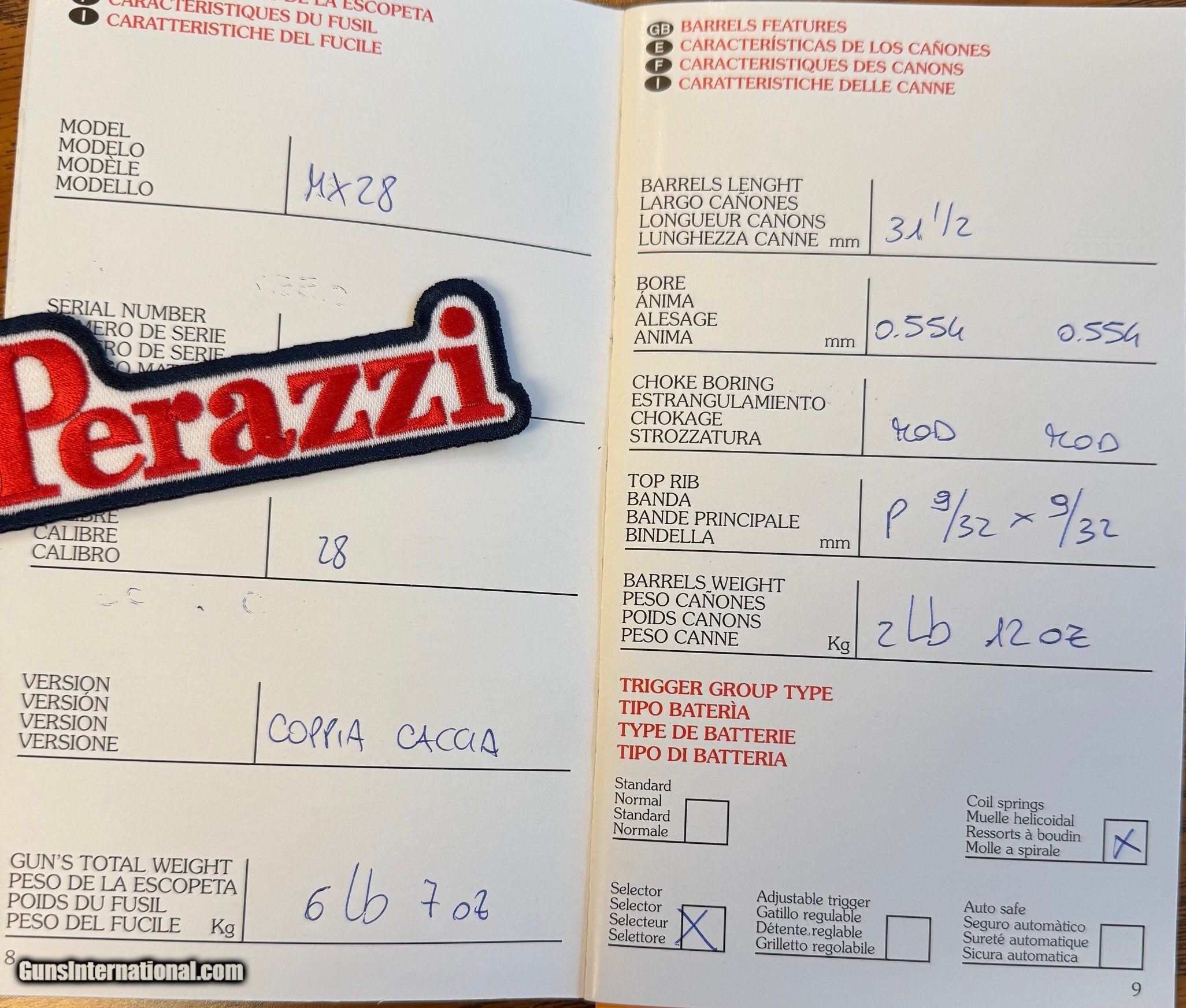 PERAZZI MX28 MATCHED PAIR 28GA 31 1/2" BRAND NEW, NEVER FIRED