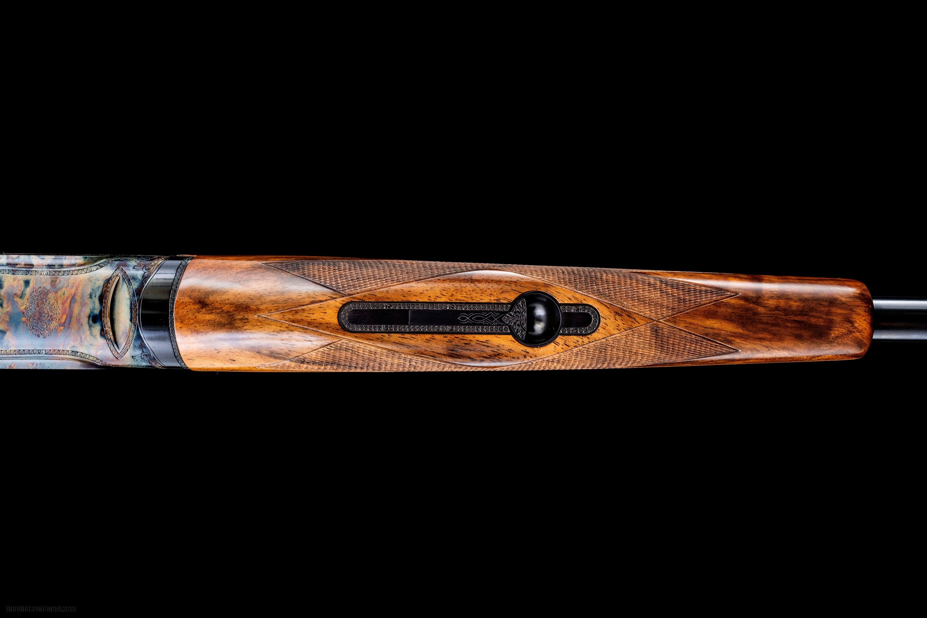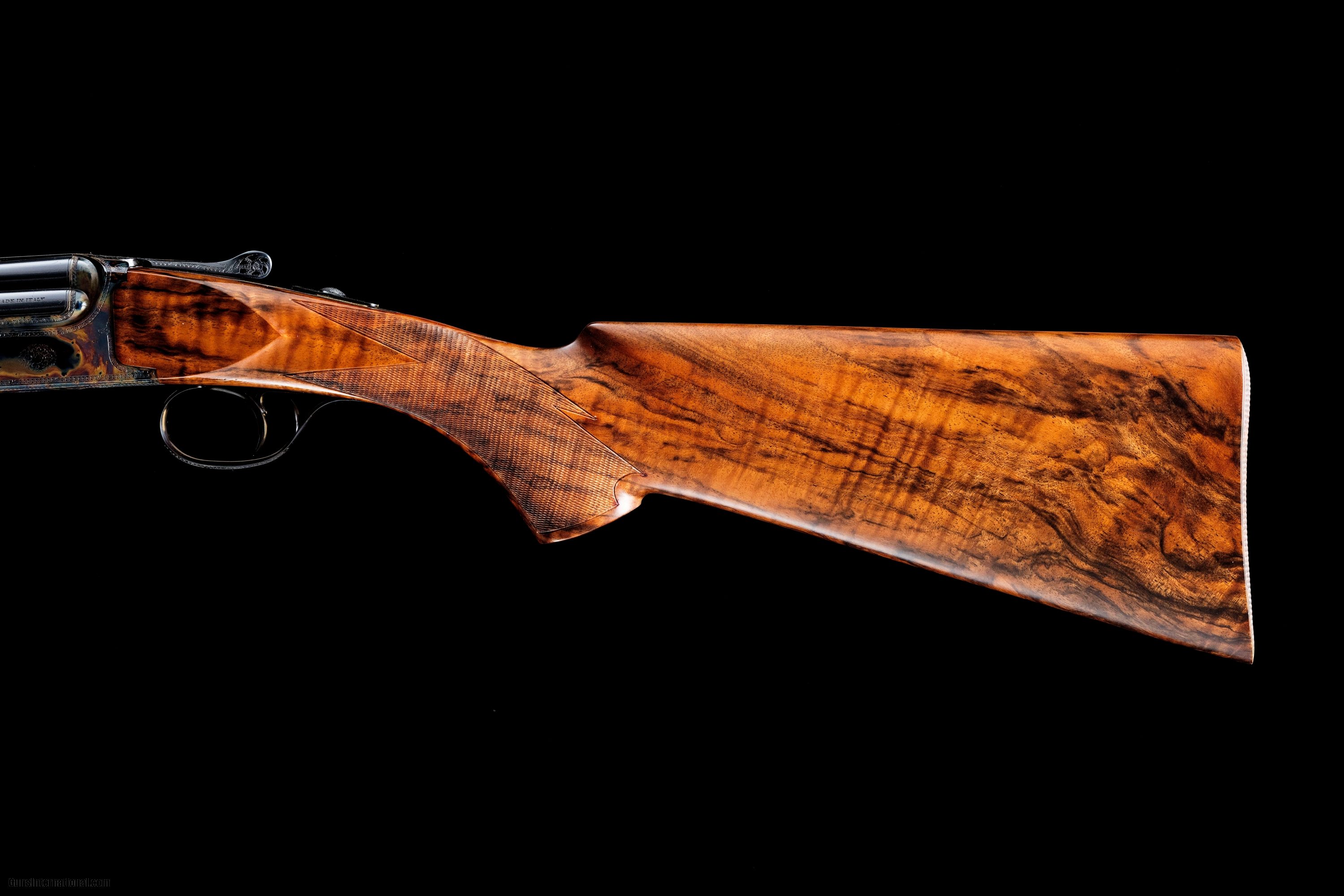 Description: Known more for its competition models, this 28 excels in the field. Lithe and striking, Perazzi’s MX28B over/under wasn’t even out of the box yet and I was struck by the number of descriptive adjectives I could come up with. Built on a tiny 28-gauge frame, this is a light little thing (6.8 pounds) but when I shot it the first time on clay targets I was pleasantly surprised by the relatively light recoil. There are lighter small-bore over/unders around—even 12-gauges—but this shotgun is just about the weight of some old 12-gauge Purdey side-by-sides. Balance is about ½-inch in front of the hinge, so it’s a little forward weight—not at all bad when a woodcock tops the alders. Generally, a bit of front heaviness results in quicker movement on a fast-escaping bird. The barrels are 29½-inches, and the top rib is not tapered—7mm breach to muzzle—with a metal bead at the front. There are full non-vented side ribs in front of the fore-end, separated barrels under the fore-end. The barrels weigh 2 pounds, 12.5 ounces. Again, many a set of light side-by-side barrels weighed similarly over 100 years ago…though in 12-gauge. The bores measure .547. Traditionally, 28-gauge bores measure about .550 so there’s no overboring here. The forend is slim at 1.53-inches. The fore-end wood appears a perfect match to the figure of the buttstock walnut. The checkering is also very fine line. There’s no super sharpness to the checkered tops so the gun is comfortable to carry all day without gloves. The walnut is hand-rubbed oil, beautifully done with all the pores completely filled. While the MX28B does not have SC2 engraving, Perazzi did use a very nice looking grade wood on this new model. The pistol grip is relaxed/open, but the crowning touch to the stock is the checkered butt. Again, the checkering on the butt plate is very fine line, plus there’s an opening to insert the stock removal tool that is included with all Perazzi shotguns. Care is needed in setting this type of buttstock down on any hard surface. You would not want to chip the wood when doing so. Store the Mx28B (and really all your shotguns) muzzle down with the muzzles on a double layer of thick shag carpet pieces. Doing so keeps oil from soaking downward from the receiver into the wood. Speaking of the receiver—all those from Perazzi have a similar look, with the elegant shape of their sides and the shape of the “fences” just behind the barrels. The “B” in MX28B stands for “basic.” The blued receiver thus has only borderline engraving on the receiver sides, plus engraving on and around the outside of the trunnions, the fore-end iron, the fences, the top tang, the opening lever and the trigger guard. SC2-type engraving is much more lavish and expensive, and several different styles of SC2 engraving are offered. Incidentally, SCO (a more expensive type of Perazzi engraving) translated from Italian to English means Competition Over and Under with Gold Engraving. In Italian SCO is an acronym for Sovrapposto Competizione Oro. The “heart” of any Perazzi is the locking system. I’ve never seen a Boss over-and-under, but evidently the Perazzi lock-up is similar if not the same. Barrels pivot on trunnions, as almost all of today’s over/unders do. Two bolts extend forward from about the midpoint on each side of the receiver to lock into lugs built on both sides of the monobloc, just under the ejector areas. This has proven to be a lock-up that’s capable of holding up to more than most lifetimes of shooting. Perazzis have always been popular in trap, and many Perazzi trap guns have fired hundreds of thousands of rounds. The bonus for upland shooters is that the system has no underlocking lugs, thus the receiver is lower in profile, theoretically putting the shooter’s hands closer to the bottom barrel, said to enhance natural pointing characteristics. And let’s not forget the triggers for Perazzi triggers are known worldwide for their excellence. Depending upon the Perazzi model the buyer can have two trigger choices—strong and super reliable coil springs or the company’s leaf-spring rendition. Both are known for their crispness and breaking glass-like let-offs. The MX28B I have on consignment has such breaking glass-like triggers. On the MX28 models they are the coil spring type. My test gun’s triggers go off at less than four pounds. The gun comes with flush-mounted screw-in chokes, nickel plated, so slippery to reduce plastic wad build up. Perazzi uses a numbering system for their chokes—the smaller the number the more open the chokes. The test gun came with two chokes marked “0” that measured .547—same as the bore—so cylinder or skeet. The No. 2 went .540, the No. 4 went .531, the No. 6 went .527 and both the No. 8 and No. 10 were too tight to get my Baker Barrel Reader probe into. A choke changing tool is provided. Also, fixed choke barrels are an option. Today, with any Perazzi, you can name your own personal stock dimensions, and there’s only a four- to six-month wait for this. This means, at no extra cost, you’re getting a so-called “bespoke” shotgun. Further, there are many barrel-length choices and several forend style choices. SOLD Manufacturer: Perazzi Model: MX28 Caliber Info: 28 Gauge Barrels: 30 Triggers: Single Gauge Info: 28 Gauge Stock: 1 Stock Heel: 2-1/8 Stock Cast: 1-1/2 LOP: 14-3/4 Rib: Vented Weight: 6.6 |
